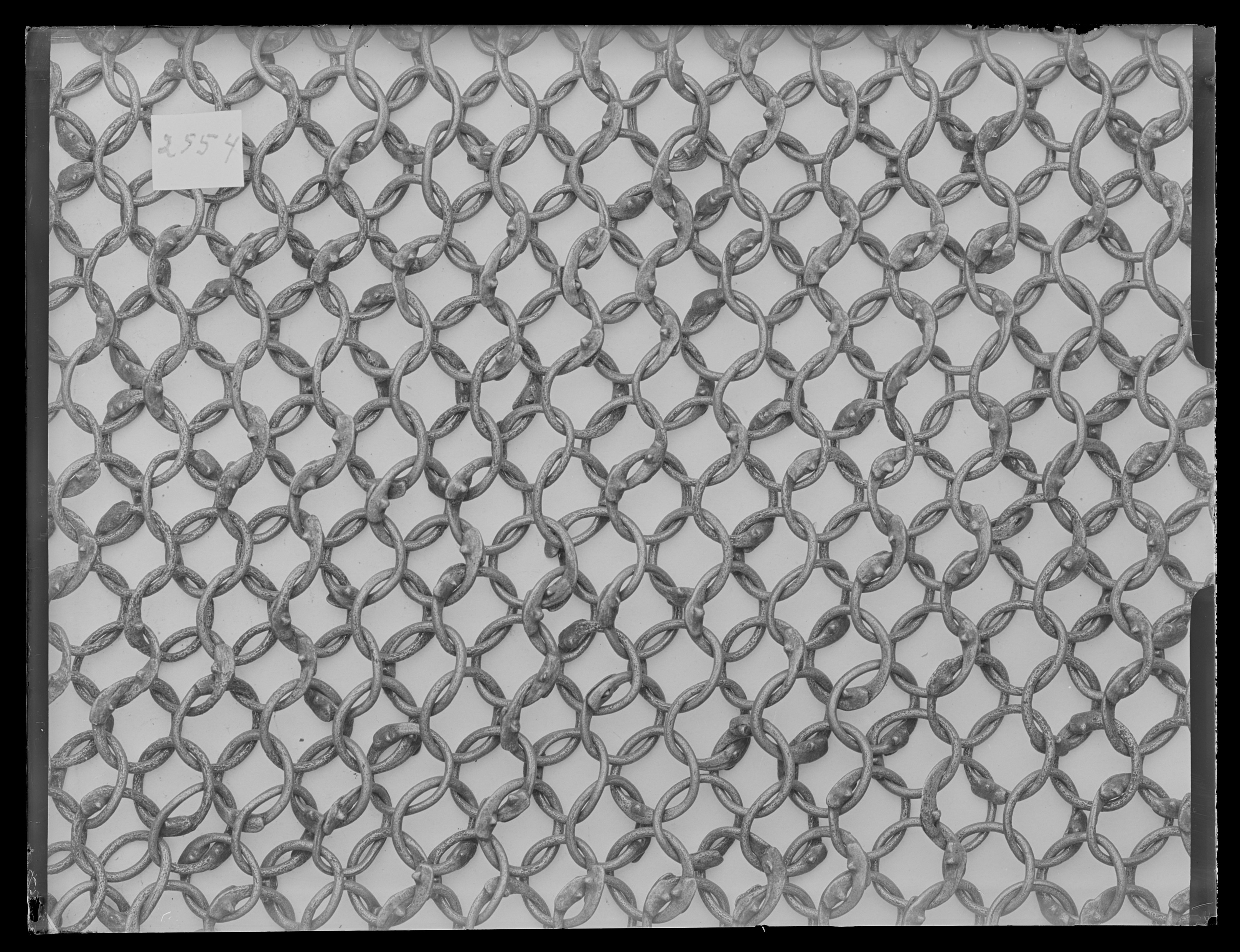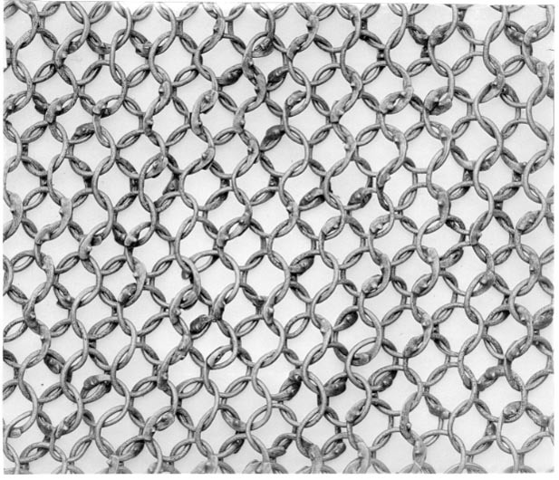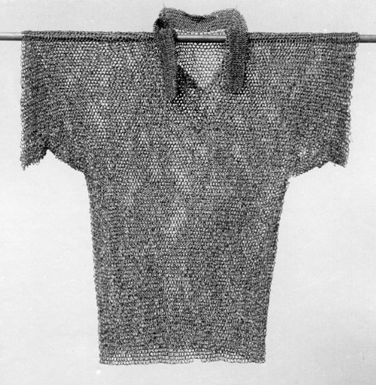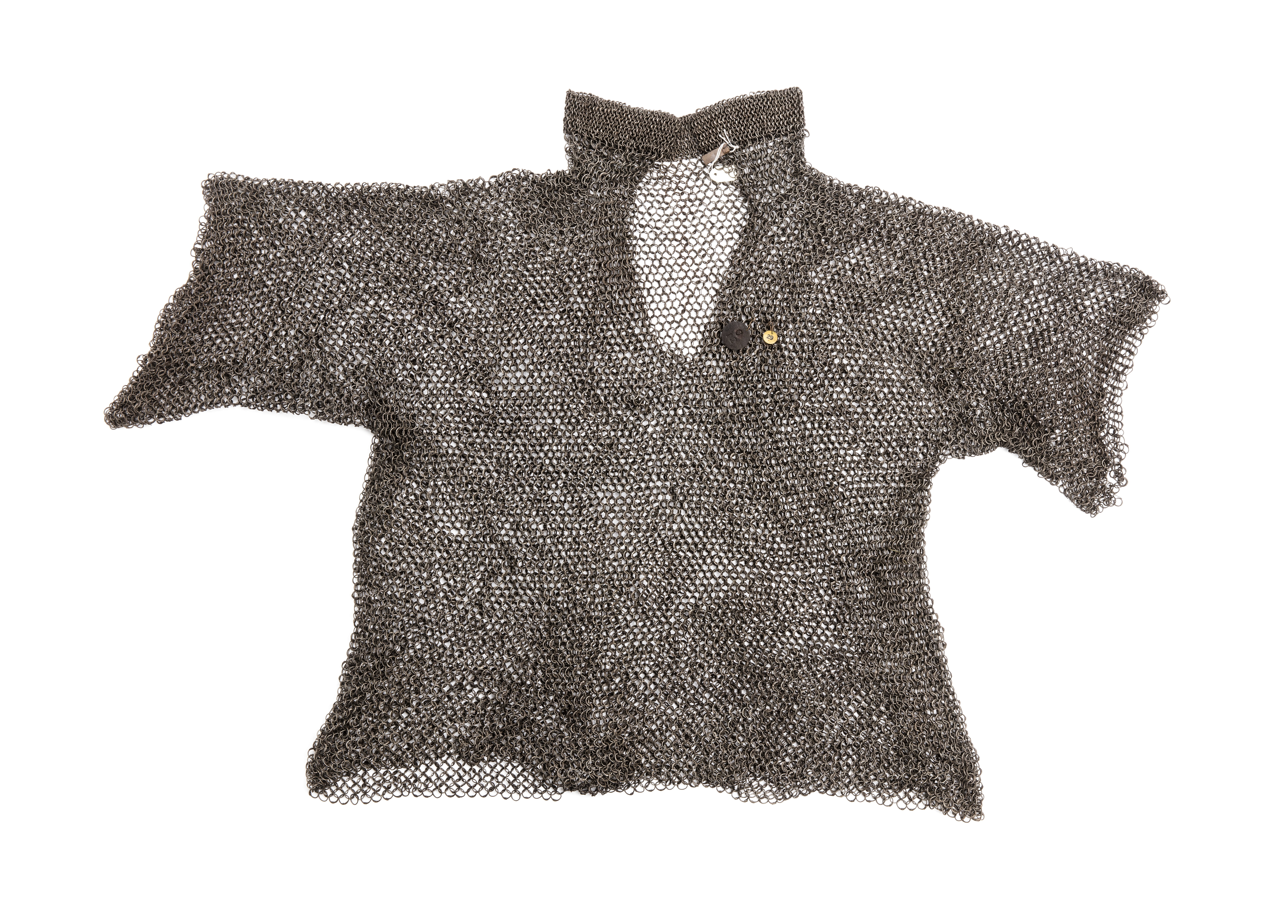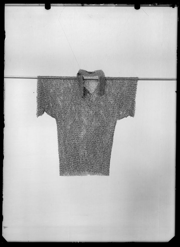 Pansarskjorta med en ca 60 mm hög krage, korta ärmar, ett 220 mm långt halssprund och med svagt utsvängda sidor. Pansaret består av sammanlänkade, nitade stålringar (D:10 mm). Varje ring är nitat och ansluter till fyra andra ringar. Kragens ringar är mindre (D: 7 mm) och bildar ett tätare pansar. På bröstet en rund järnbricka med ”C12” präglat, fastsatt med koppartråd.