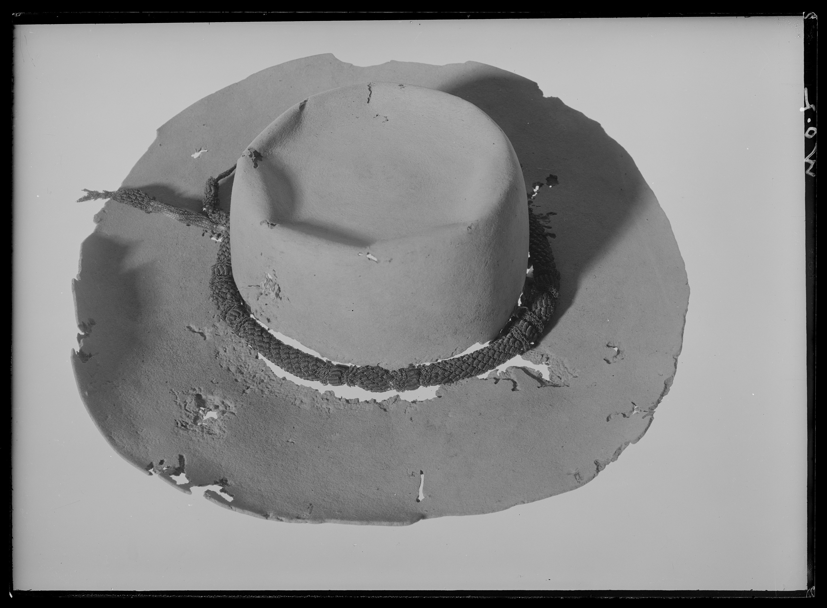 Hatt av gråbrunt filttyg med platt kulle och ett brett brätte. Runtom kullen, vid brättet sitter en kordong av mässingstråd i fina spiralsniljor. Hatten har enligt tradition burits av Karl XI vid slaget mot danskarna i Lund 1676. Han avbildas av Ehrenstrahl i en liknande hatt med den halmviska som kungen beordrat som fälttecken för de svenska trupperna. Hatten har rester kvar efter de lintrådar som halmviskan syddes fast med. Karl XI:s hatt är sedan 1855 i Livrustkammarens vård dit den kommit från Drottningholm vilket nämns i Hedvig Elisabeth Charlottas dagbok 1788. Brättet är skadat längs ytterkanten, bredden varierar mellan ca. 90-120 mm.