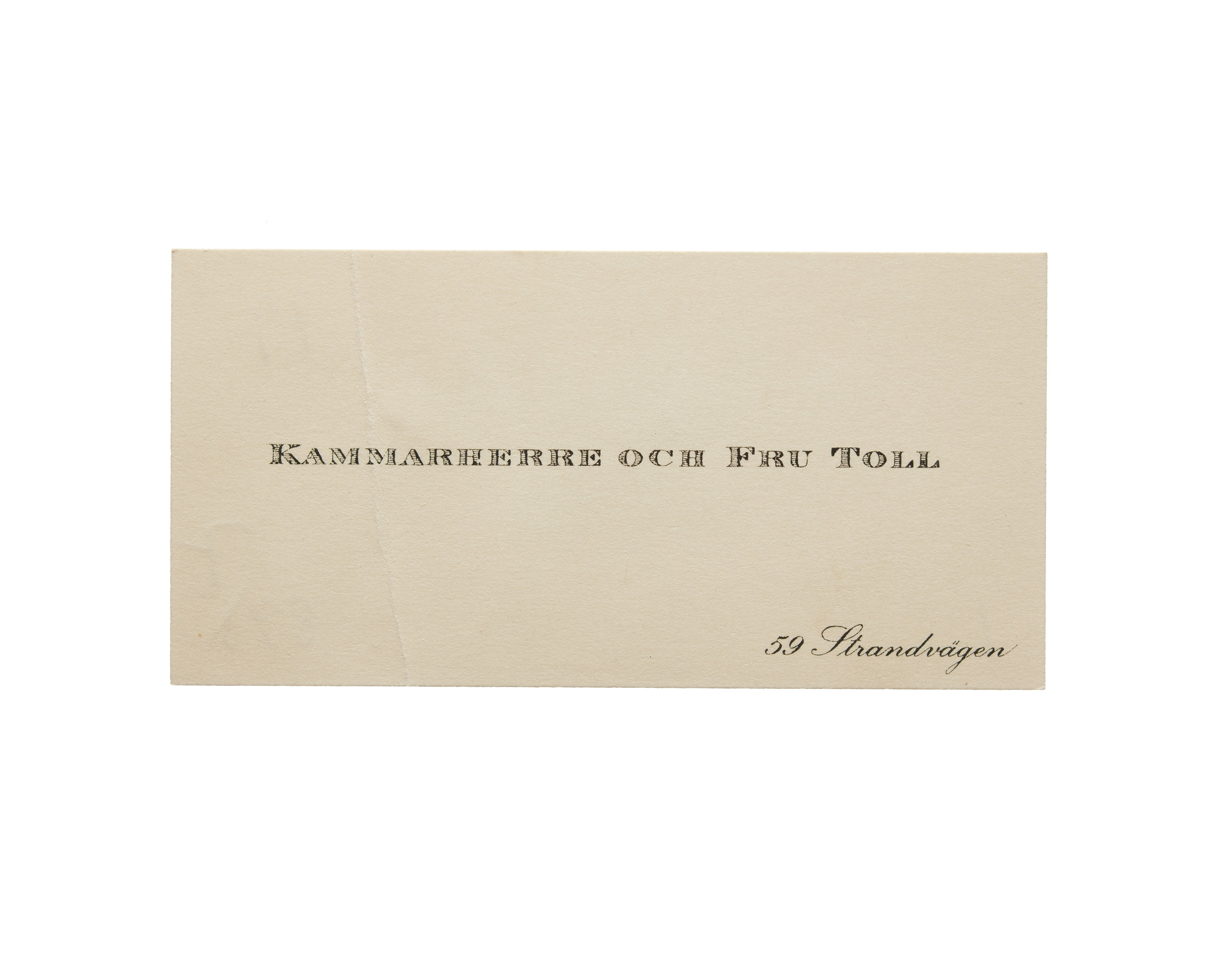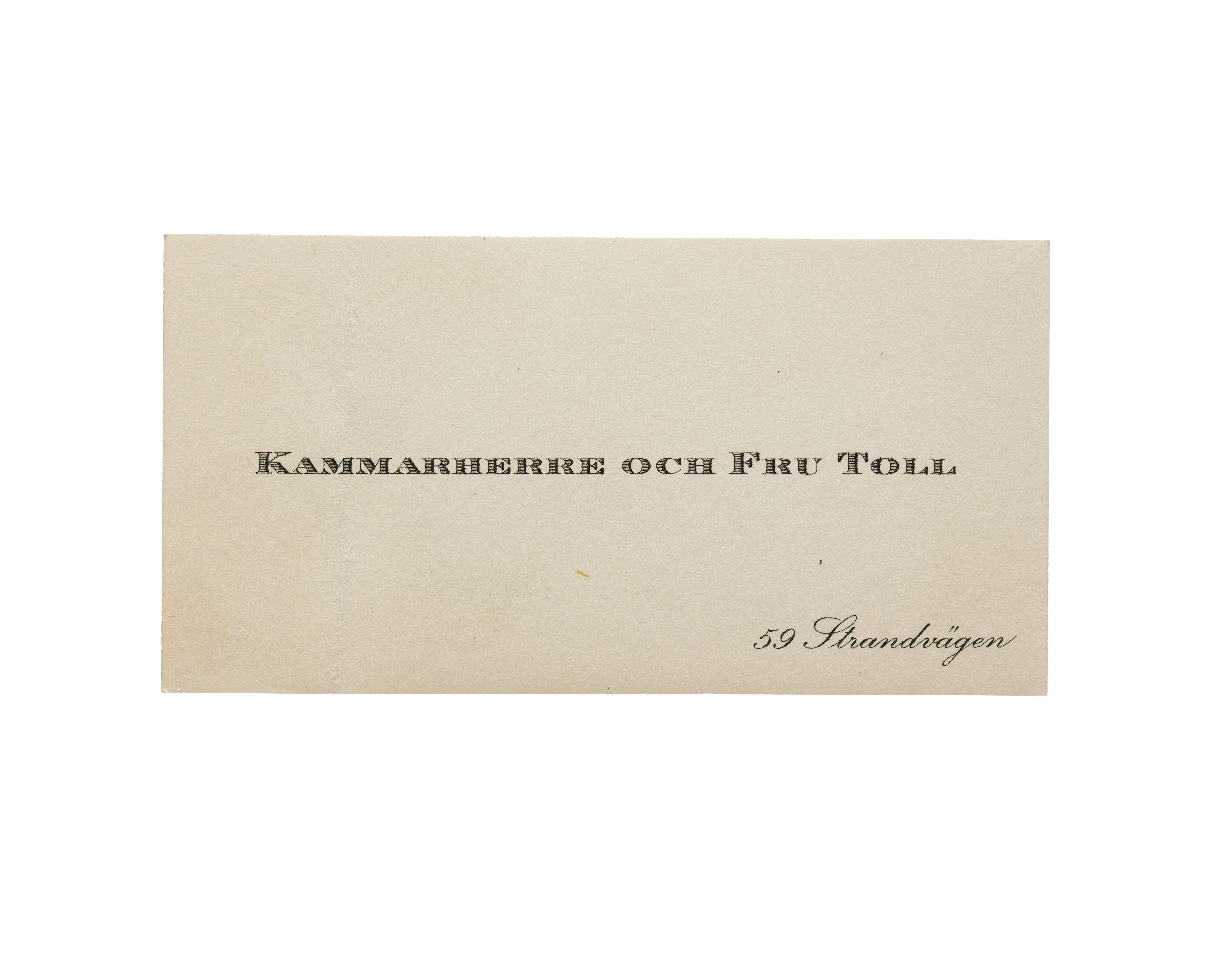 Visitkort från Kammarherre Hans Toll och Fru Toll