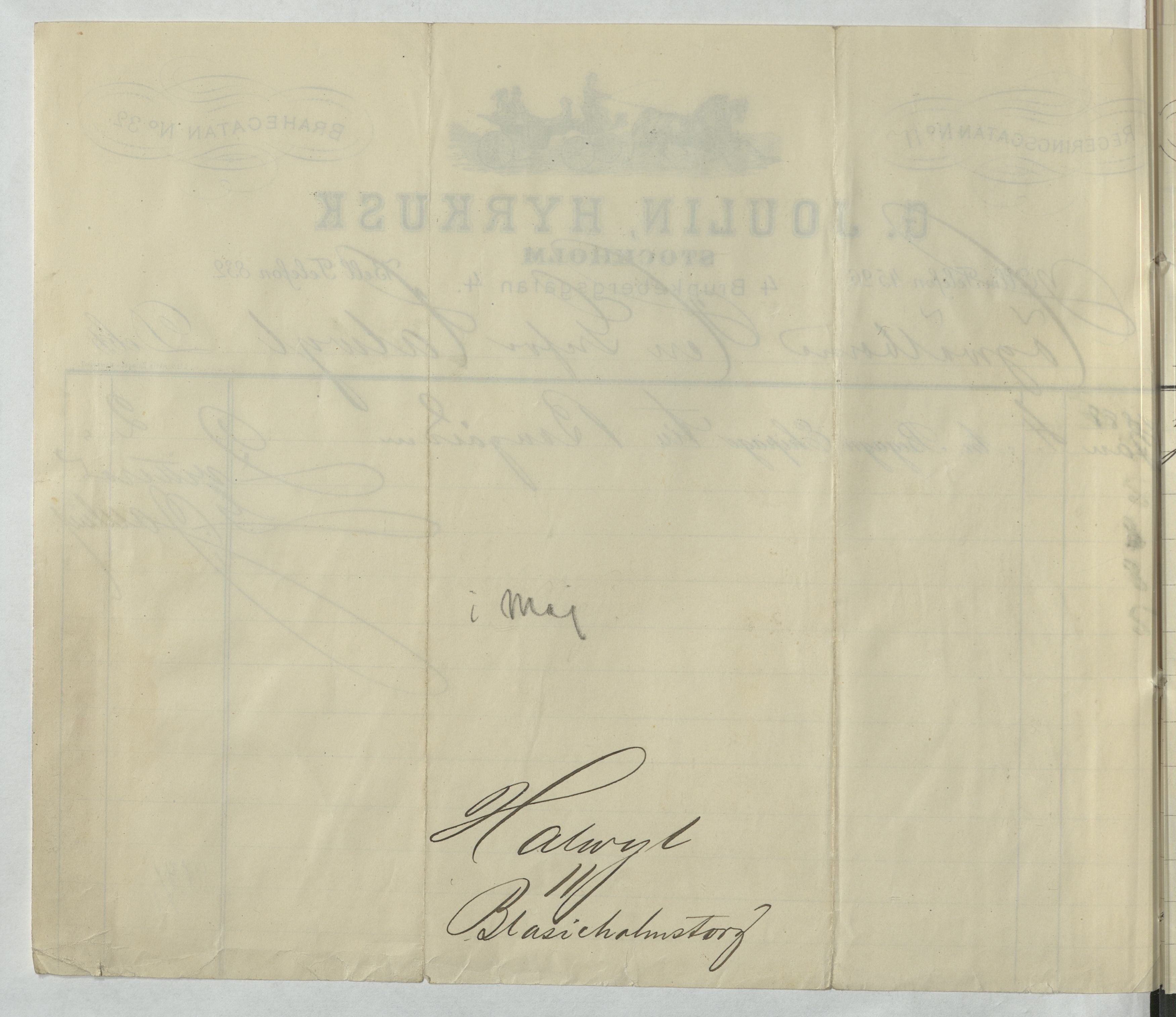 Kvitto från G. Joulin, Hyrkusk