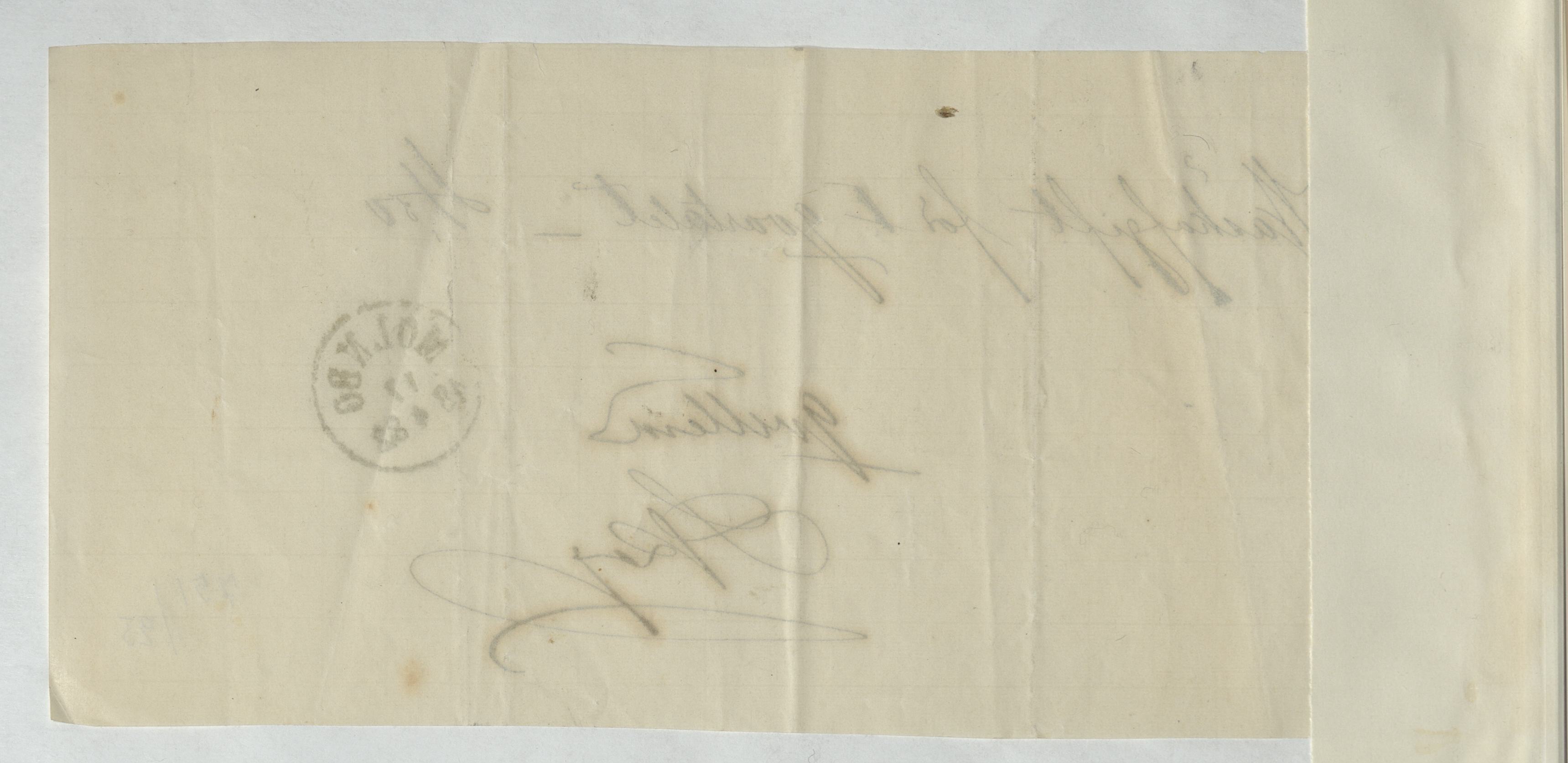 Kvitto från J. F. Skog. Postföreståndare, Mölnbo 1882. Gällande betalning av väskavgift.