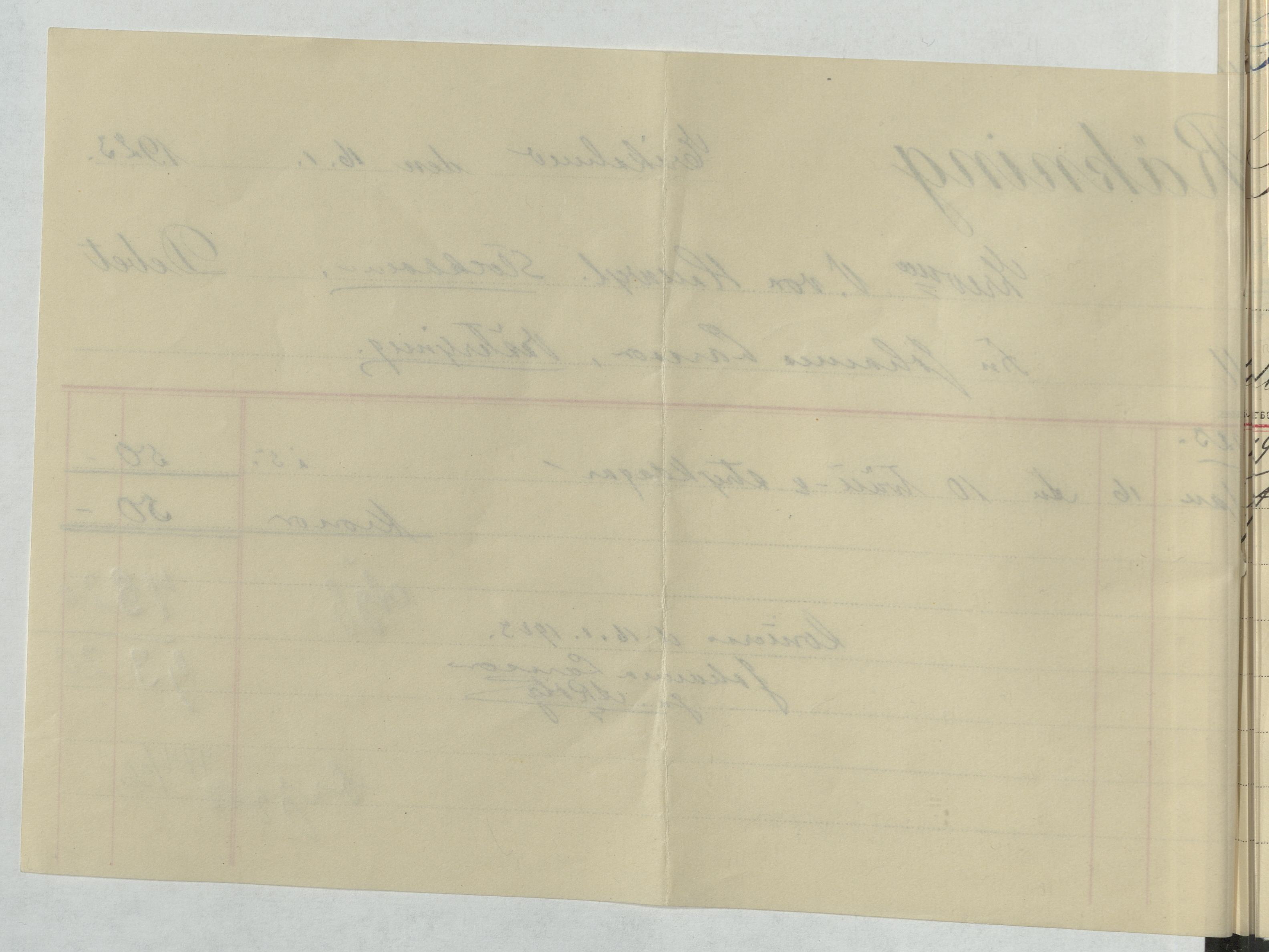 Kvitto från Johanna Larsson vid Erikslund. Gällande 10 tvätt- och strykdagar samt inköp av ägg. Erikslund, 1923.
