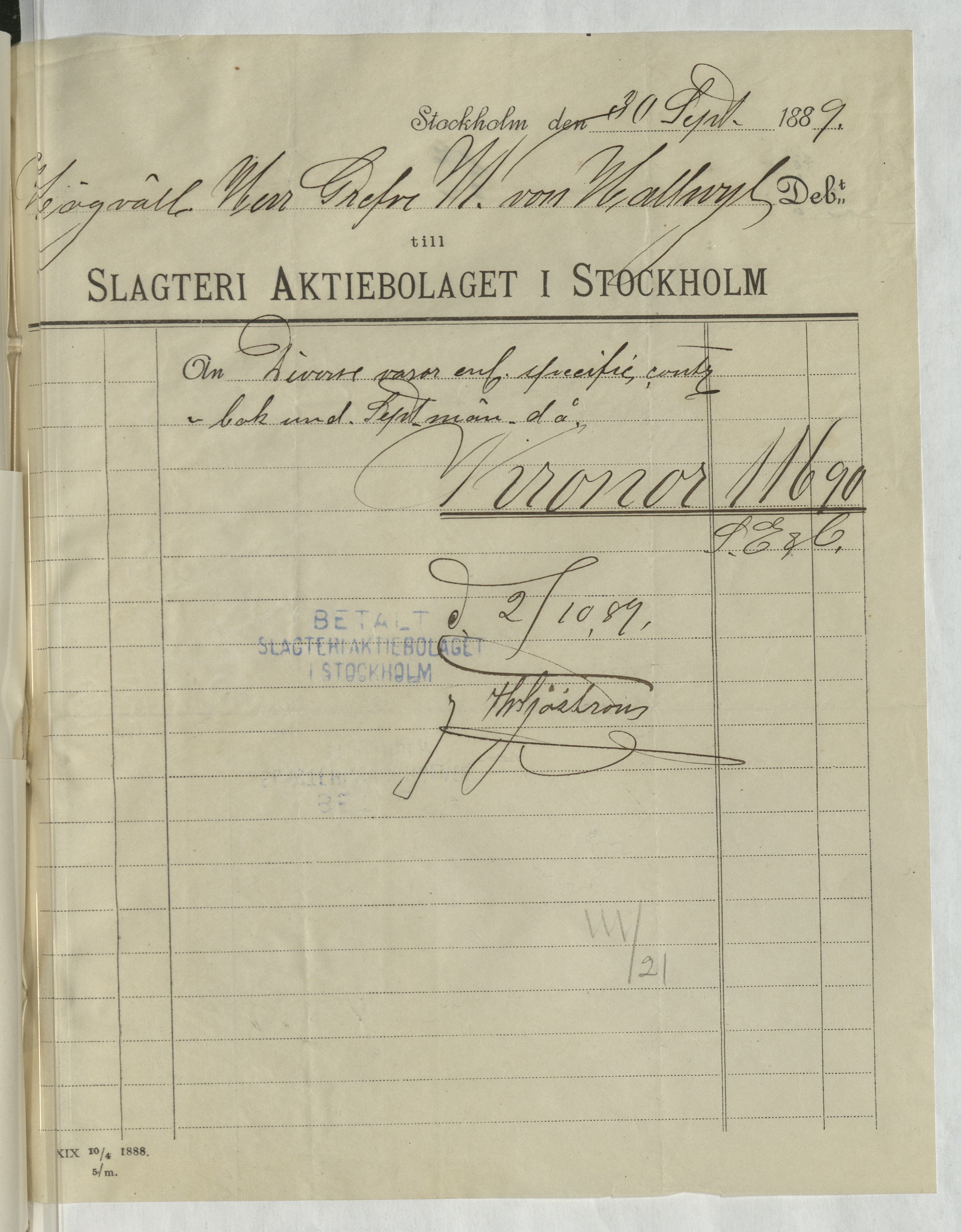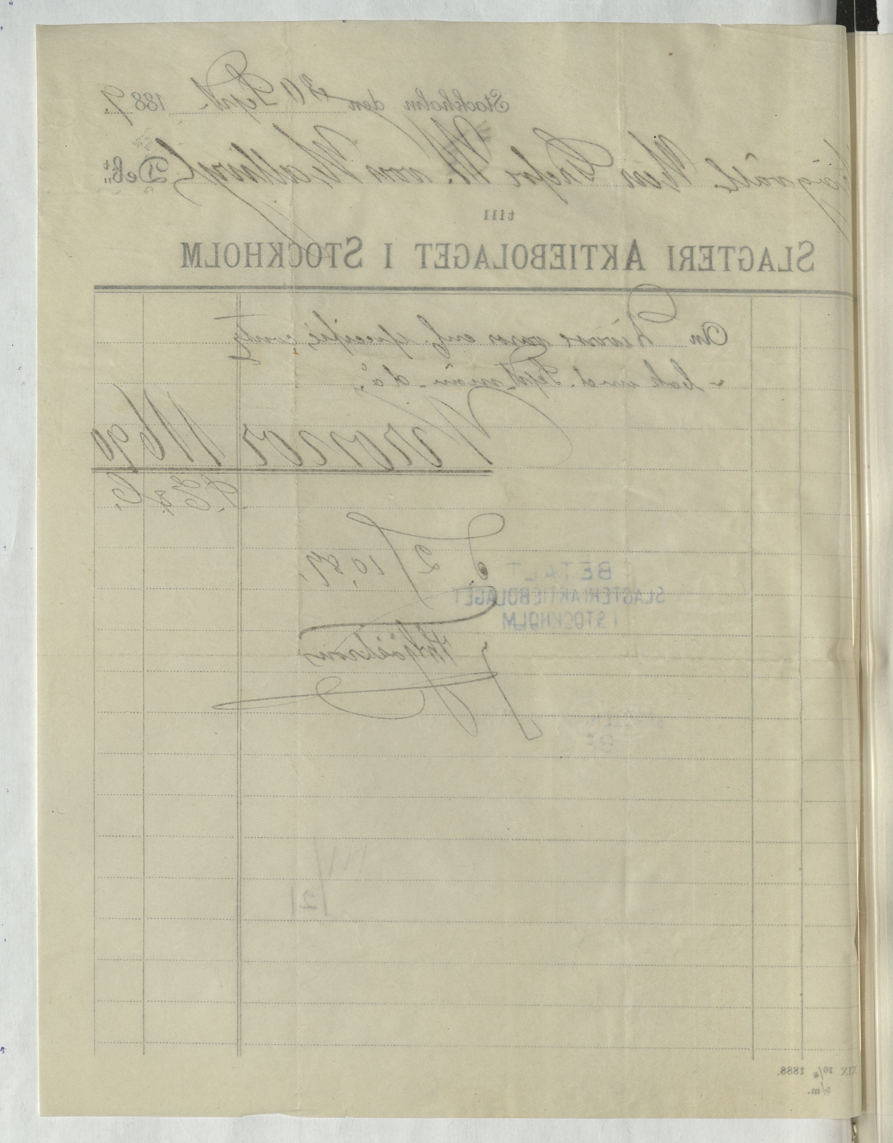 Kvitto från Slagteri Aktiebolaget i Stockholm