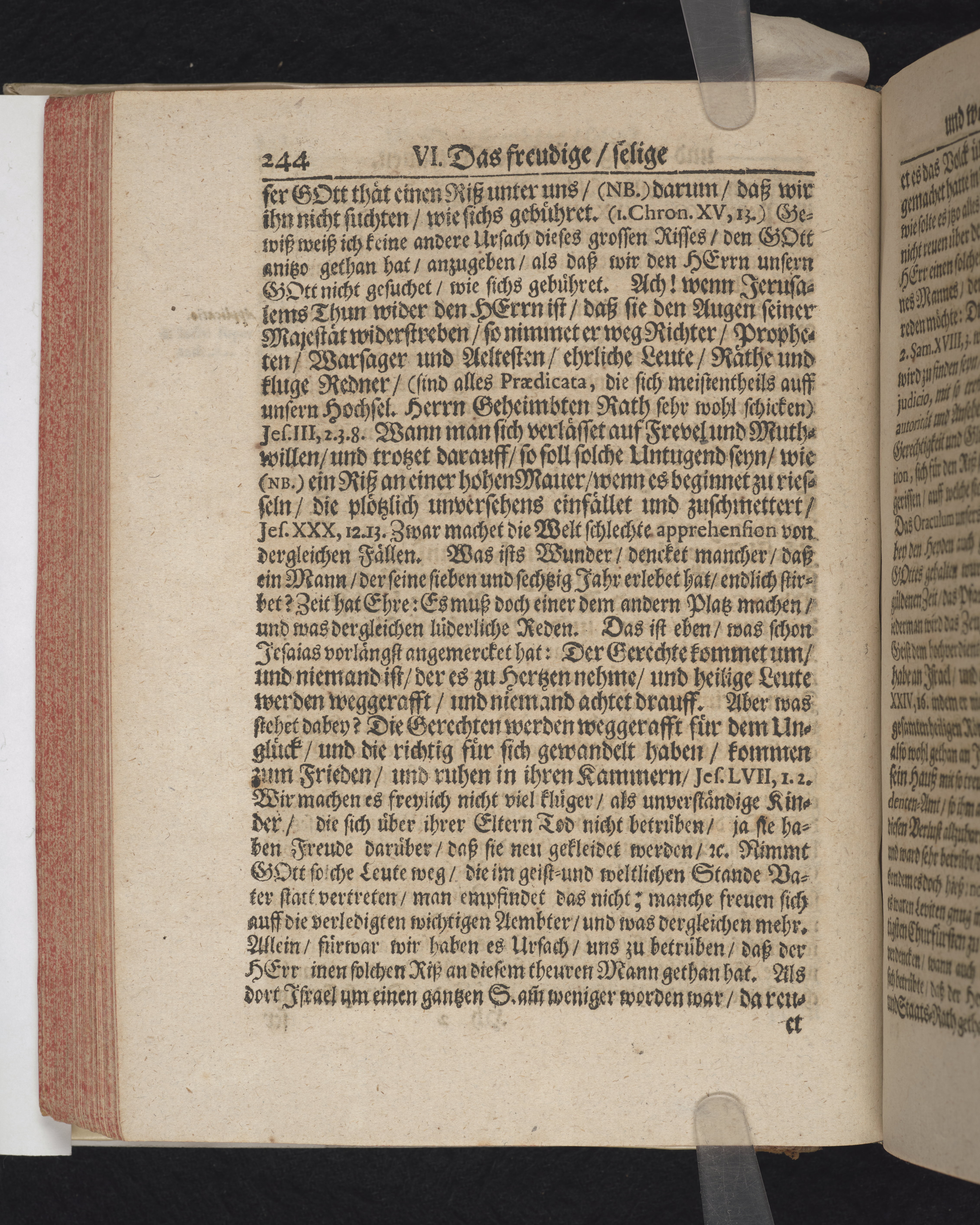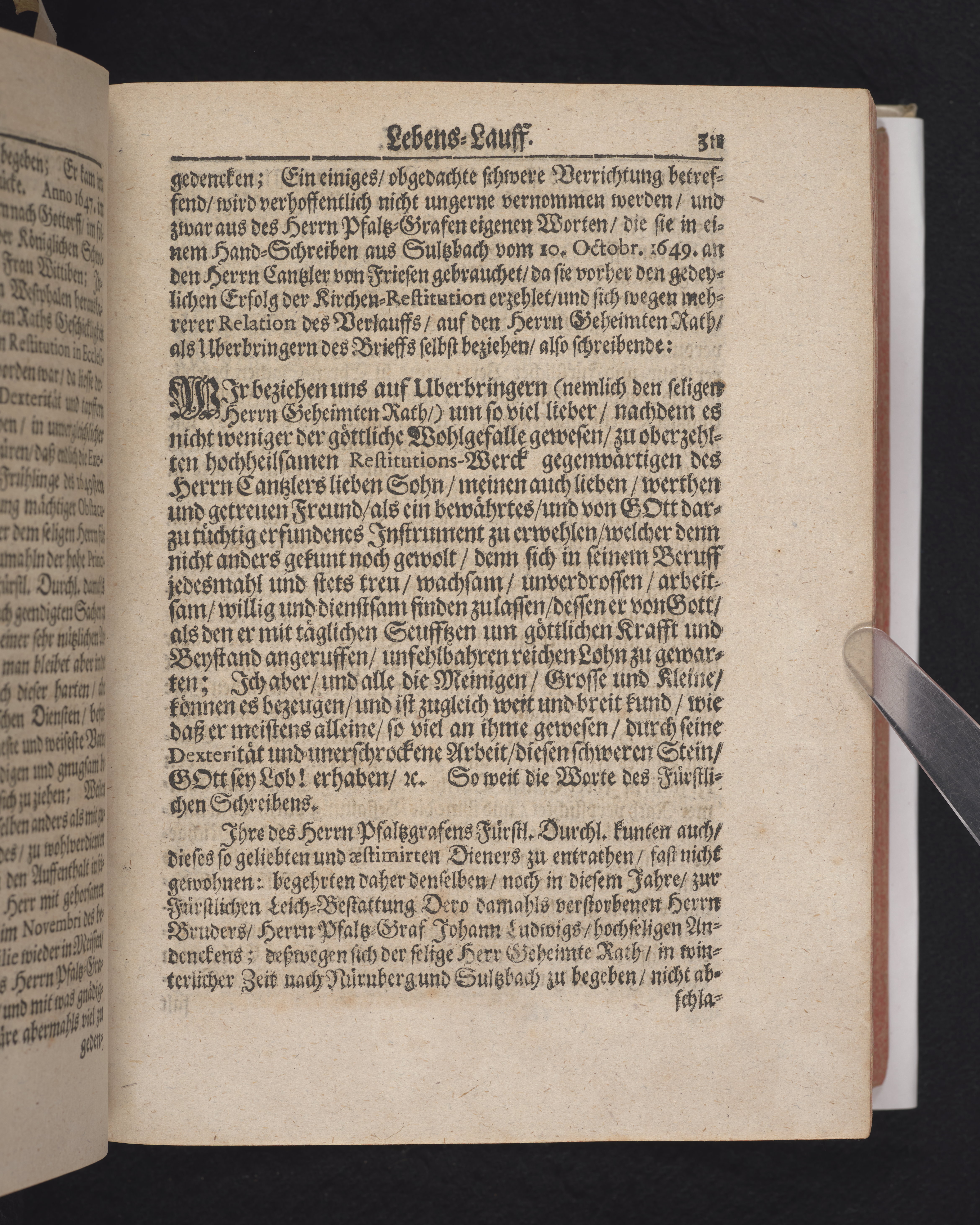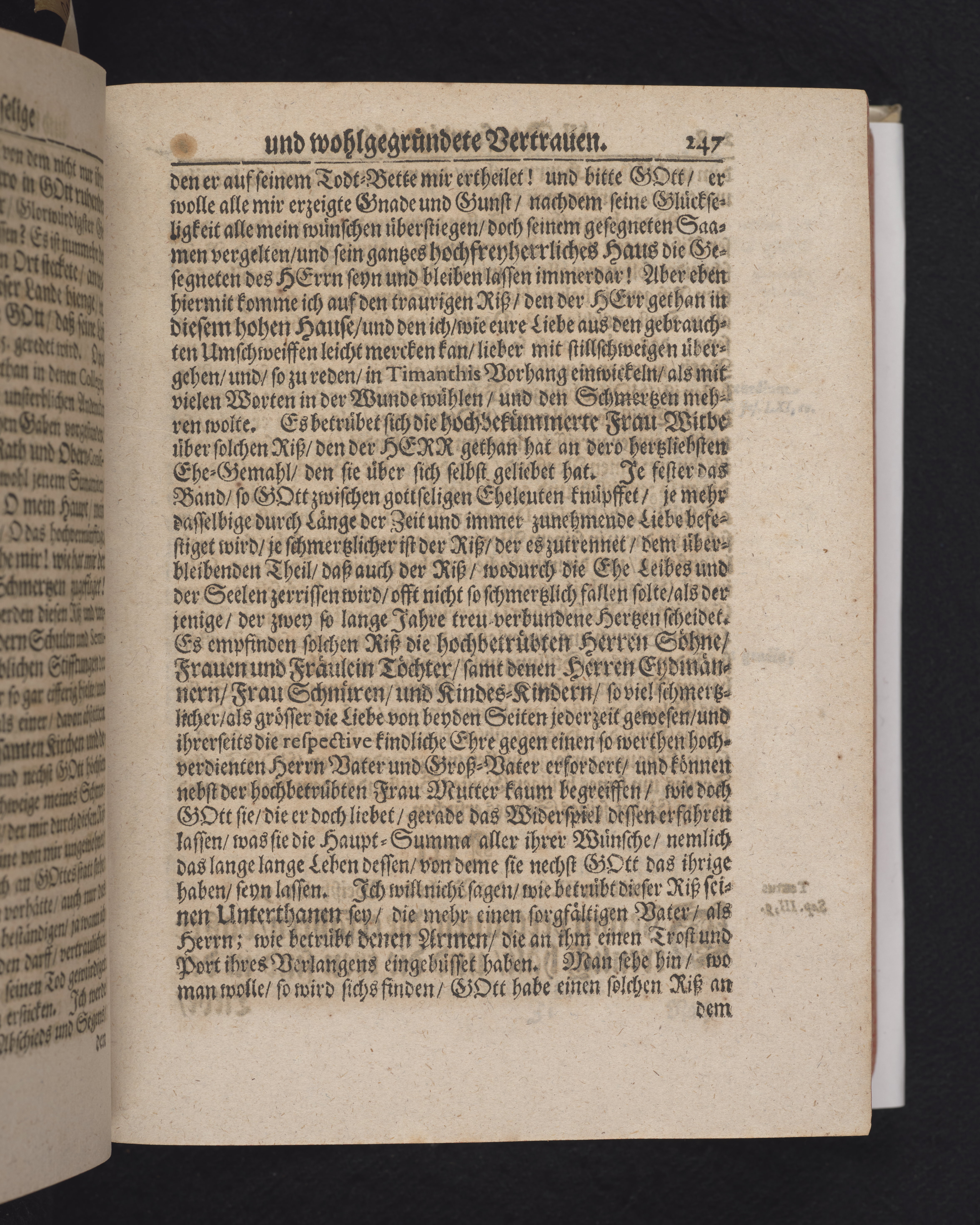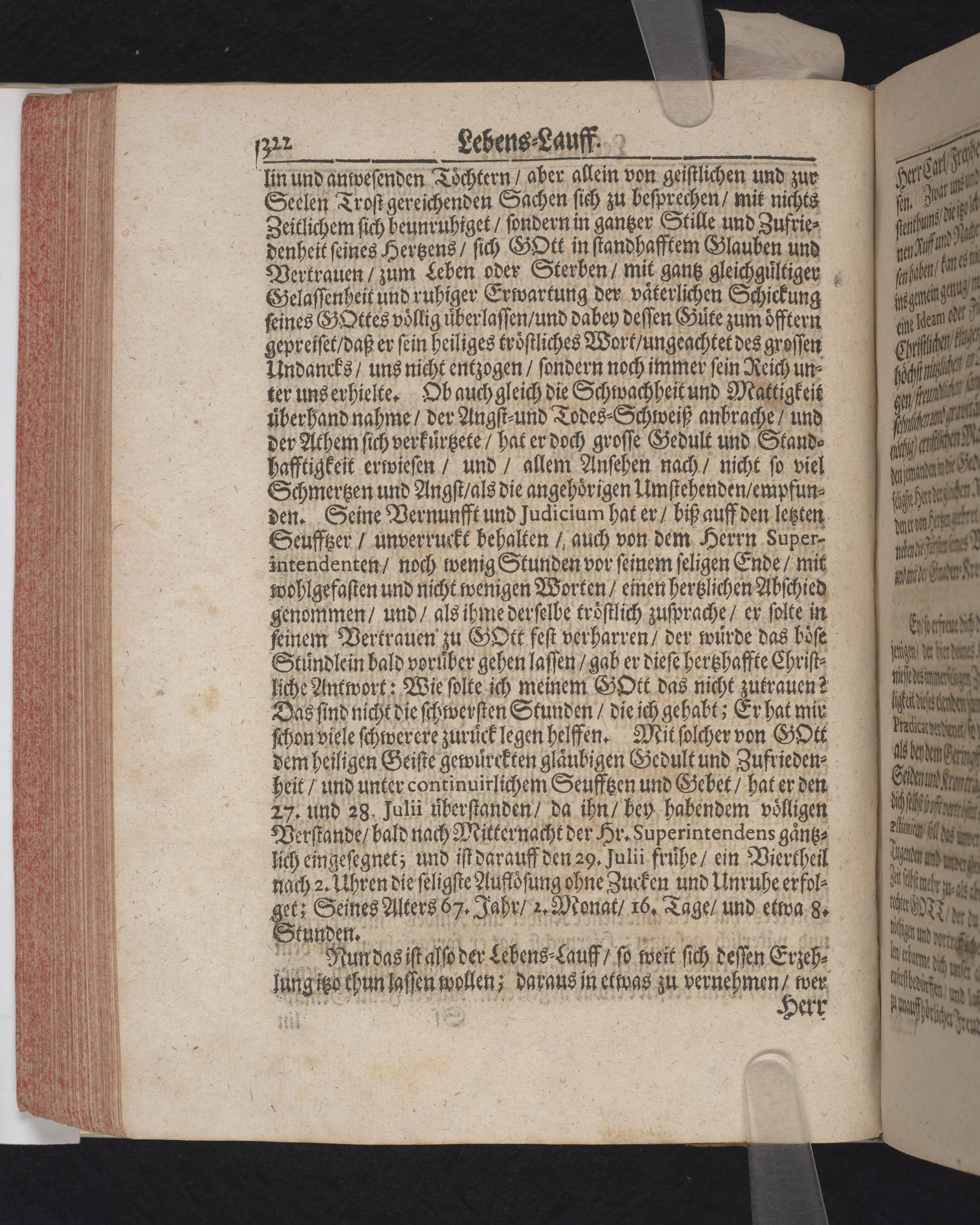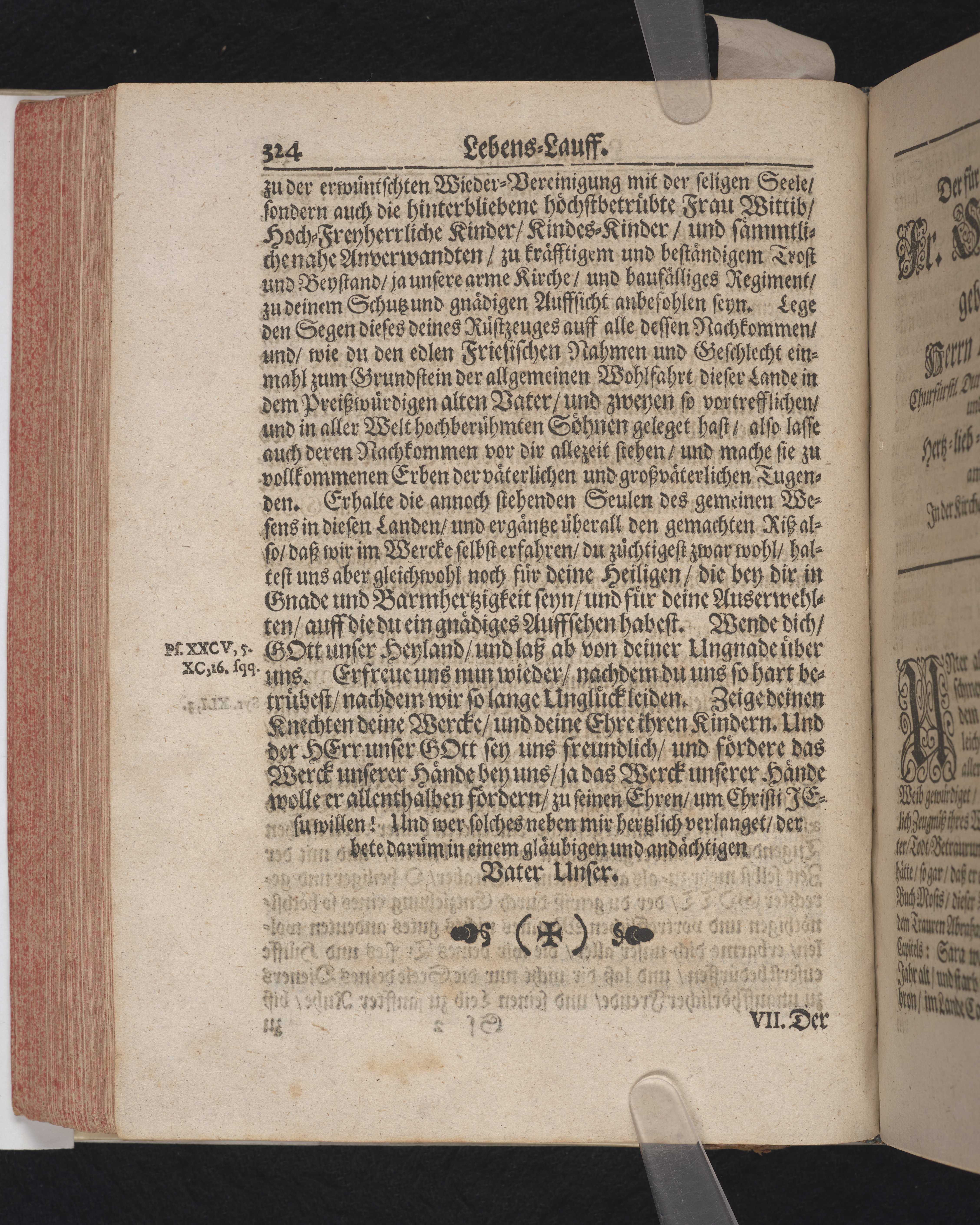 Ingår i en utgiven samling med 28 likpredikningar av Samuel Benedikt Carpzov: Grünende Gebeine, oder Leich-Predigten... Tryckt innehållsförteckning och register. Handskriven innehållsförteckning över de 28 likpredikningarna med bläck på främre försättsbladet (recto och verso).