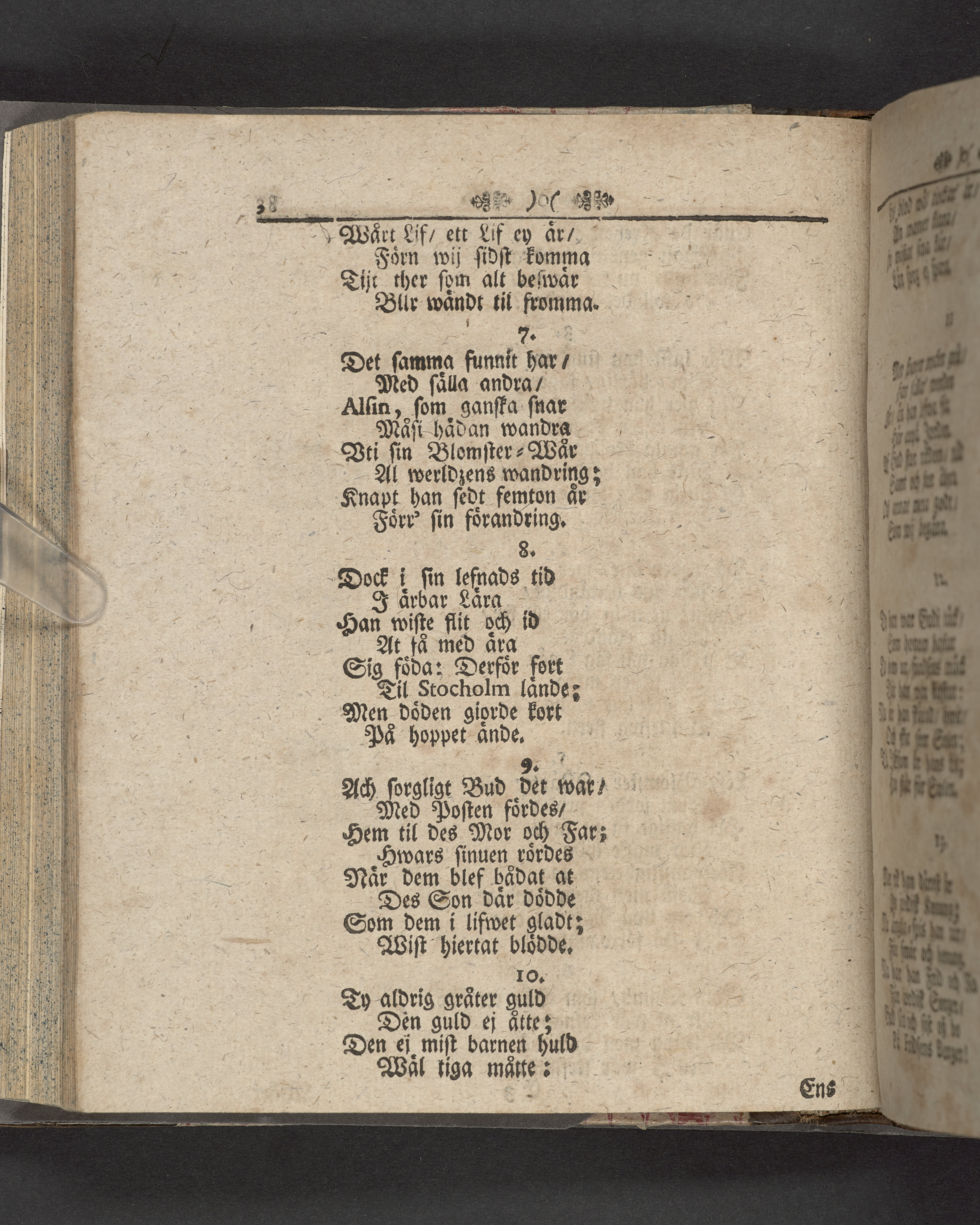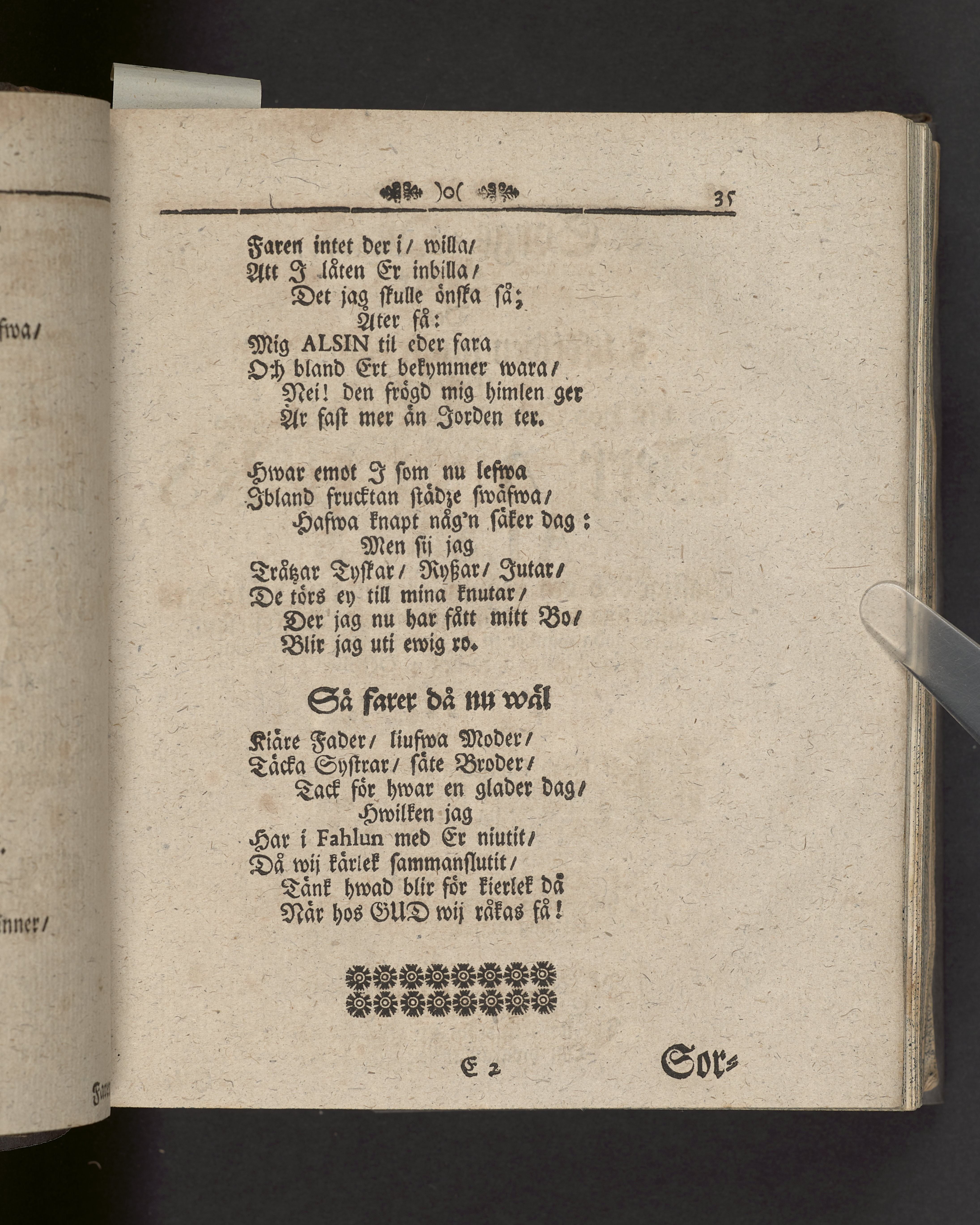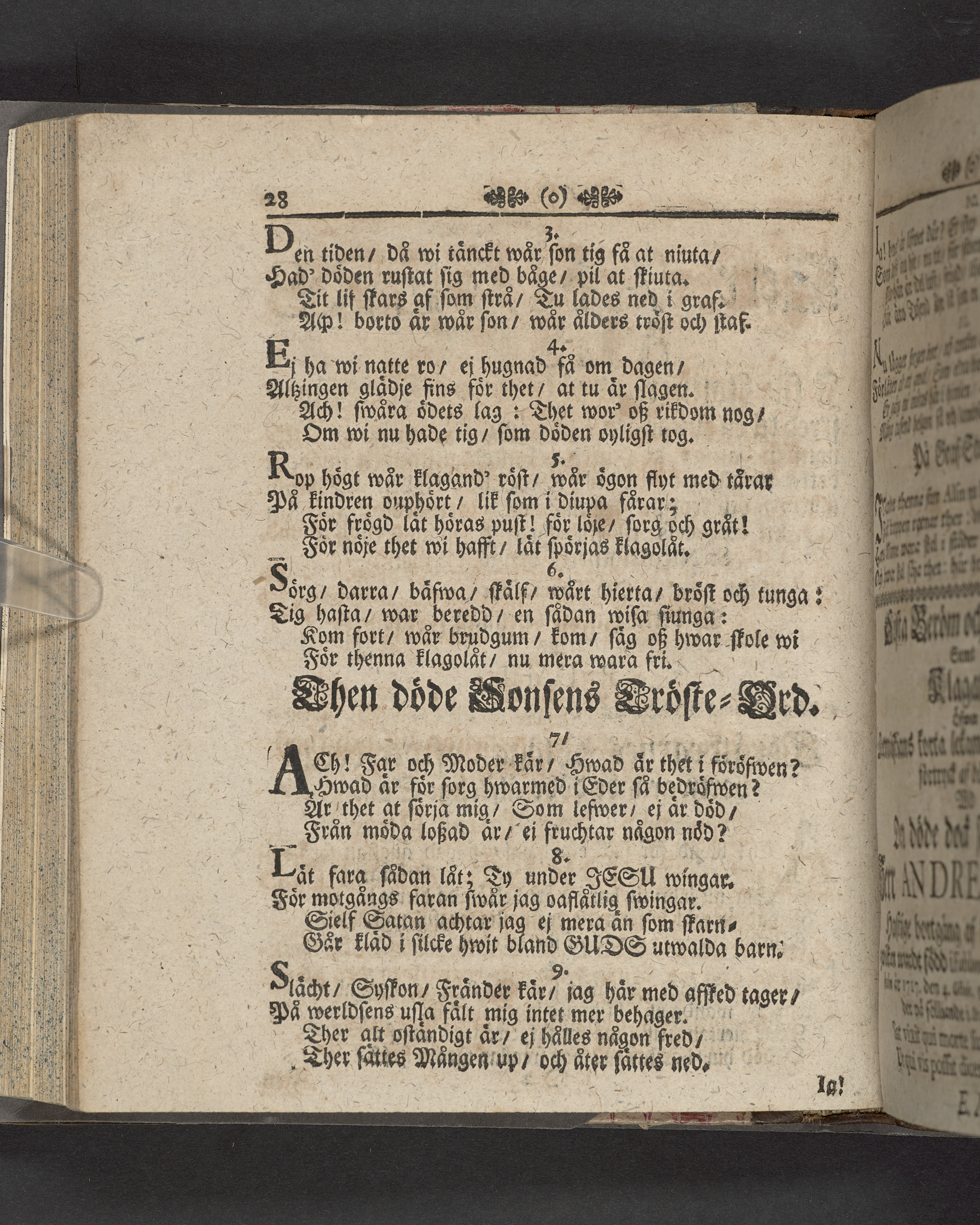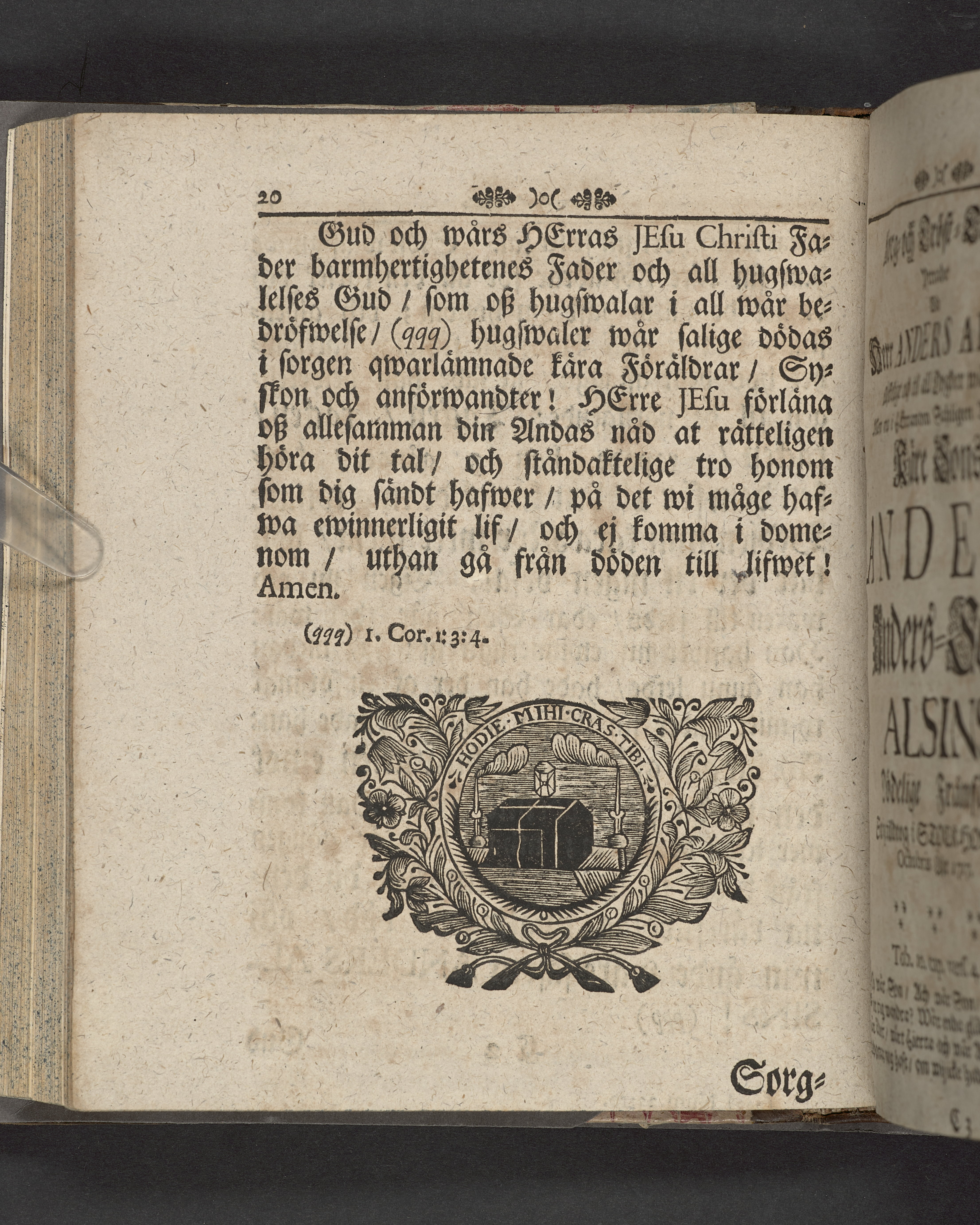 Innehåller även 7 gravskrifter samlade under rubriken "Sorg- och tröst-tanckar, yttrade wid ... Anders-sons Alsins dödelige frånfälle".