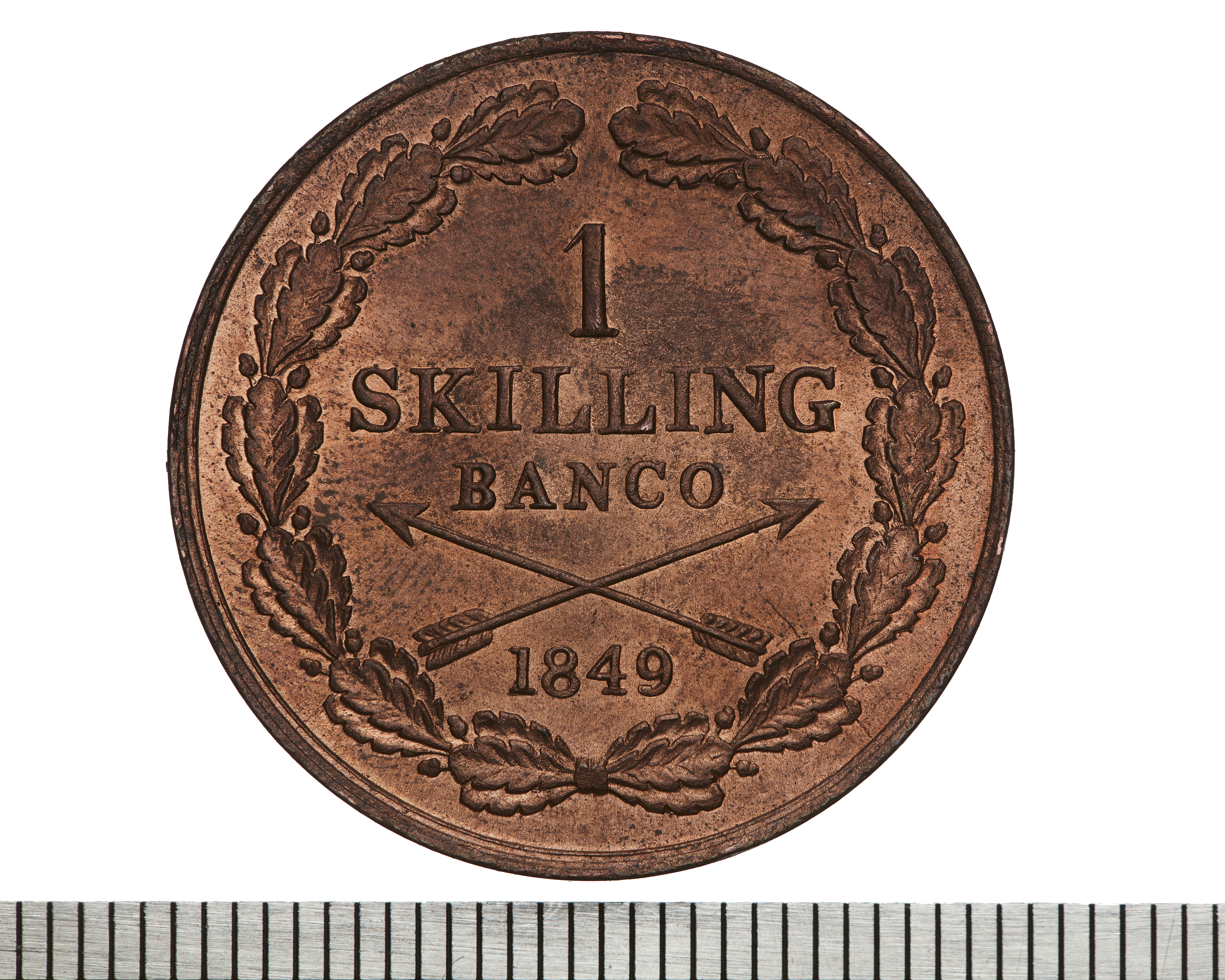 Upphov: Oscar I av Sverige och Norge. Media: Bonnevier, Helena. Ekonomiska museet - Kungliga myntkabinettet/SHM, (CC BY 4.0) Du får bearbeta och dela verket för alla ändamål, även kommersiella, så länge du anger upphovsperson och licensgivare.