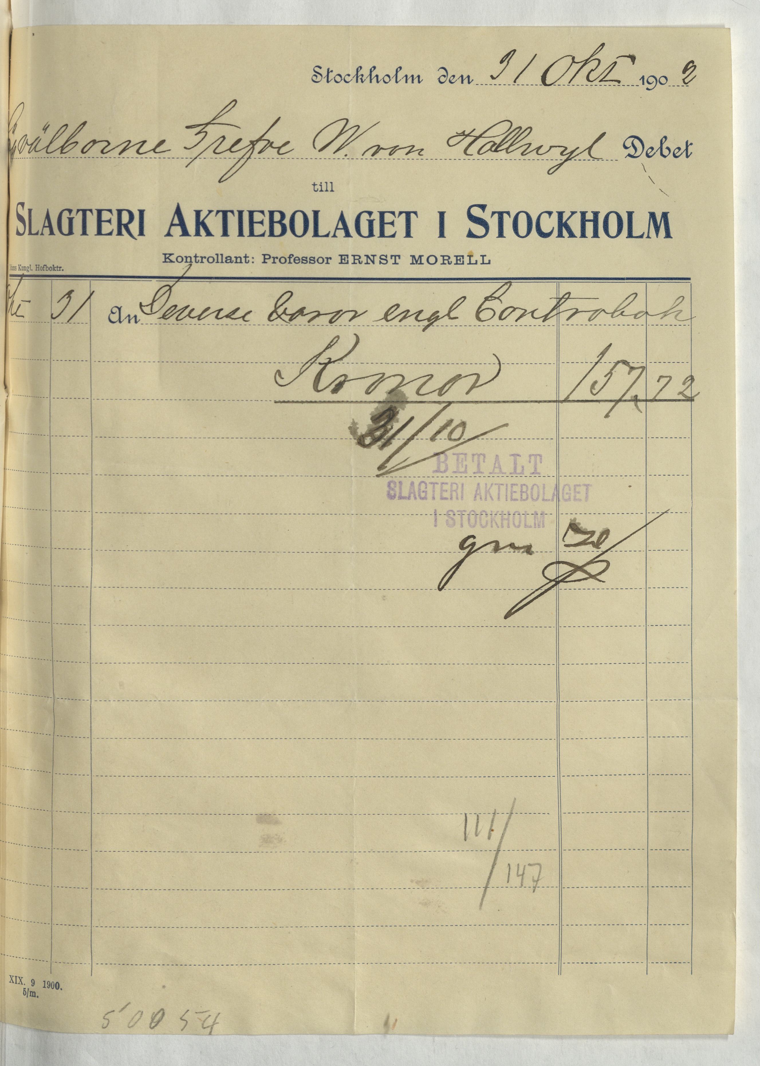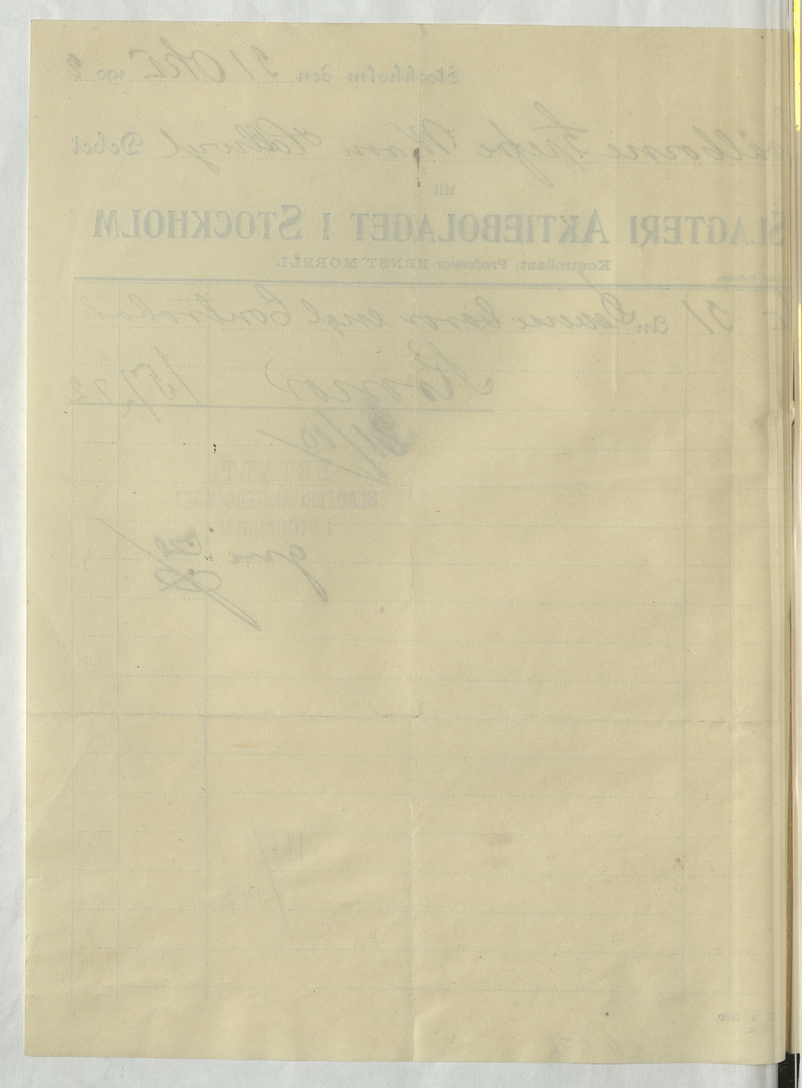 Kvitto från Slagteri Aktiebolaget i Stockholm