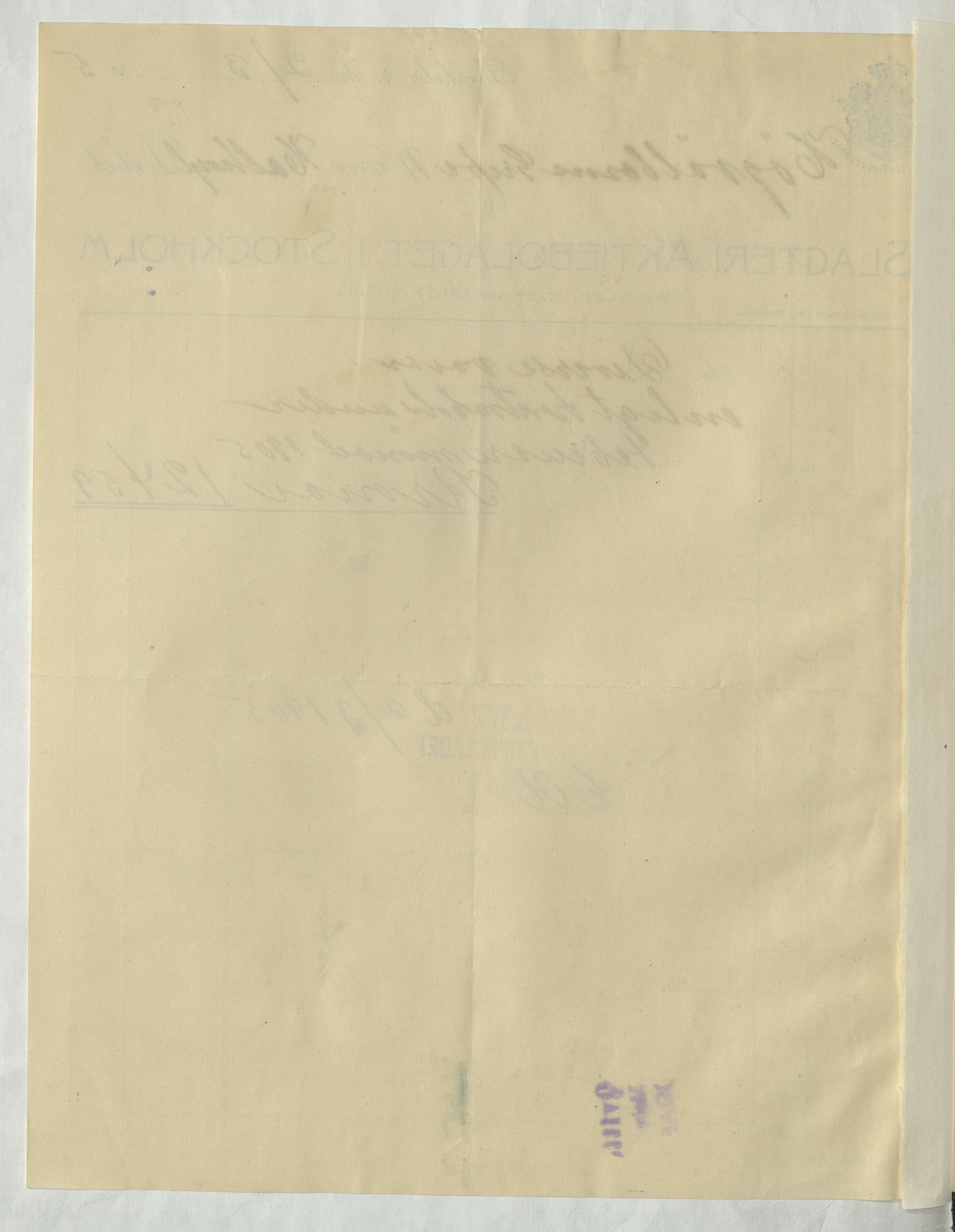 Kvitto från Slagteri Aktiebolaget i Stockholm