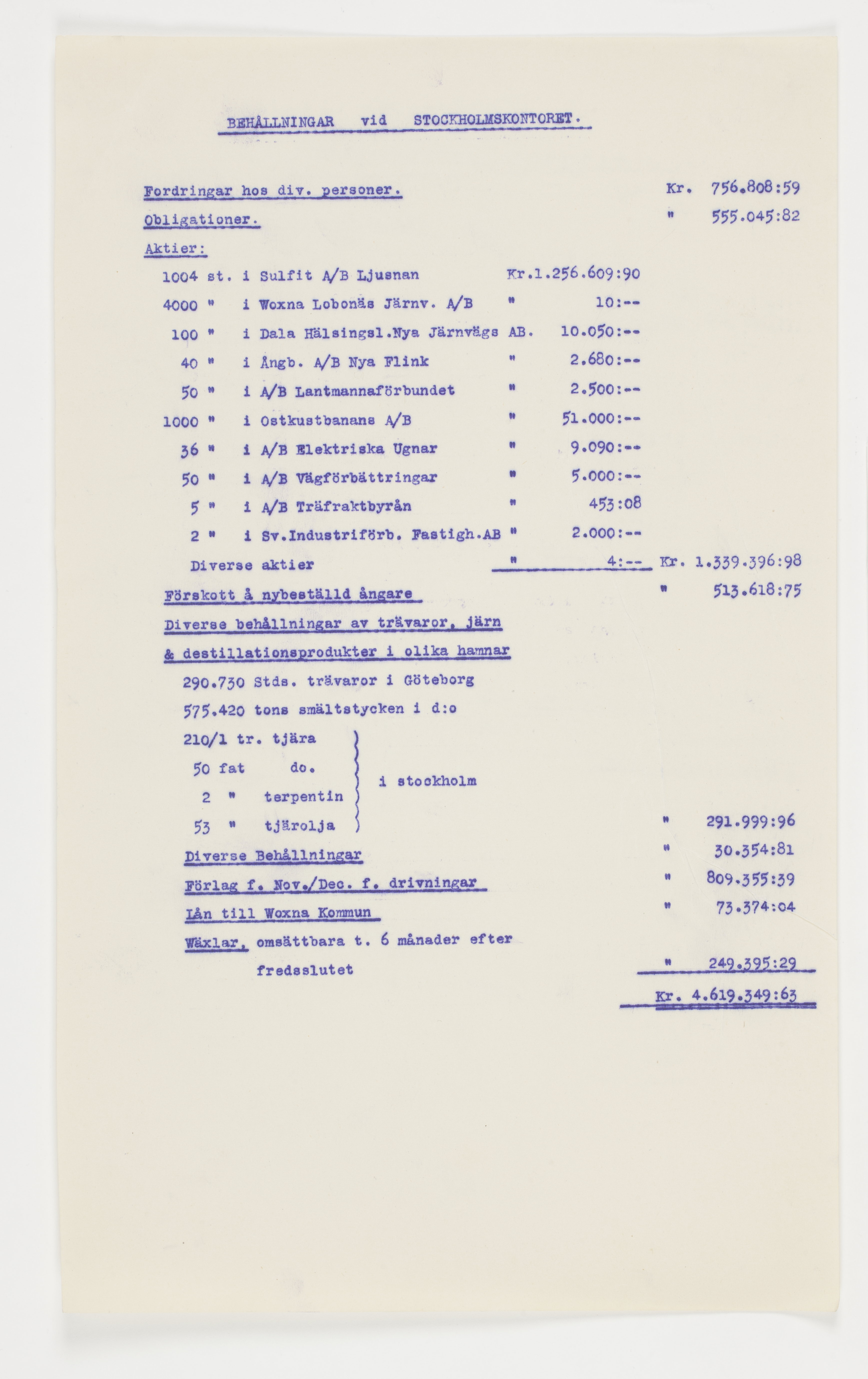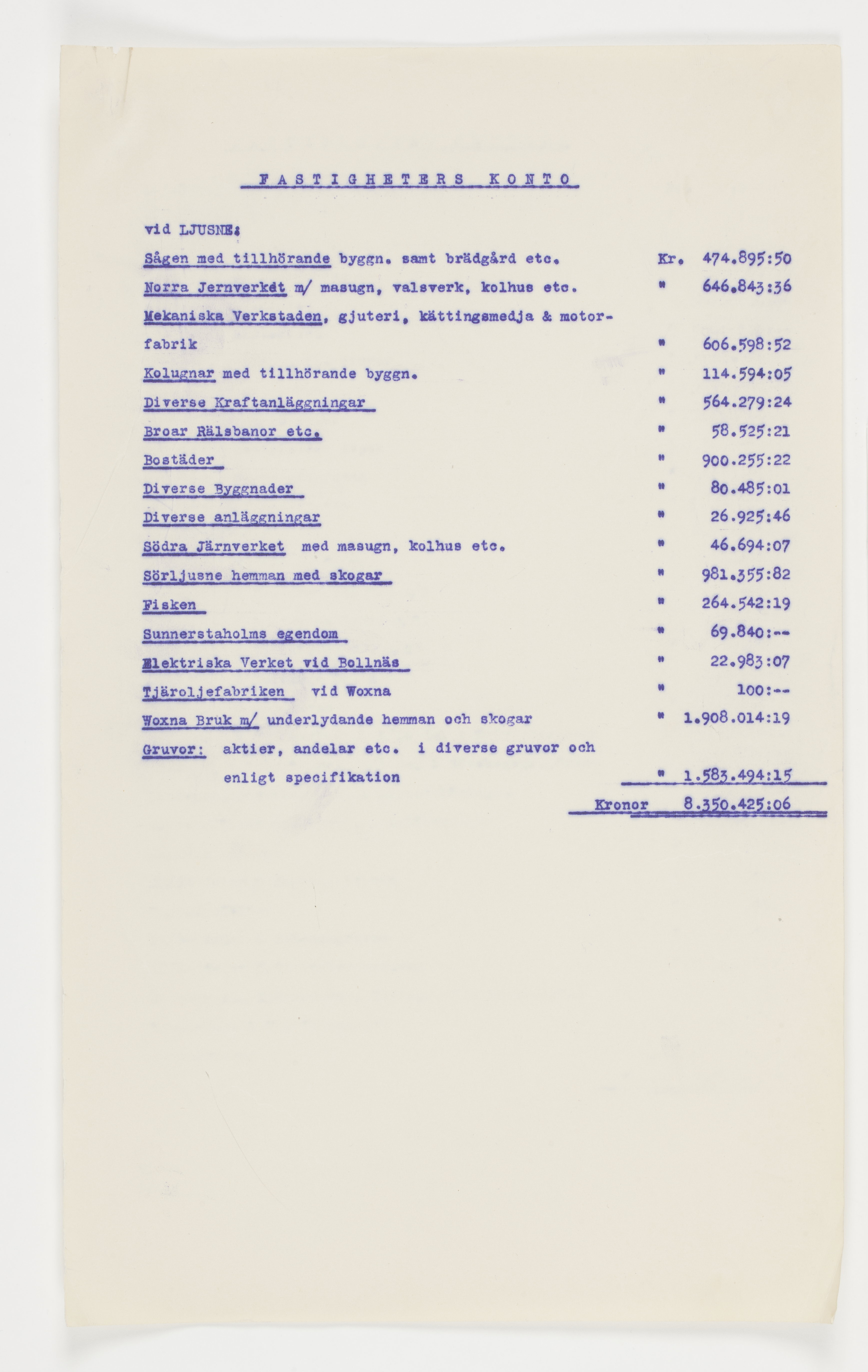 Affärshandlingar rörande Ljusne-Voxna AB.