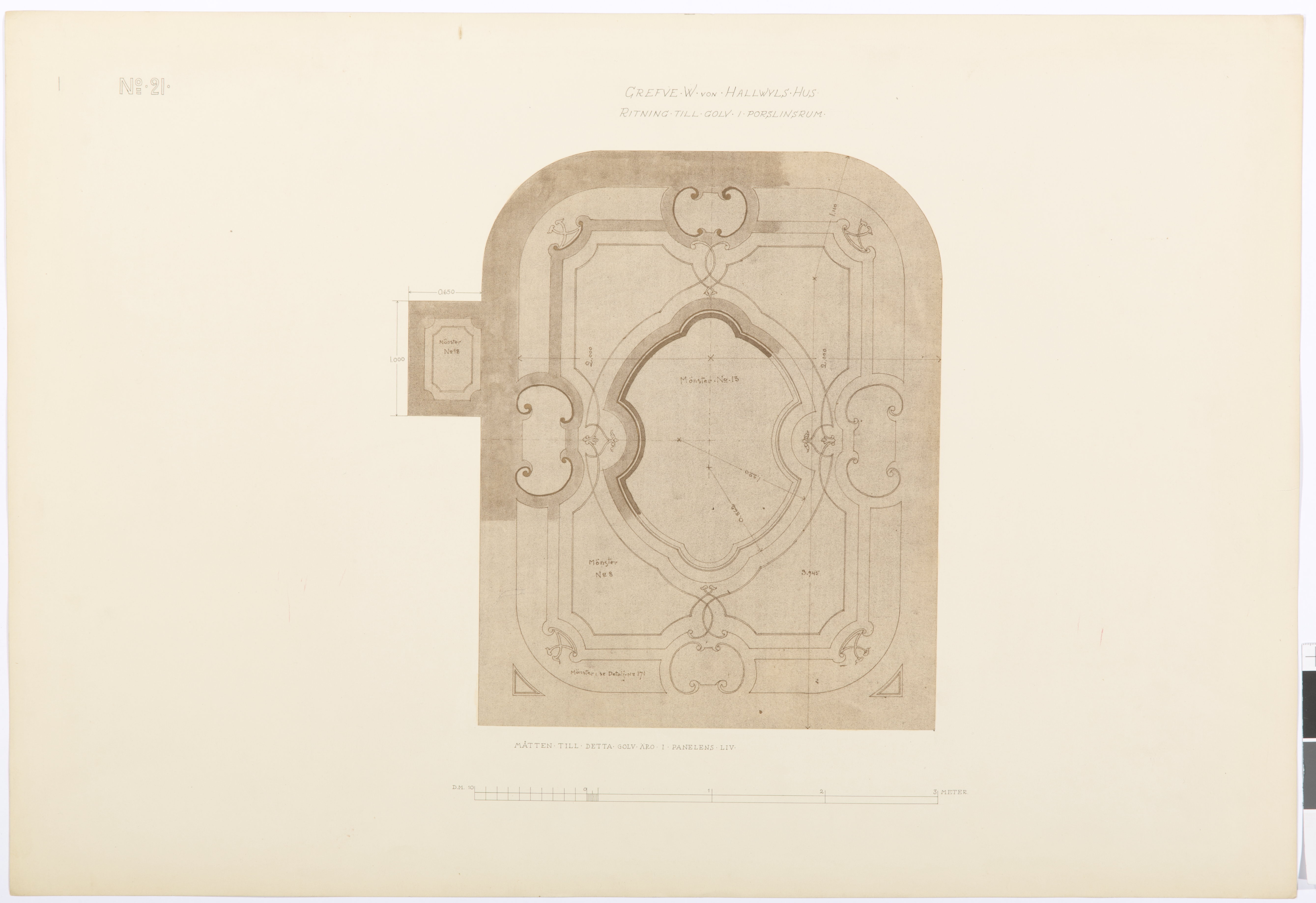 Nr 21. Ritning till golv i porslinrum. Huvudritningar