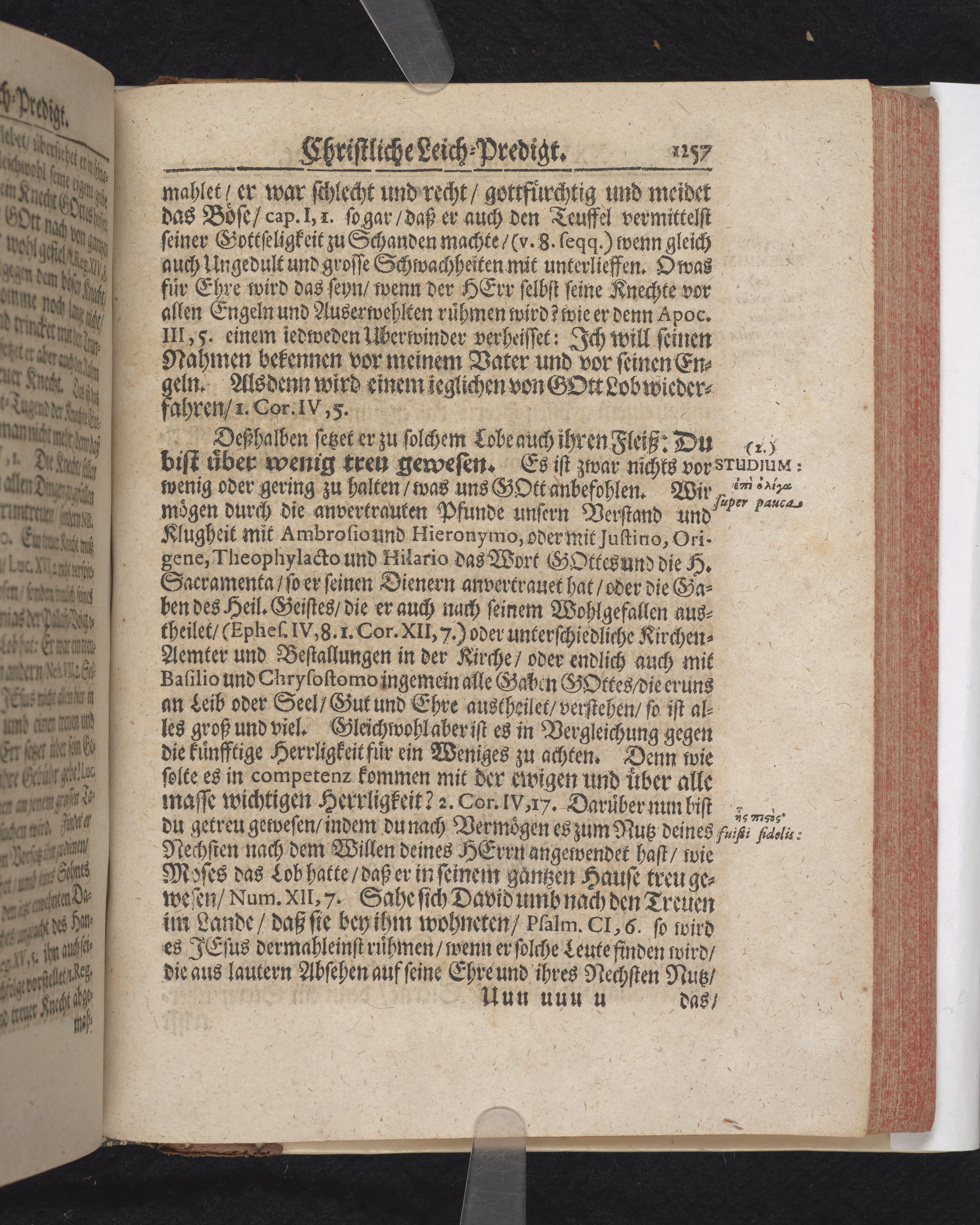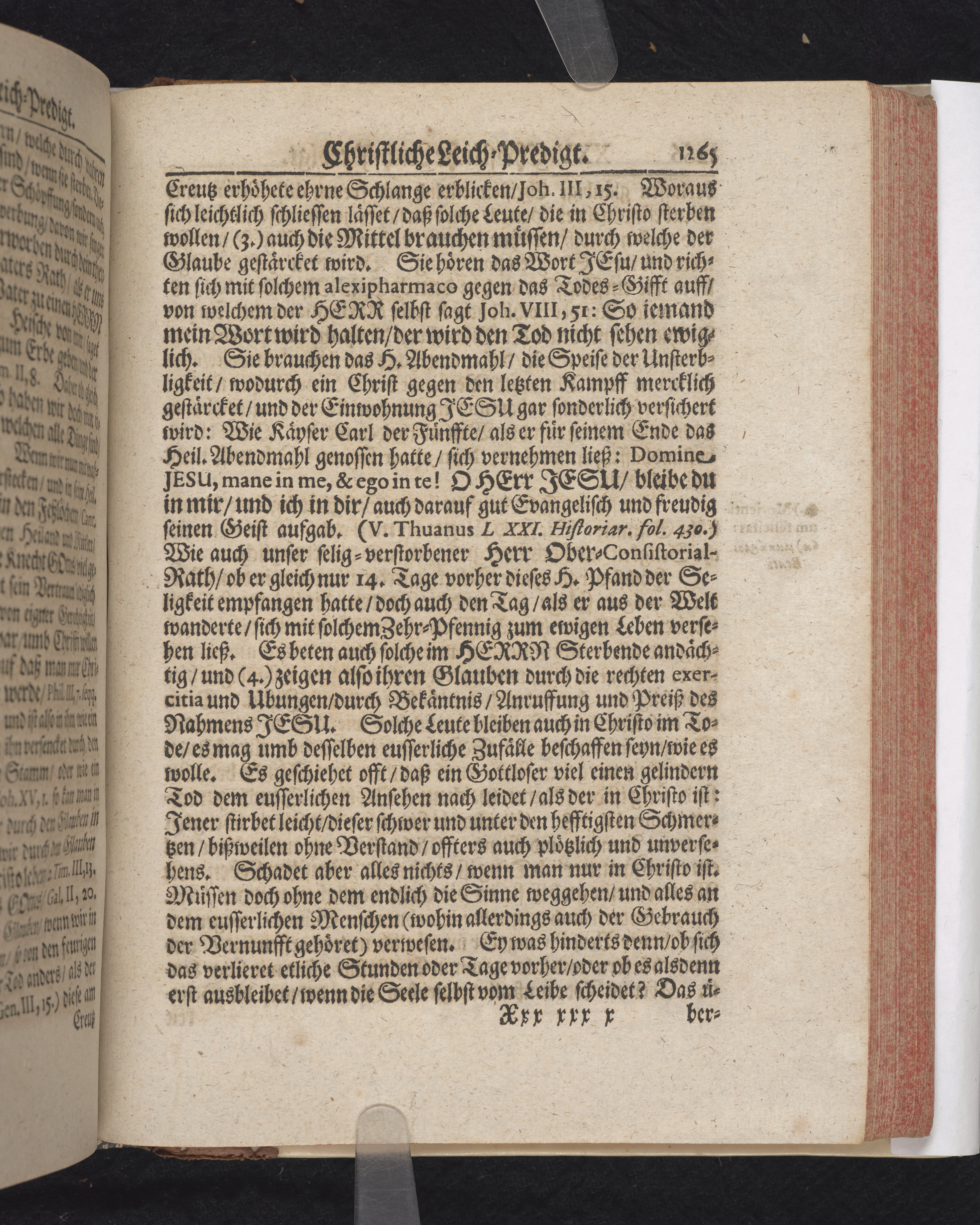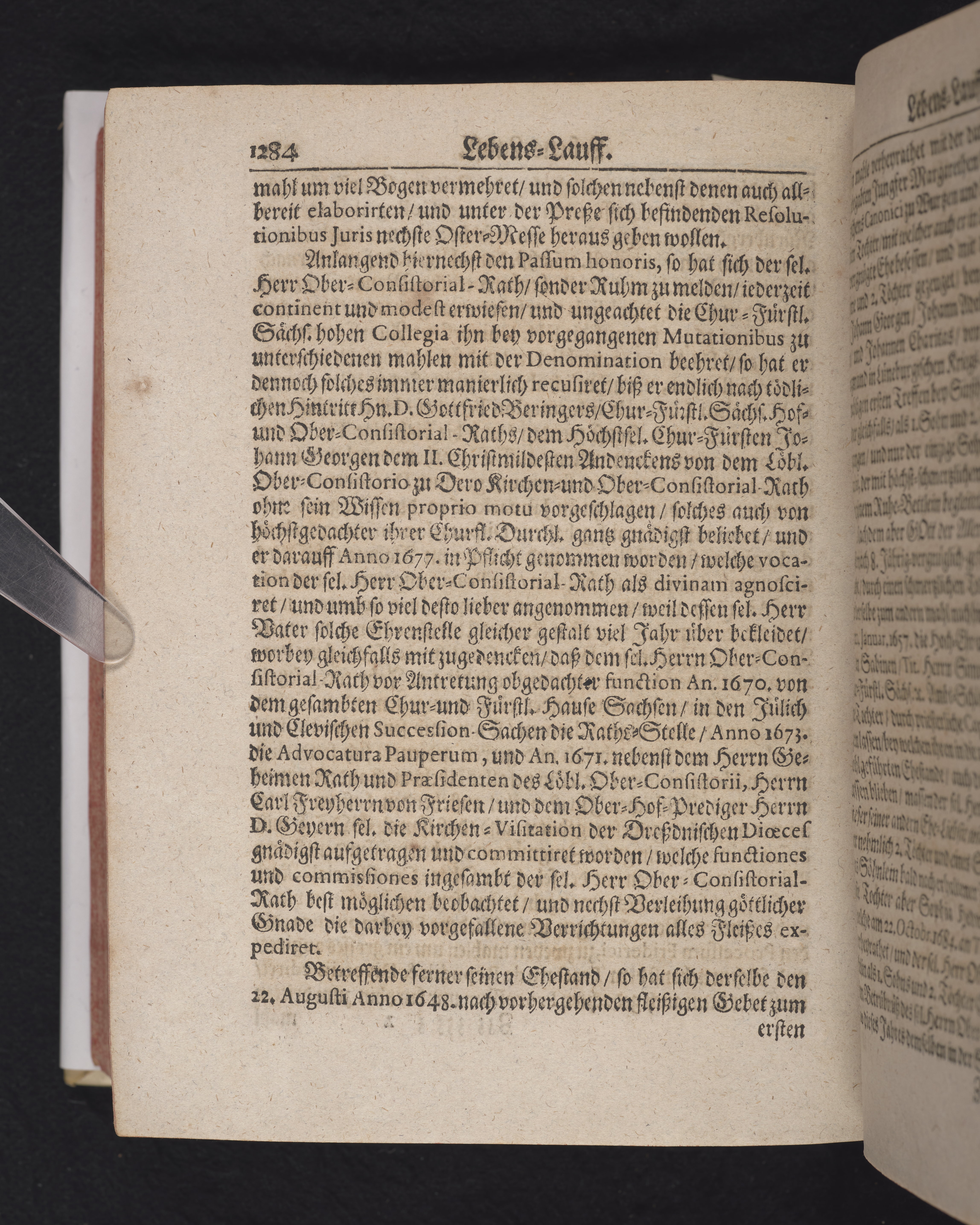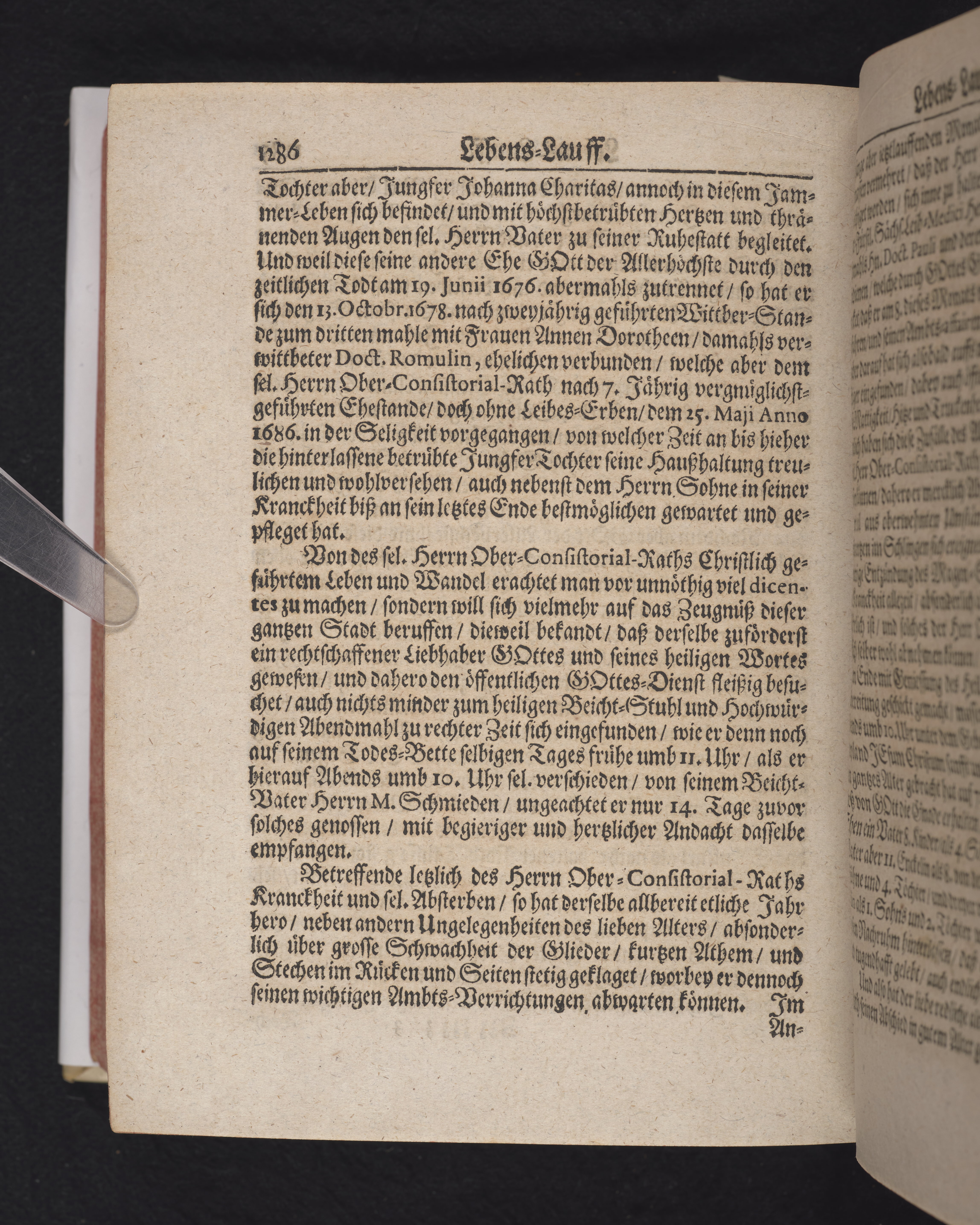 Ingår i en utgiven samling med 28 likpredikningar av Samuel Benedikt Carpzov: Grünende Gebeine, oder Leich-Predigten... Tryckt innehållsförteckning och register. Handskriven innehållsförteckning över de 28 likpredikningarna med bläck på främre försättsbladet (recto och verso).