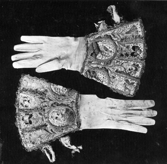 Broderad Kraghandske vit, cirka 1610, till kröningsdräkt