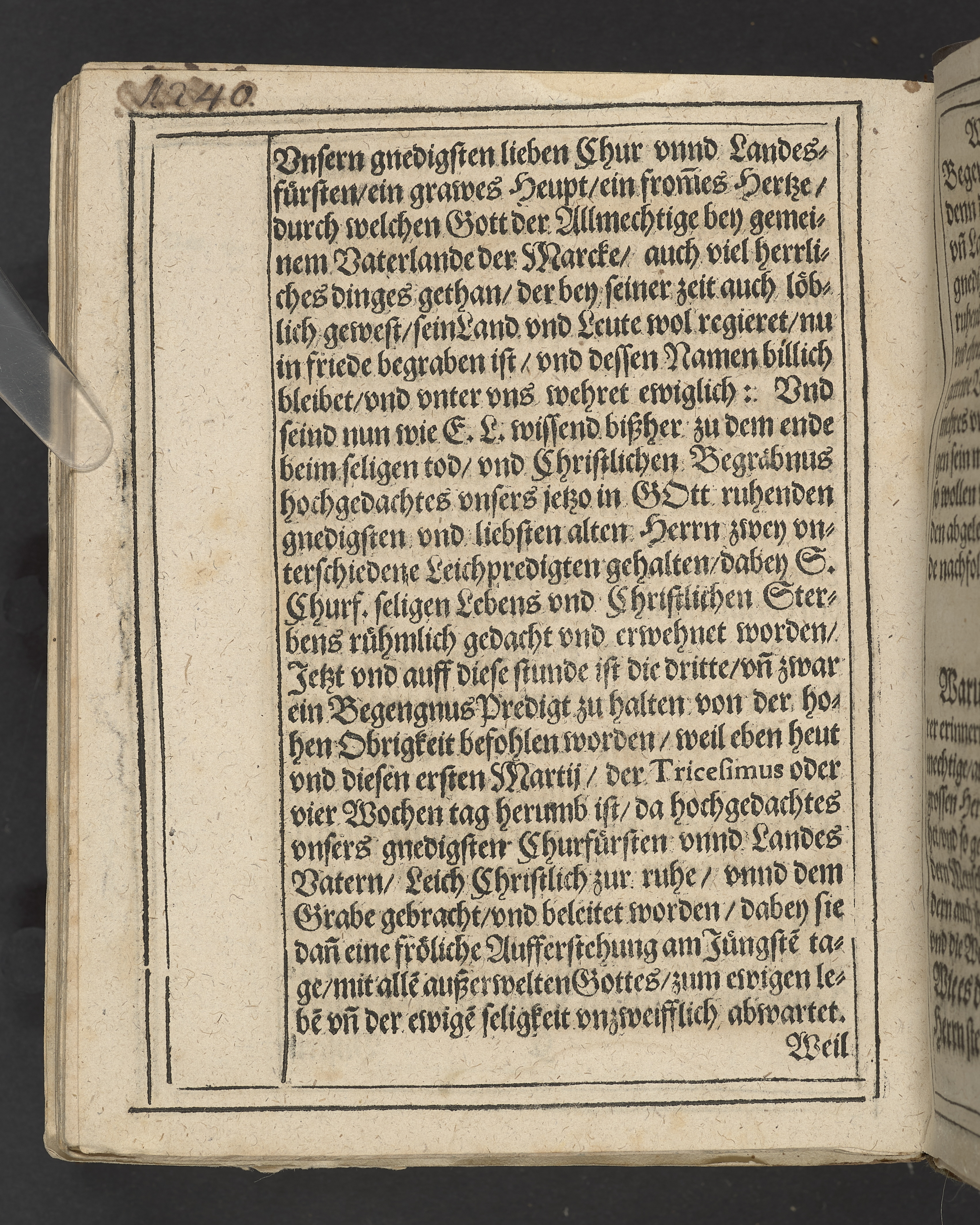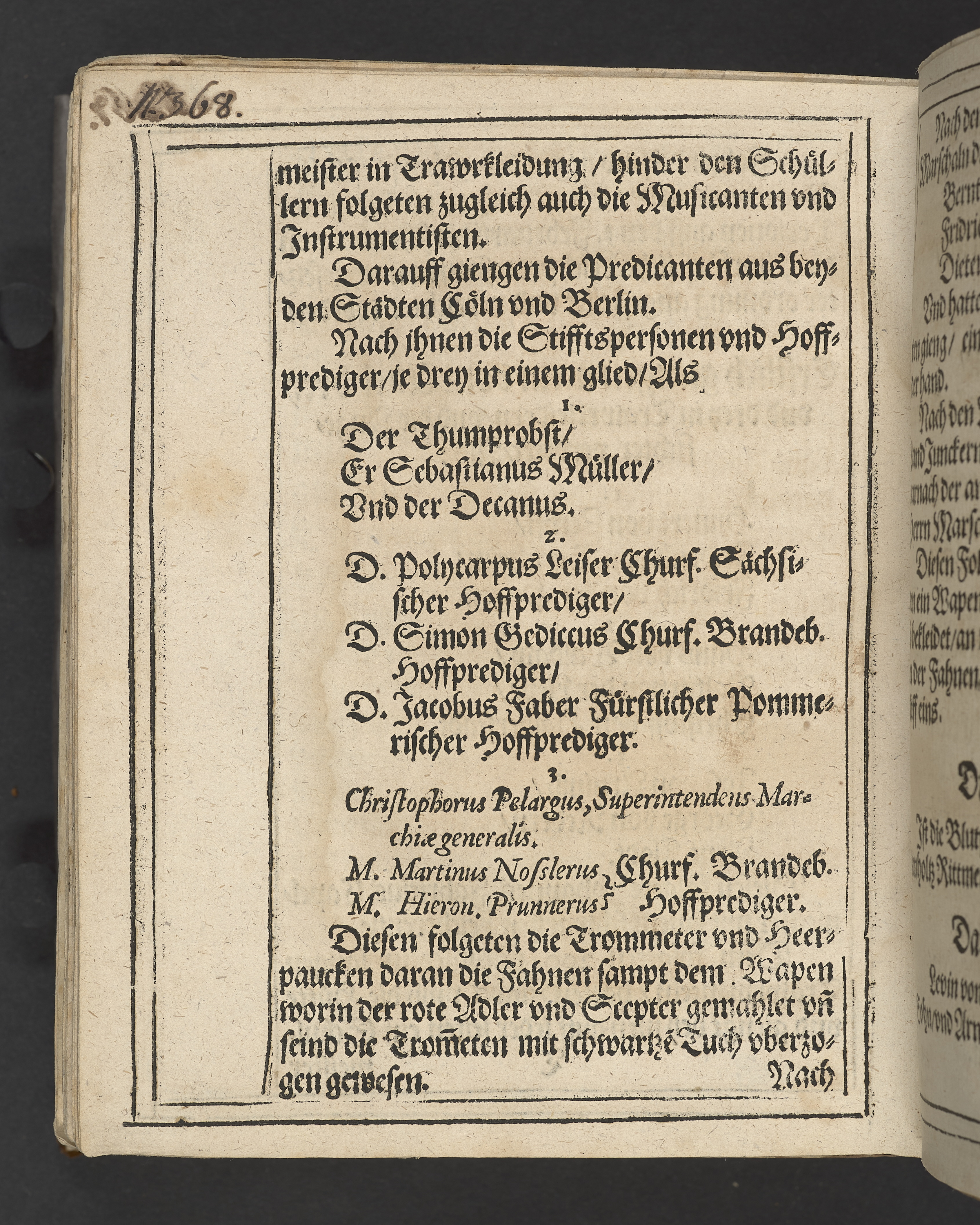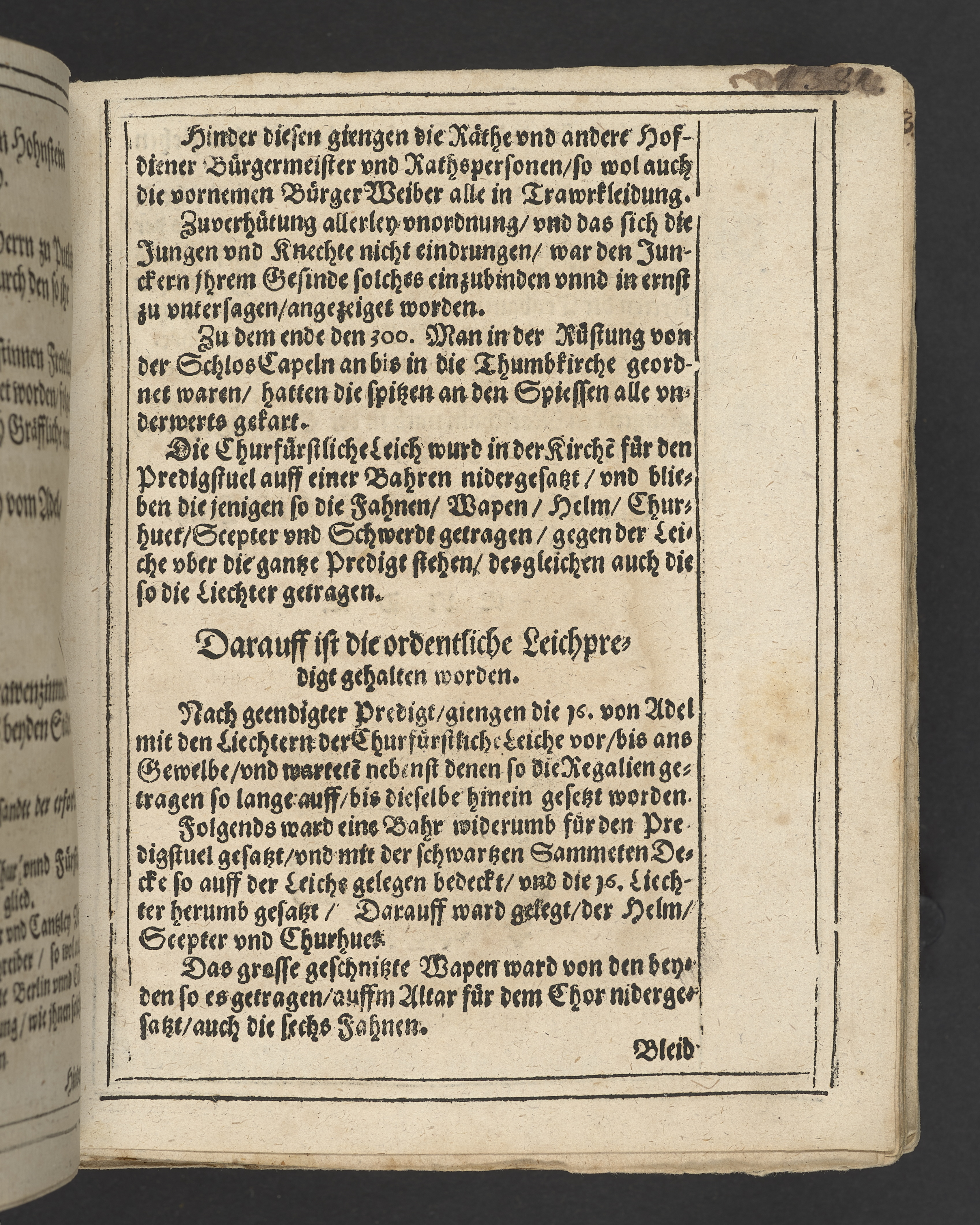 Begengnüs Predigt, auff dem Tricesimo ... nach dem Christlichen Begrebnus des ... Herrn Iohans Georgen, des heiligen Röm: Reichs Ertz Cämmeren vnd Churfürsten in Preussen, zu Stetin, Pommern ... dieses jetztlaufenden 98. Jars ... den 1 feb ... in Thumb Stifft ... in sein Ruhe-kämmerlein gesetzt worden. Den 1 Martij gehalten vnd in Druck verfertiget, durch M. Martinvm Nosslervm ... Cum inscriptione tumbæ ... Gedruckt zu Franckfurt an der Oder, durch Andreas Eichorn. In Verlegung des autoris, anno 1598.