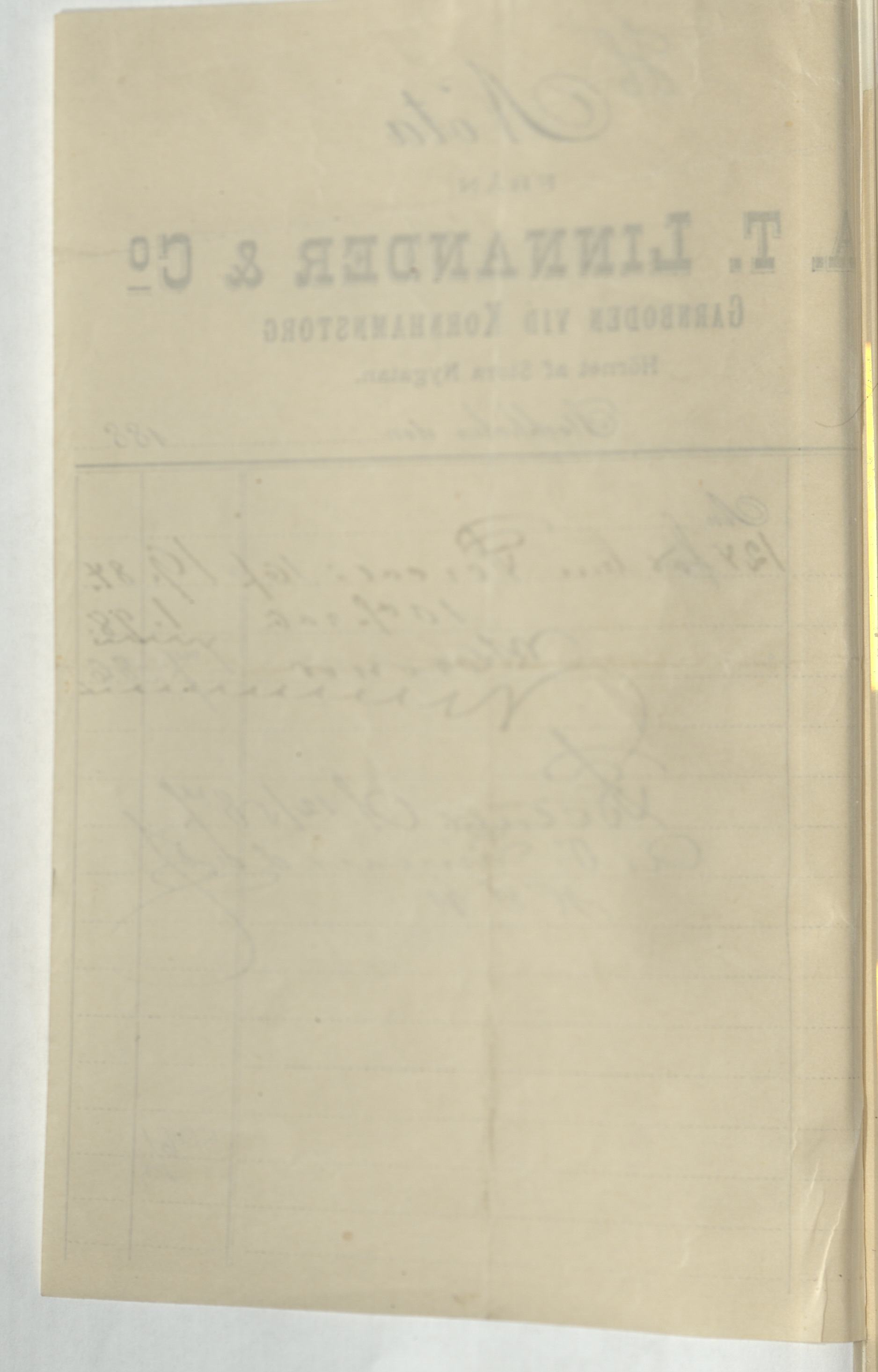 Kvitto från A. T. Linnander & Co
