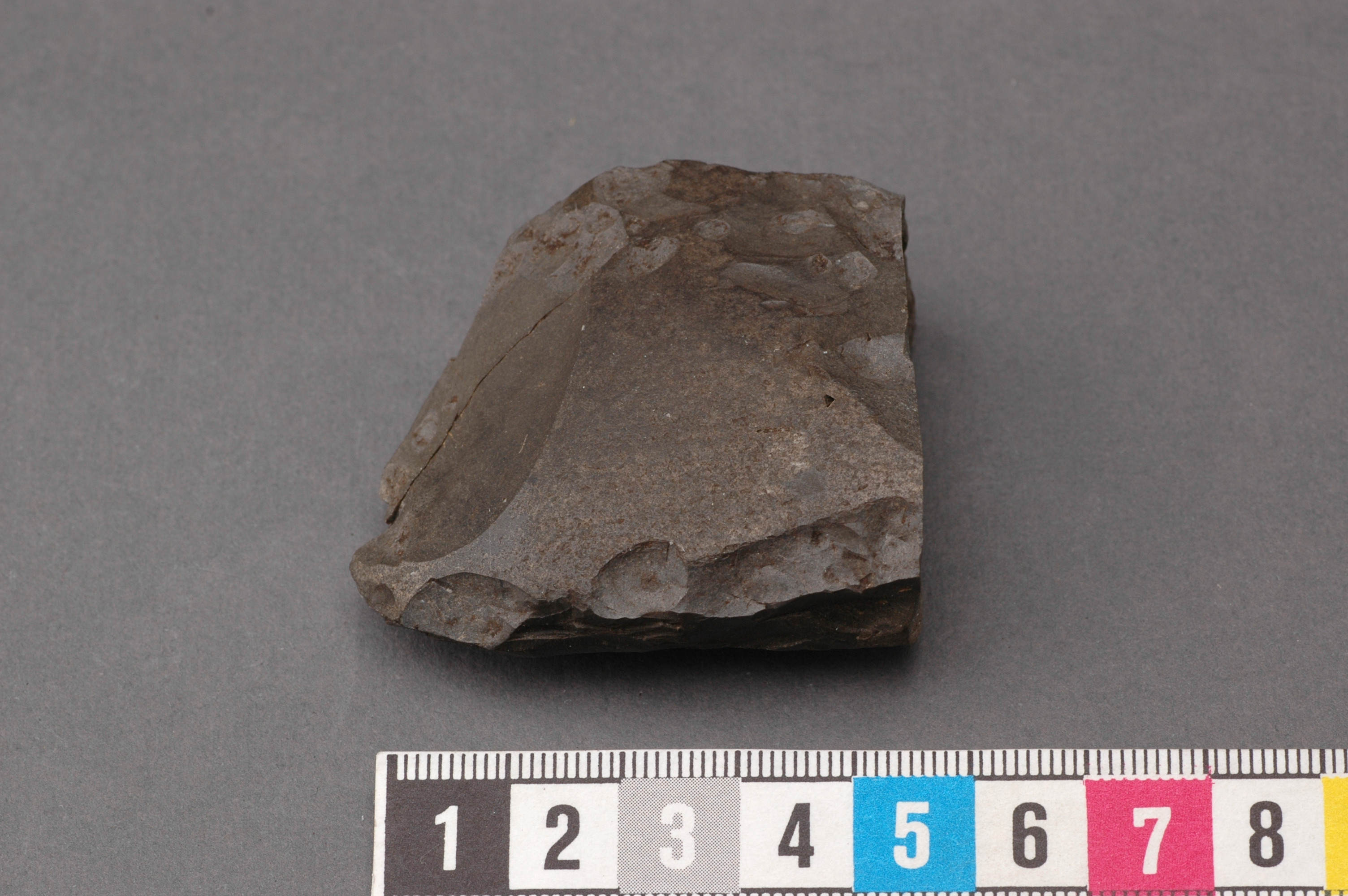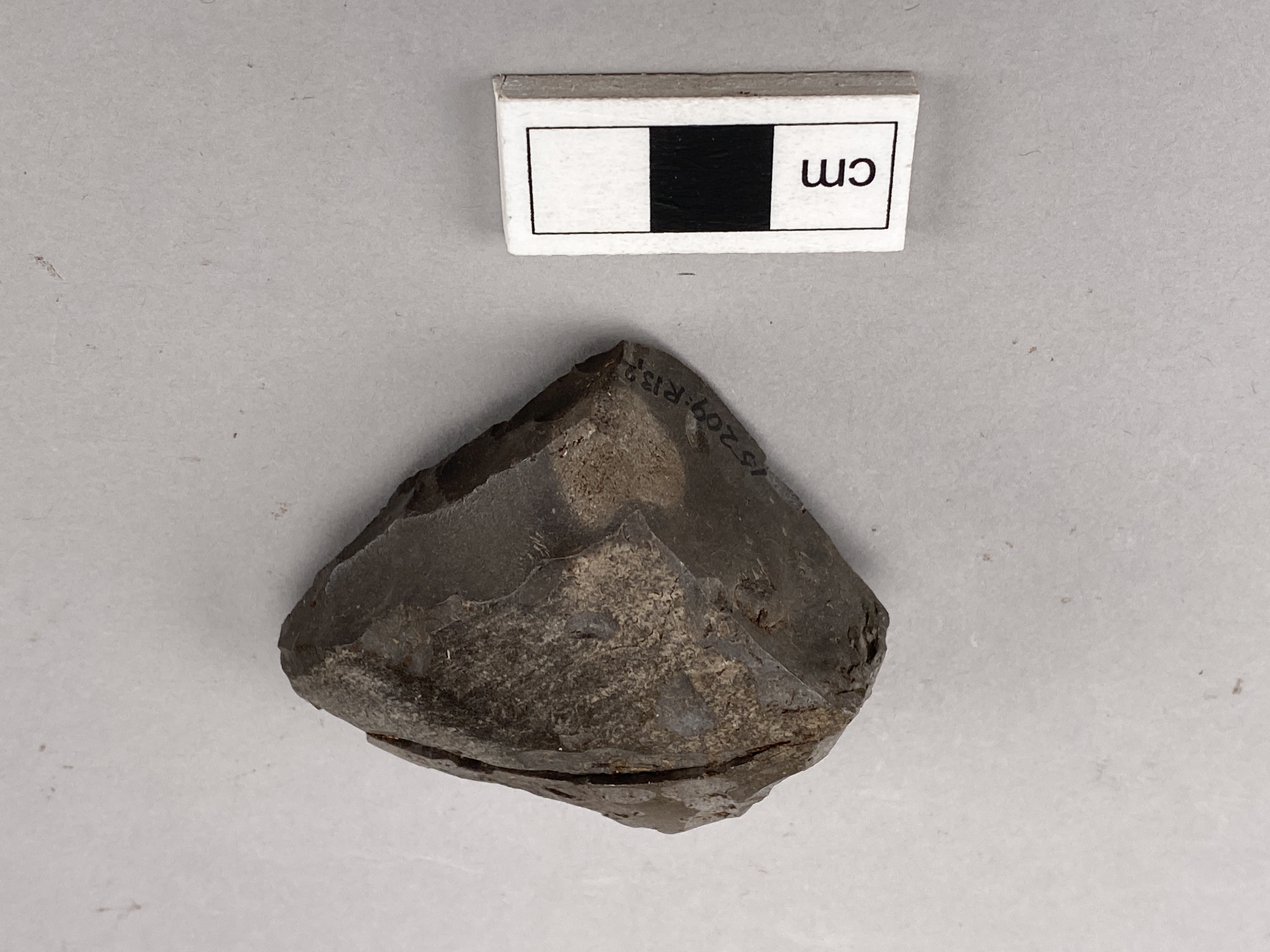 Yxa använd som kärna. Slipytor fortfarande skönjbara på båda bredsidorna.