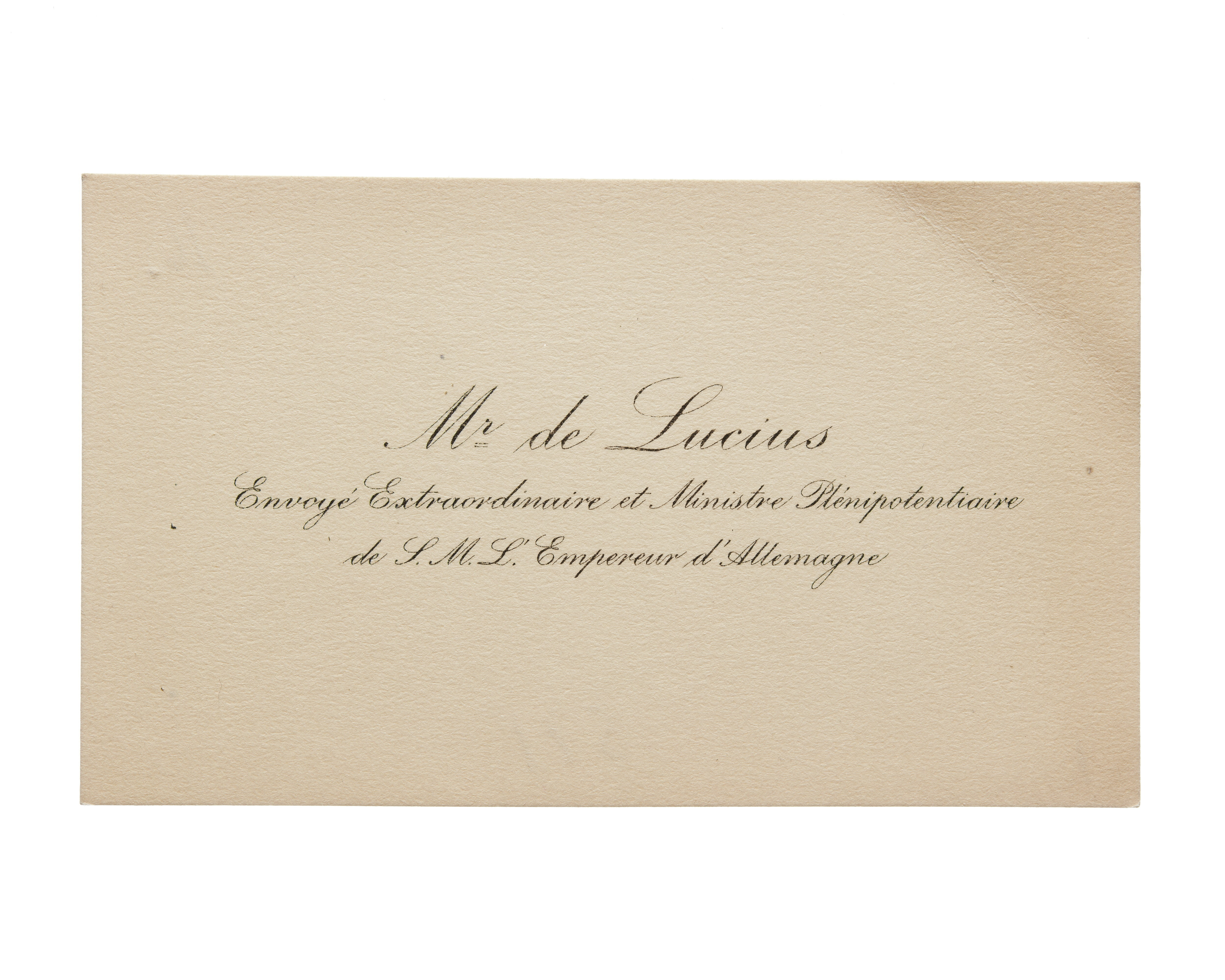 Visitkort från Mr de Lucius von Stoedten, Envoye Extraordinaire et Ministre Plenipotentiaire de S. M. L. Empereur d'Allemagne