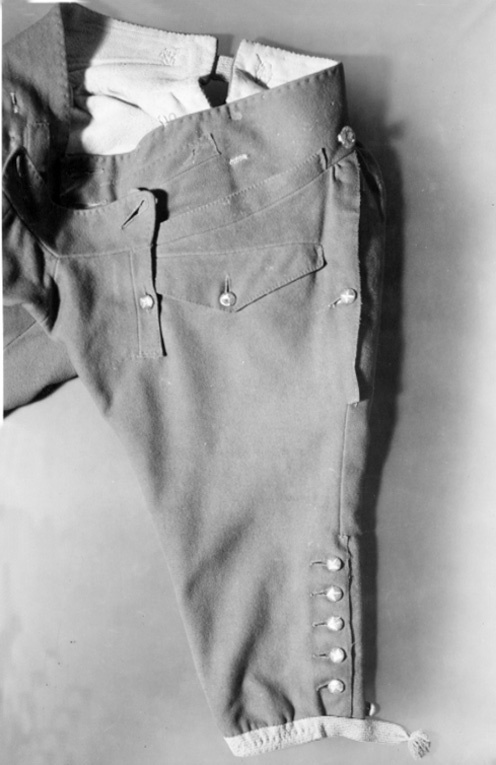 Byxor till Gustav III:s franska jaktdräkt nnr använda vid den första hovjakten i Versailles den 15 maj 1771.