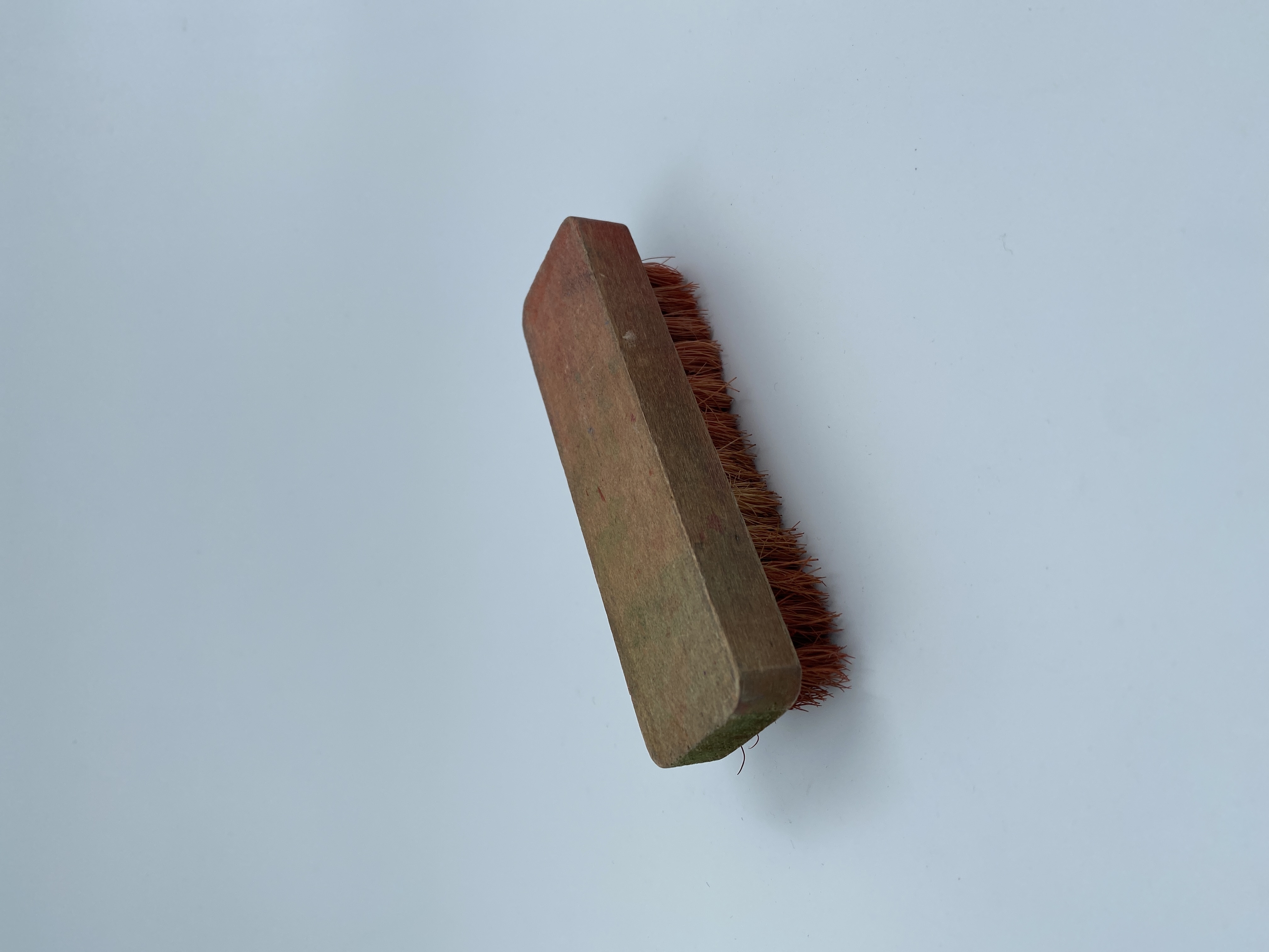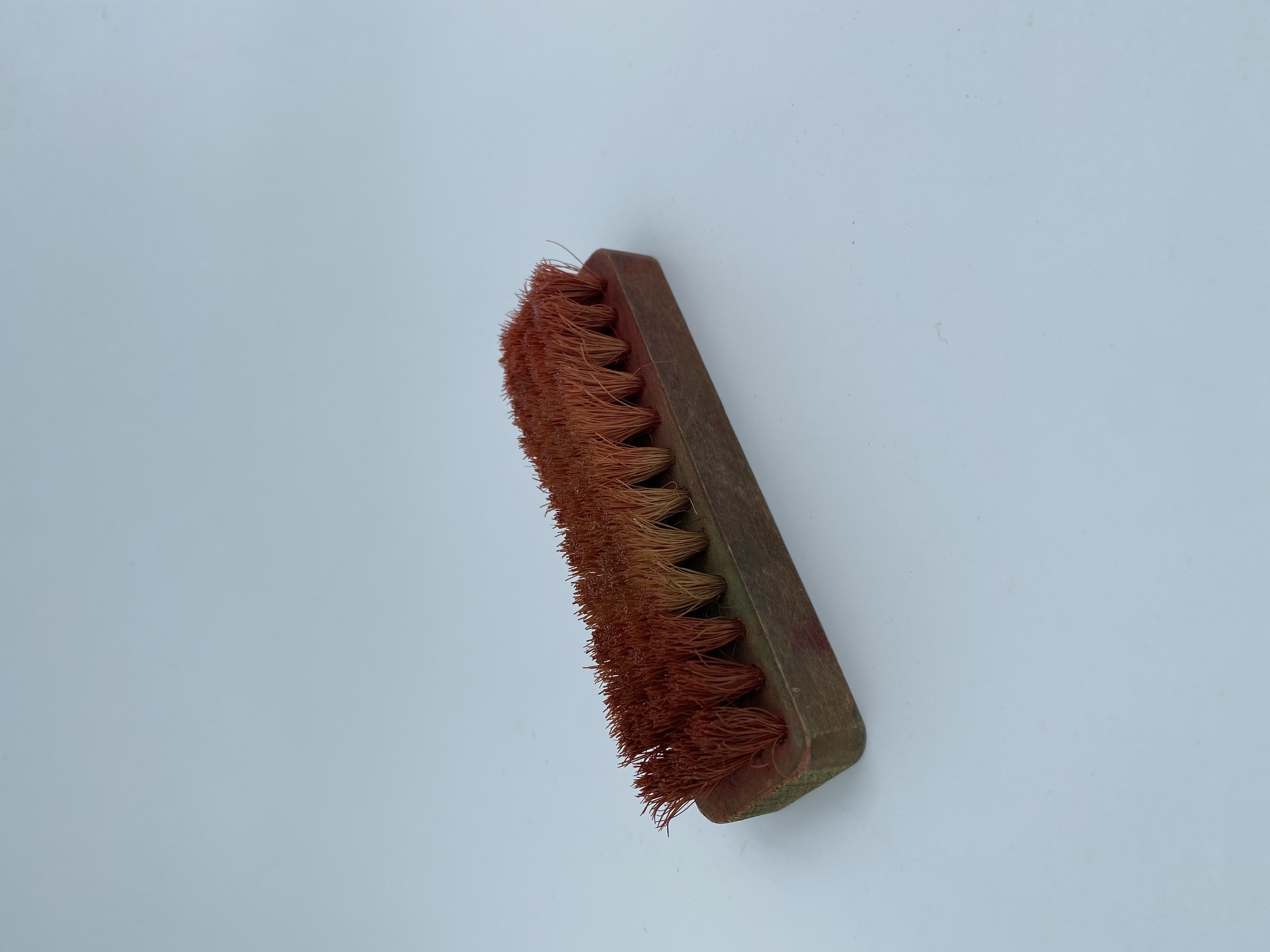 Pigmentborste i trä, använd för spritzteknik av konstnären Auguste Sommer.