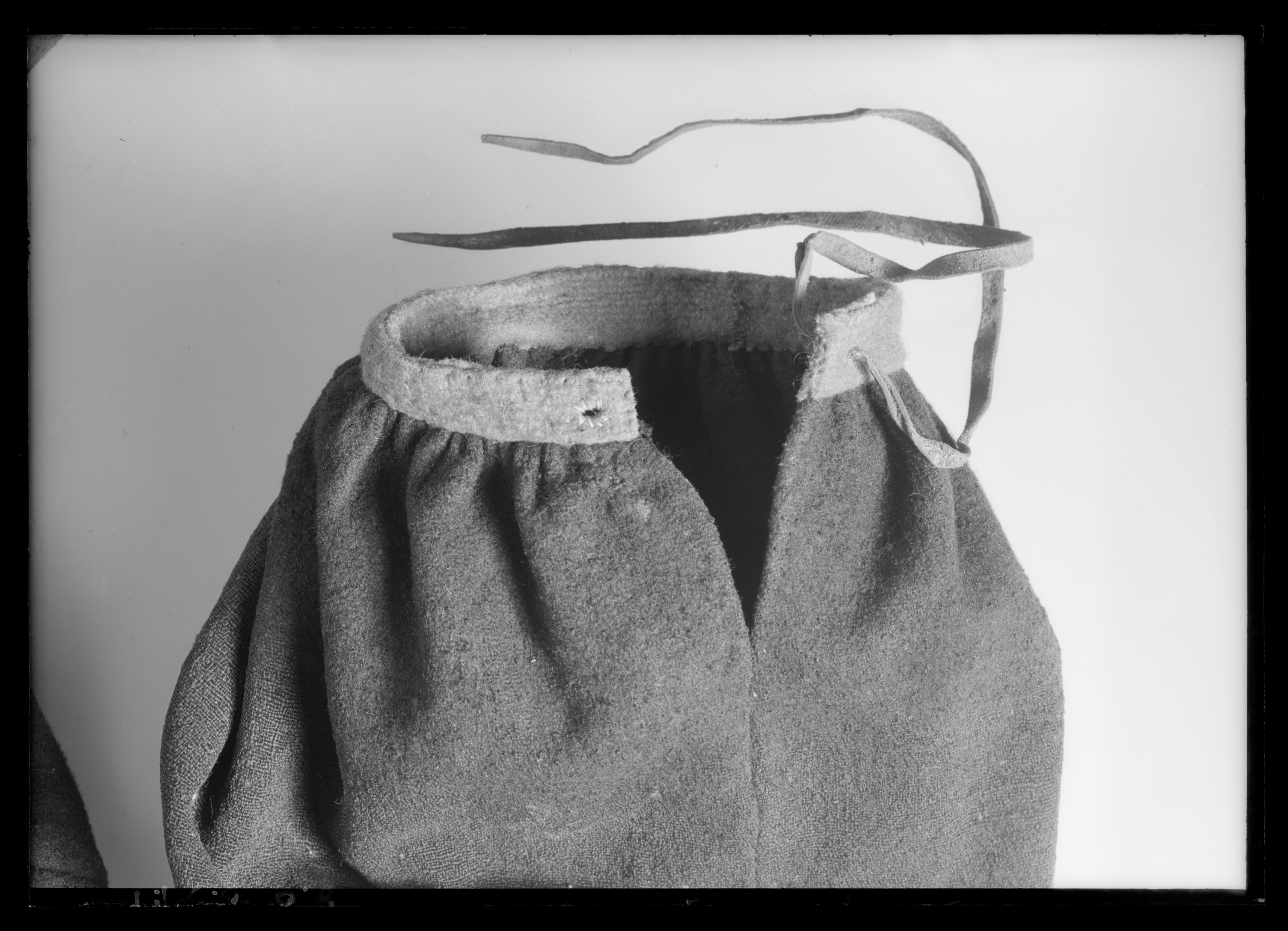 Knäbyxor av svart kläde med röda linningar. Byxorna har ett sprund mitt fram, l. 170 mm. Sprundet knäpps upptill med en snörning av ett fragmentariskt, vitt skinnband, genom två små snörhål. I byxsluten förekommer ett sprund, l. 125 mm som likaså snöras igen i nederkanten fast med ett brunt läderband. Byxorna syddes tillsammans med Morakarlens dräkt samt tre andra dräkter till det museum som inrättades på 1750-talet, i Ornässtugan där gustav Vasa övernattat. Dräkterna syddes av skräddare Erik Säterbeck. Dessa plagg fanns utställda i Ornässtugan fram till 1950-talet då de plockades ned för konservering i Livrustkammarens konserveringsateljé.