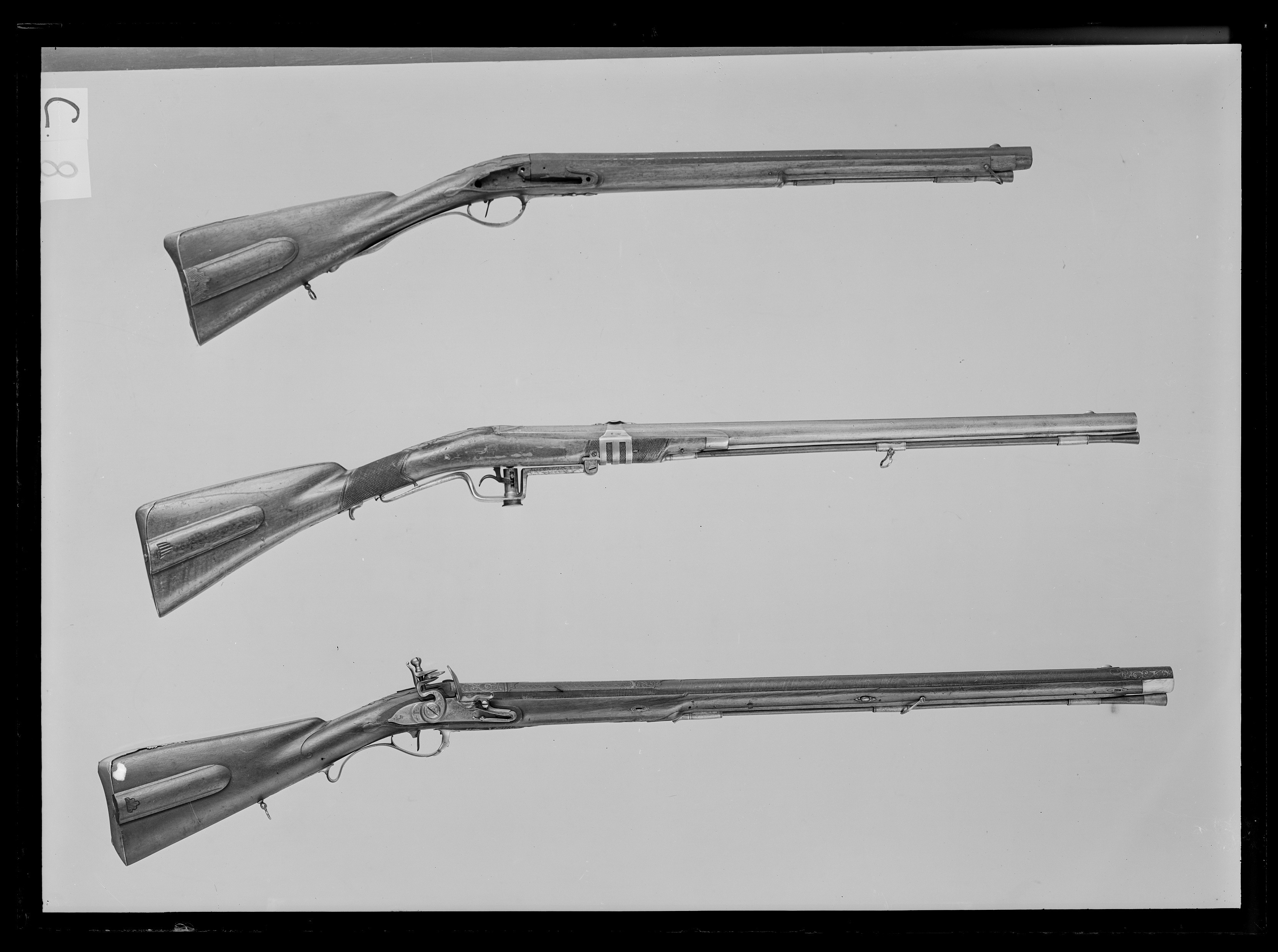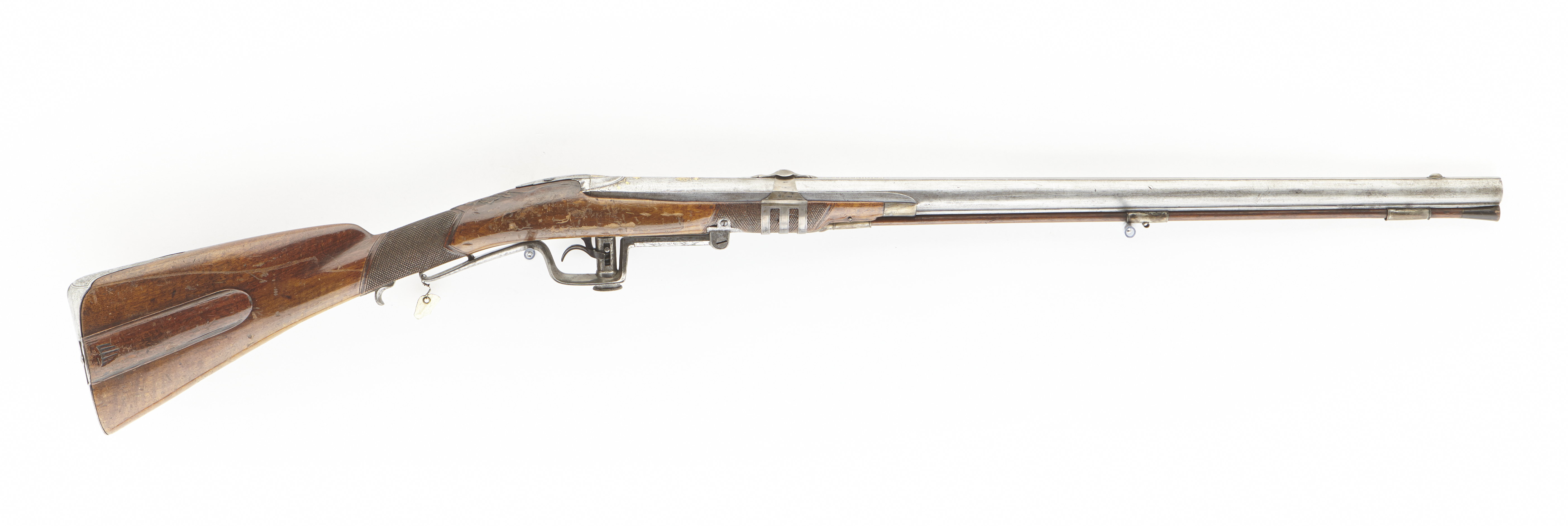 Bössa med flintlås, ändrat till slaglås med underhammarkonstruktion.