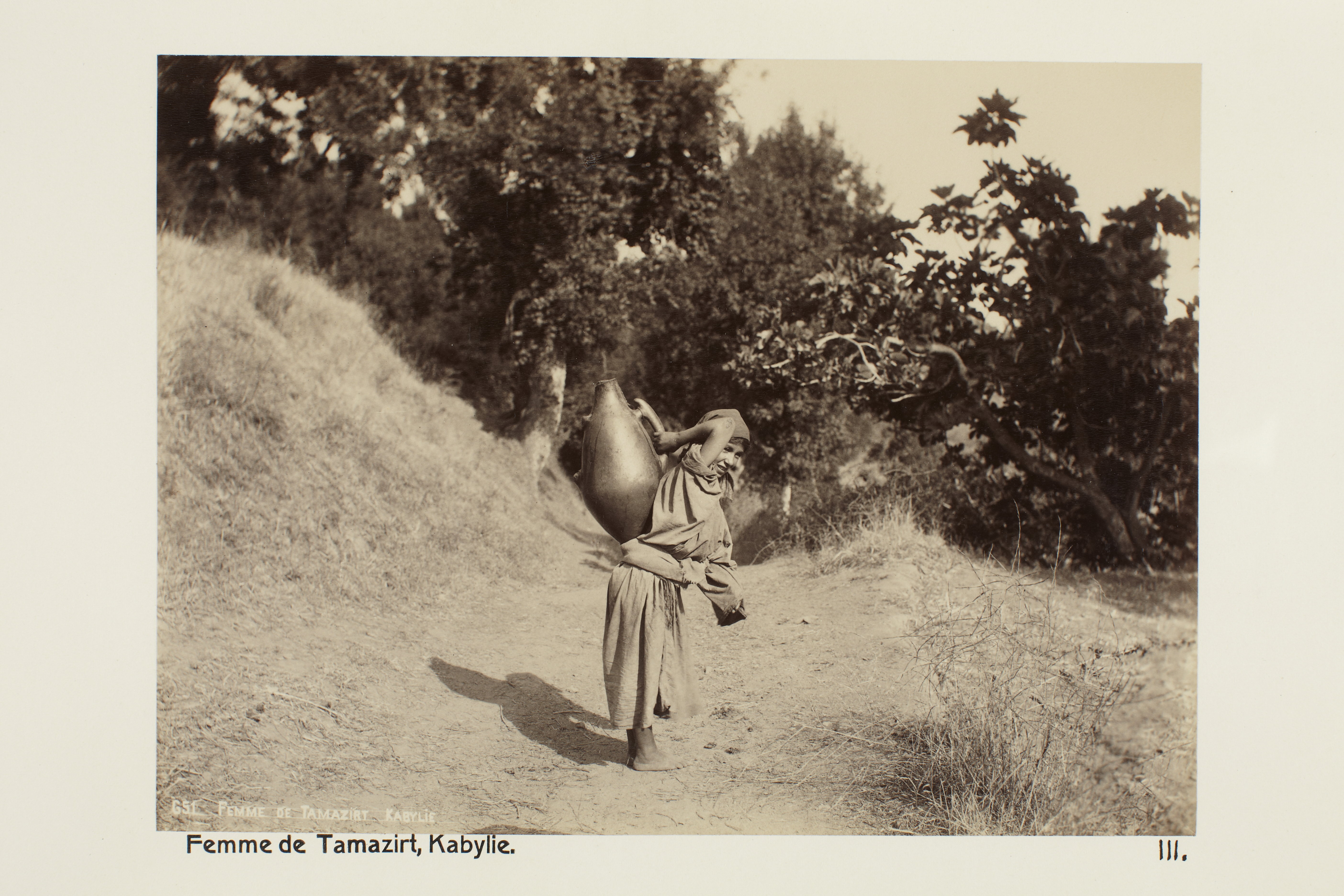 Kvinna från Tamazirt, Kabylien, Algeriet. Foto från resa genom Algeriet och Tunisien samt åter över Schweiz, 11 februari - 19 maj 1889. Samtliga foton i gruppen LXVI:F. är inköpta av Wilhelmina von Hallwyl i Alger, Biskra, Tunis, Constantine, Oran och Blidah vid hennes vistelse i nämnda städer tillsammans med sin make, Walther von Hallwyl, sin mor, Johanna Kempe, f. Wallis, dottern Irma samt fröknarna Caroline Pflaum och Ida Uhse. Uppgifterna kommer från fröken Ida Uhses reseanteckningar.