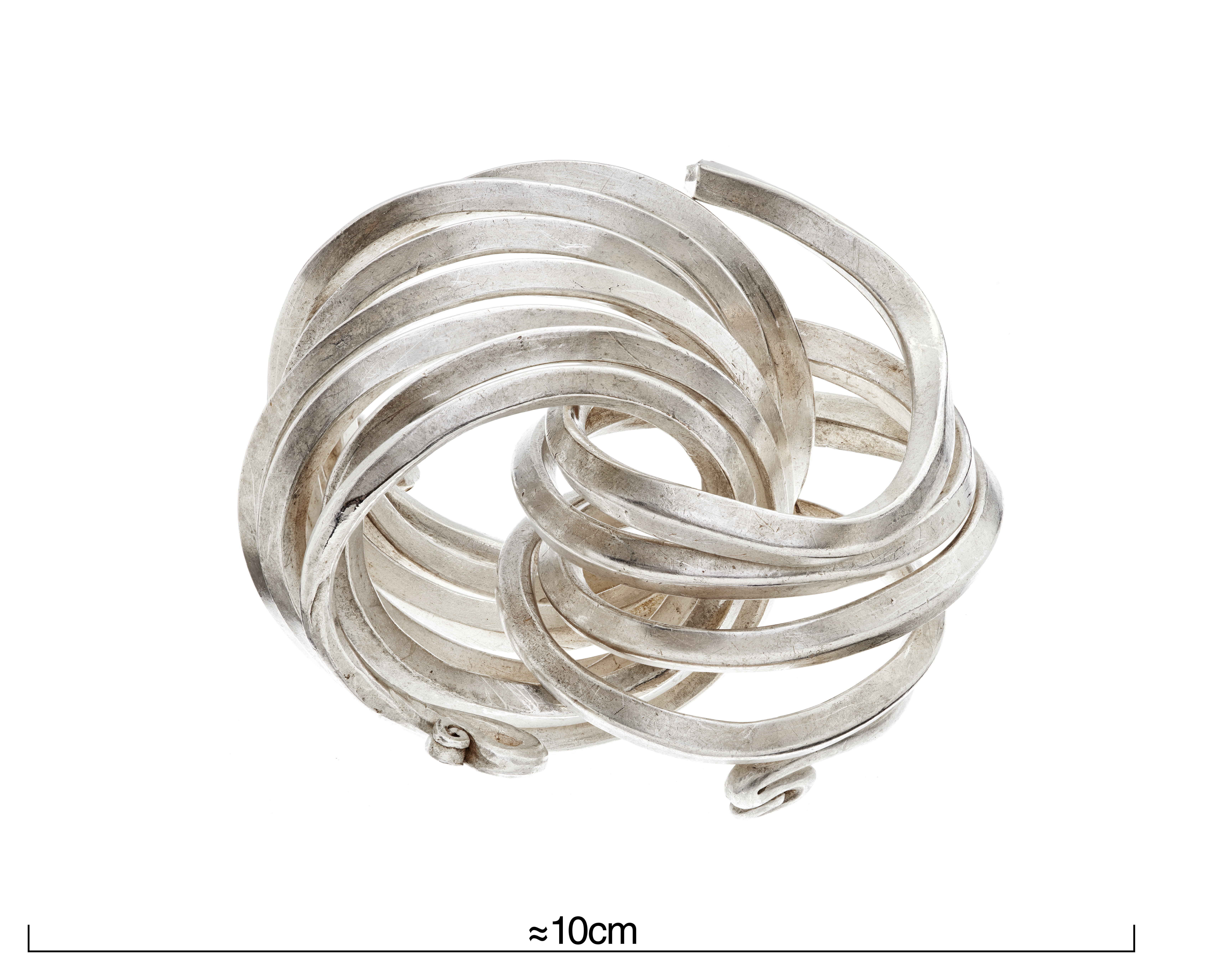 Ihopvirade spiraler av silver