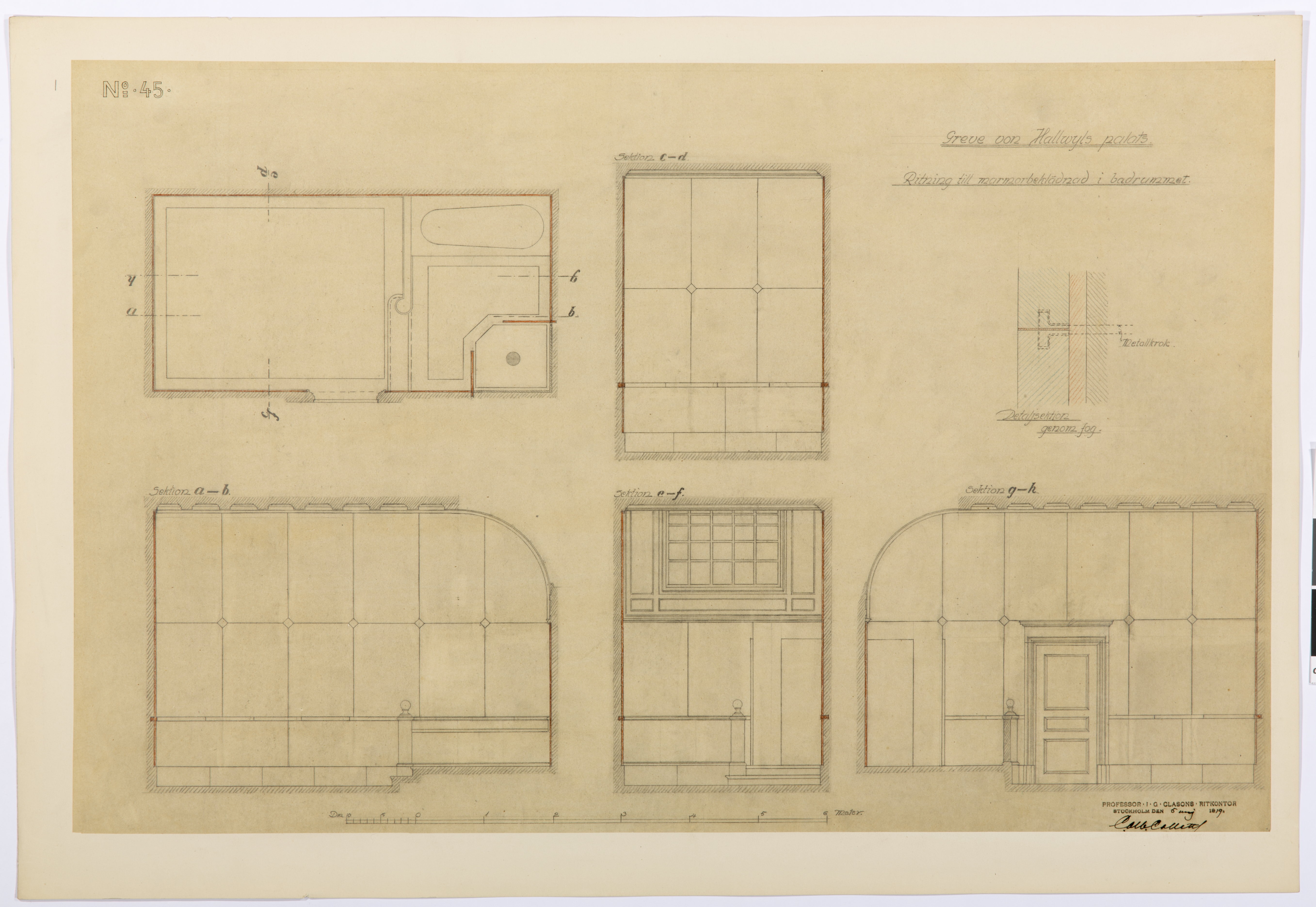 Ritning till marmorbeklädnad i badrummet. 5 maj 1919.