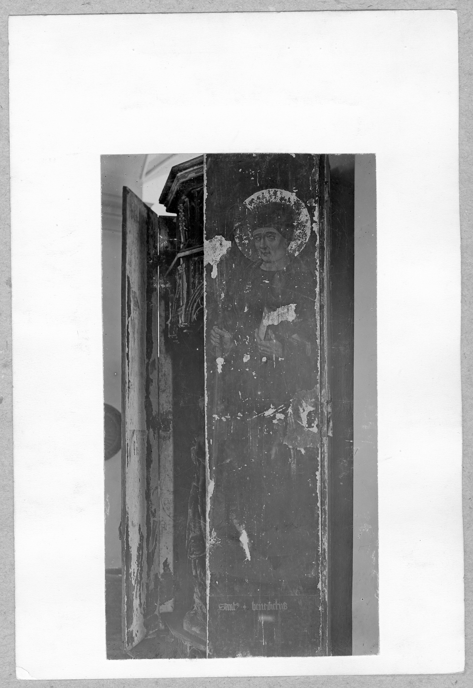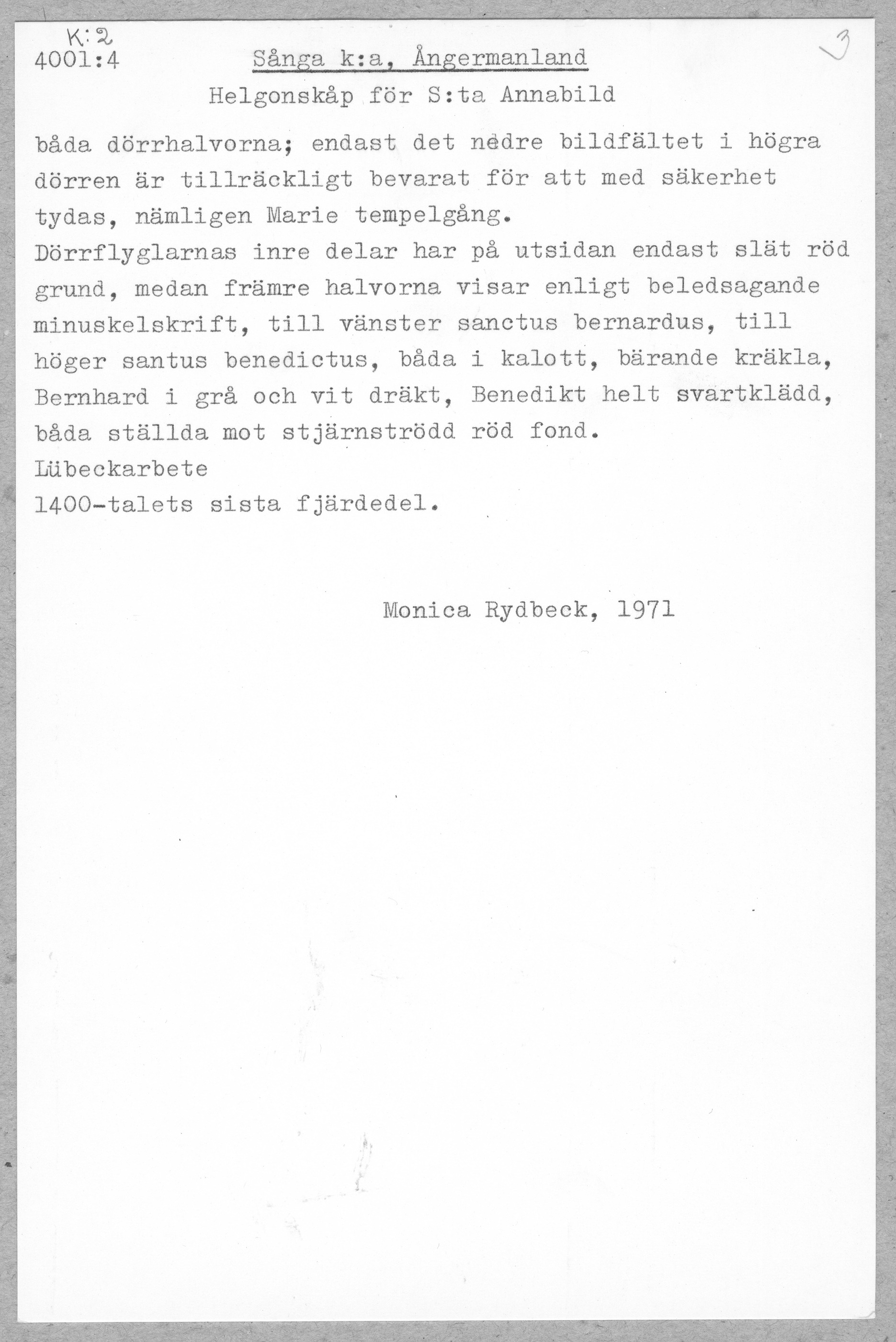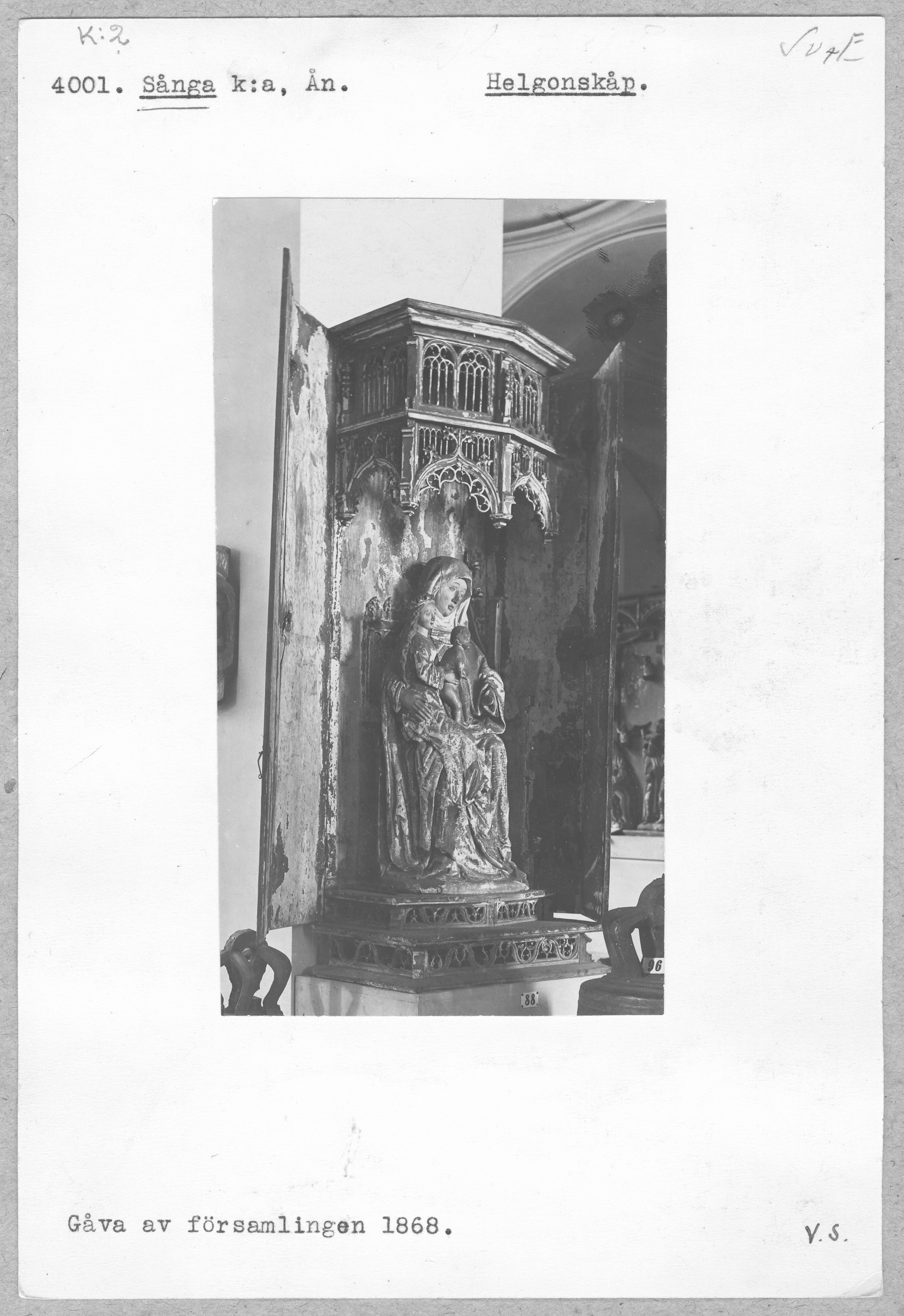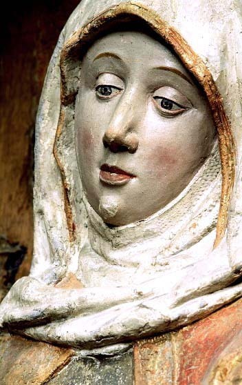 Kondition: barnets båda underarmar och Annas vänstra hand bortbrutna, Marias krona fragmentarisk. Färg: betydande partier bevarade men något nötta.