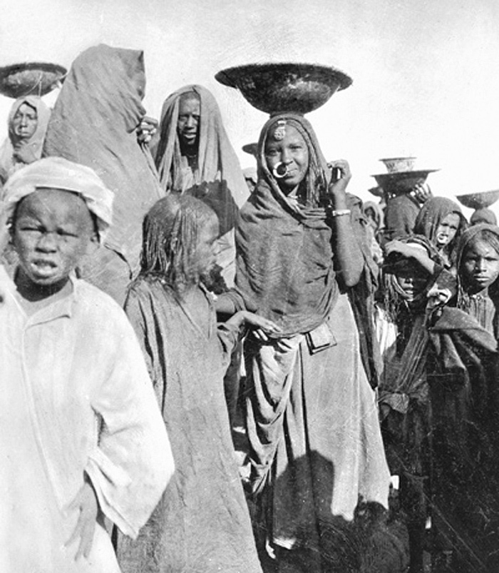 Invånare i Dakka (Dakke), Egypten. Text på fotografiet: Habitants de Dakke. Fotografierna LXVI:M.01.- 201. kommer från resan till Egypten och Sudan som Wilhelmina och Walther von Hallwyl gjorde vintern 1900-1901. De lämnade Sverige den 5 november 1900 och fortsatte från Egypten till Palestina den 28 mars 1901. Med på resan var döttrarna Ellen med maken Henric de Maré och Irma med maken Wilhelm von Geijer. Wilhelminas sällskapsdam, fröken Ida Uhse reste också med. Under en del av resan anslöt sig ledamoten av Internationella domstolen i Kairo, assessorn Otto Conrad Waldemar Cedercrantz med makan Anna Elisabeth. Vid resan uppför Nilen hade Walther von Hallwyl hyrt ångfartyget Columbia med besättning. Båtresan startade i Kairo 27 december 1900, gick ända till Wadi Halfa varifrån man reste vidare med tåg till Khartum och tillbaka till Wadi Halfa. Båten vände åter i riktning mot Kairo, men det verkar som att sällskapet tog tåg sista biten, från Luxor. Henric och Ellen de Maré samt fru Cedercrantz lämnade båten redan då de passerade Luxor första gången. Resten av sällskapet återvände till Kairo den 1 mars. Fotografierna LXVI:M.01.-120. togs av resenärerna själva, de största av Ellen de Maré, de mellersta av Wilhelmina von Hallwyl och de minsta av Wilhelm von Geijer. Resten köptes av professionella fotografer i Kairo, de flesta från Studio Photogr. Artistique G. Lekegian & Cie. Alla uppgifter kommer från Ida Uhses reseanteckningar.