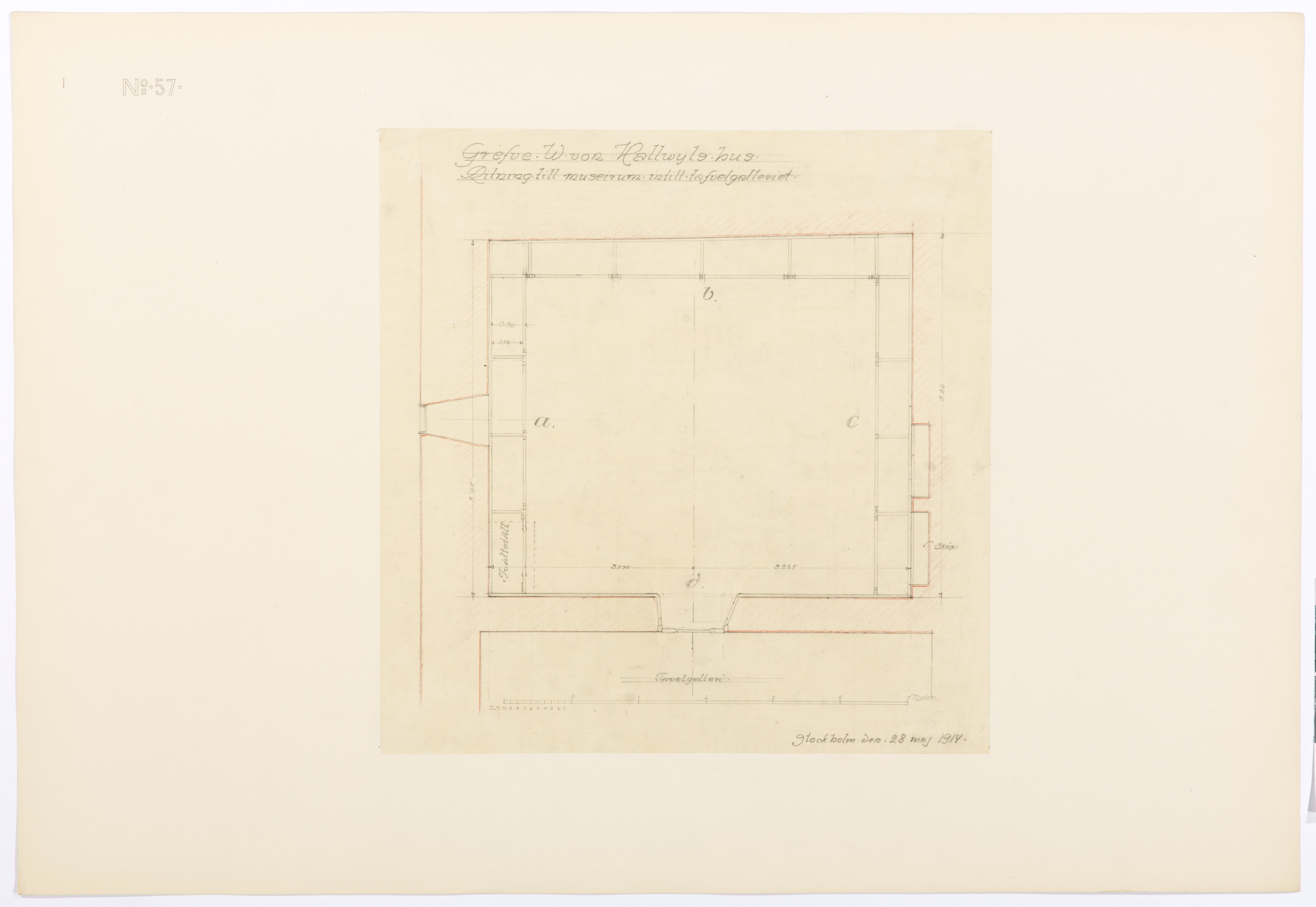 nr 57. Ritning till museirum intill tafvelgalleriet. Stockholm den 28 maj 1914