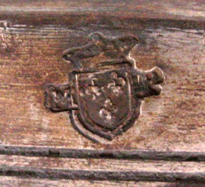 stämpel: M P, samt krönt sköld med tre franska liljor