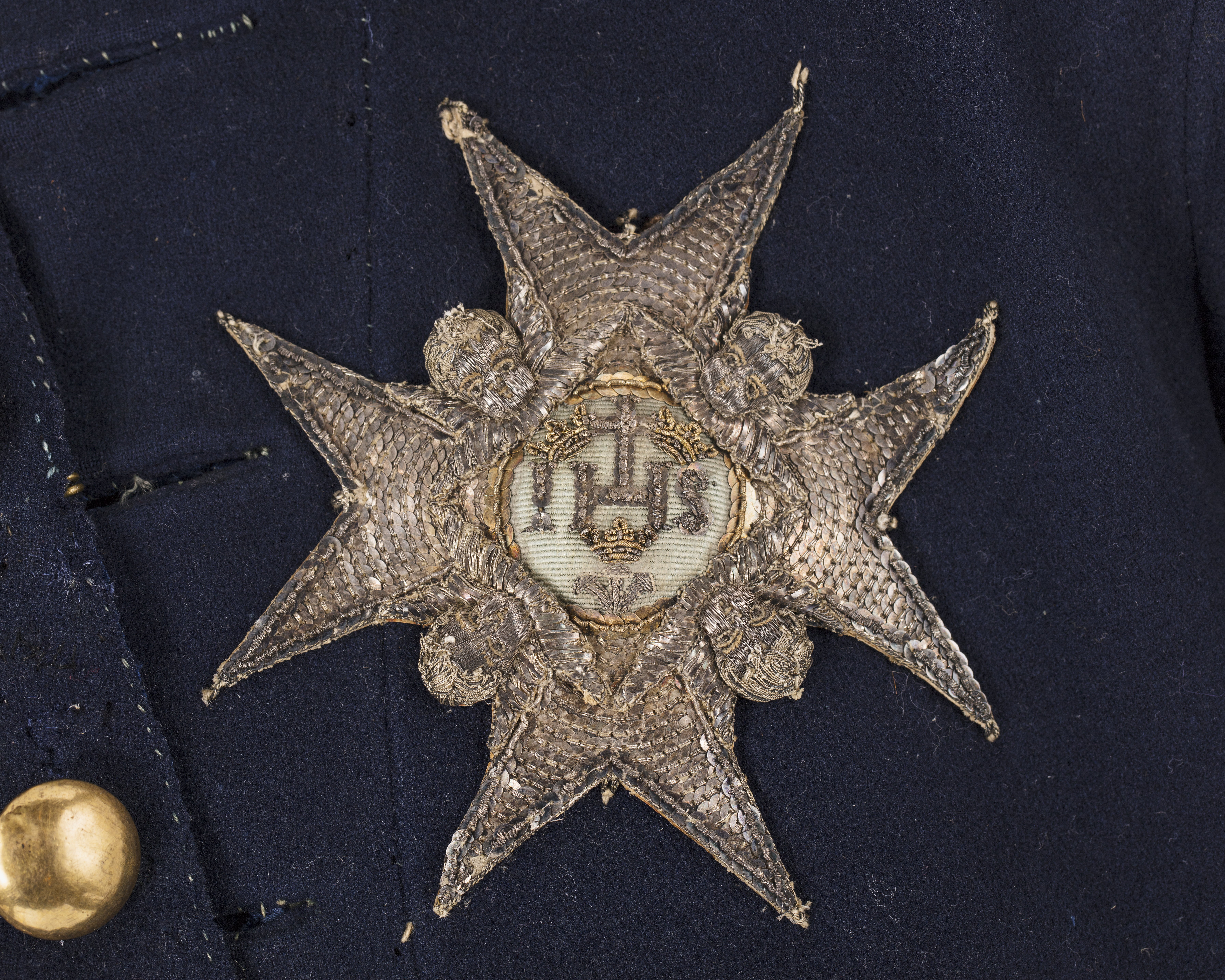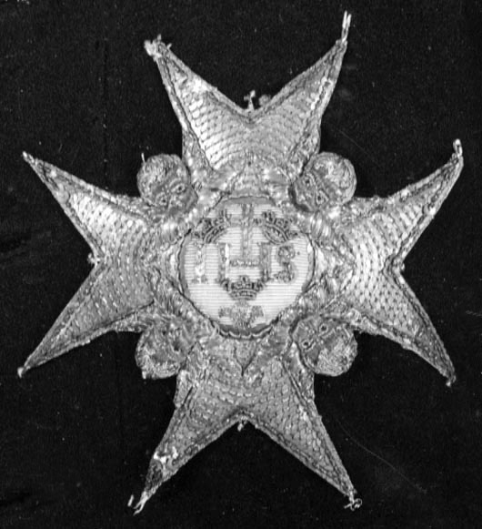 Kraschan, Serafimerorden, fäst på Gustav III:s drabantkårsuniforms jacka.