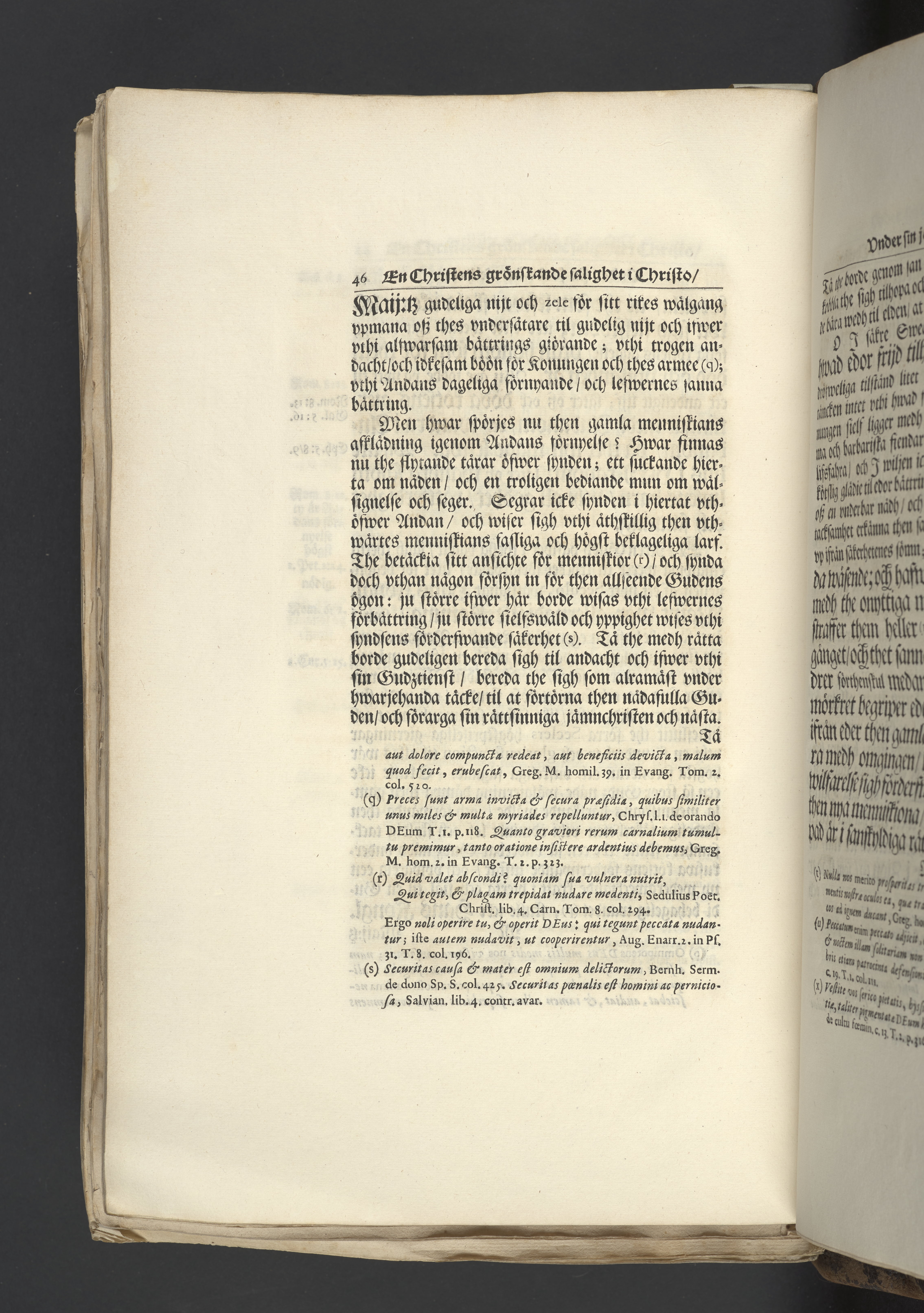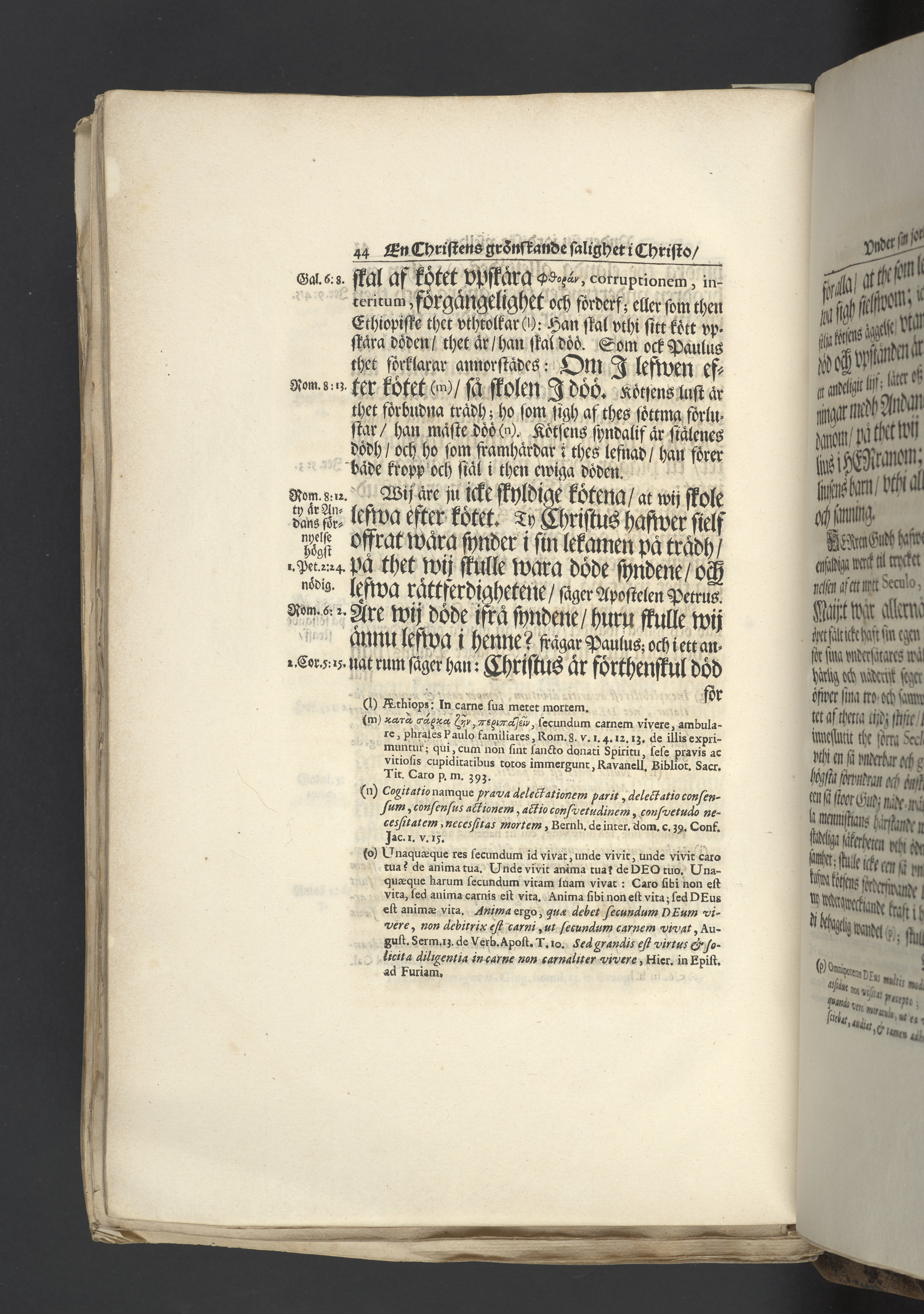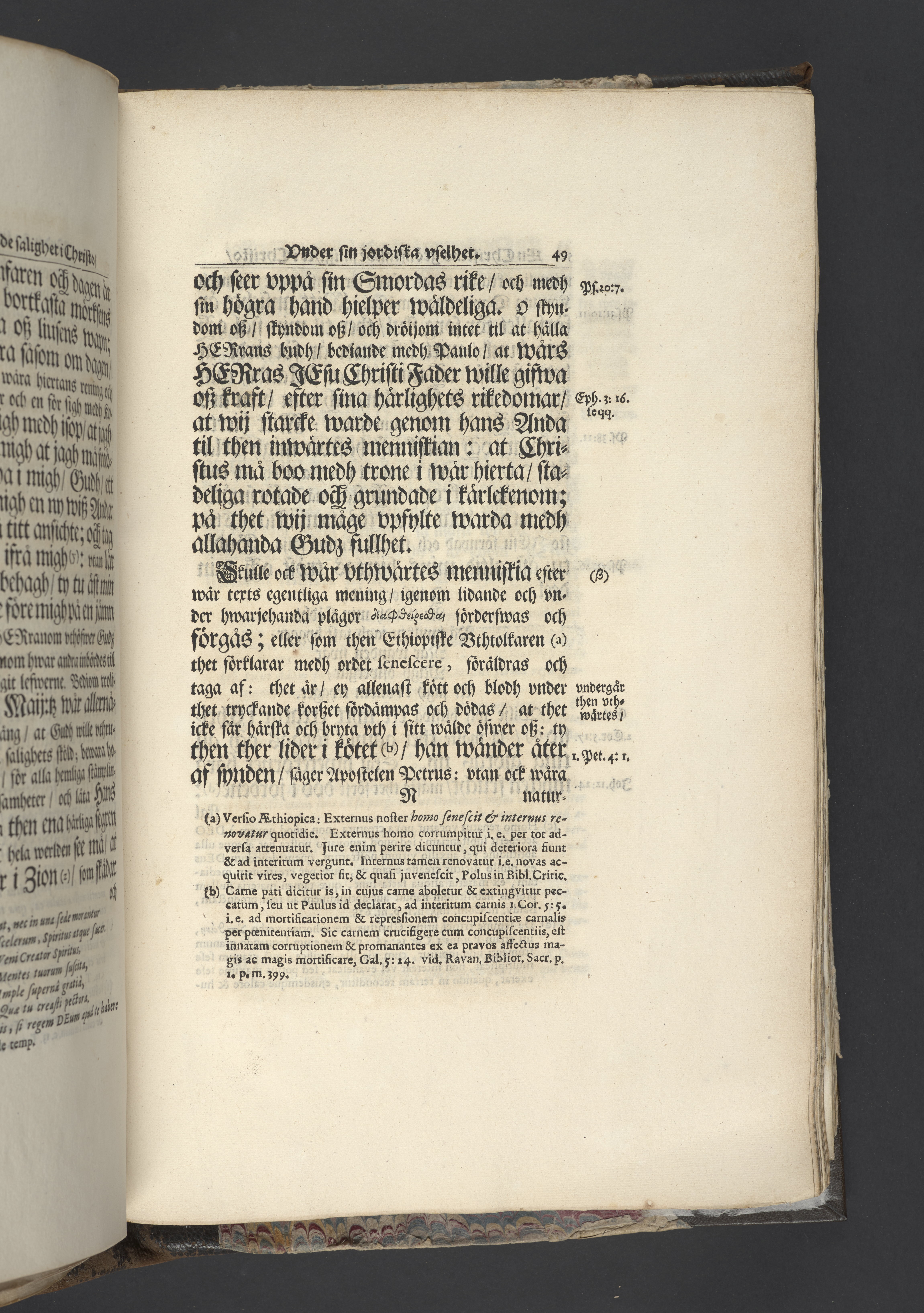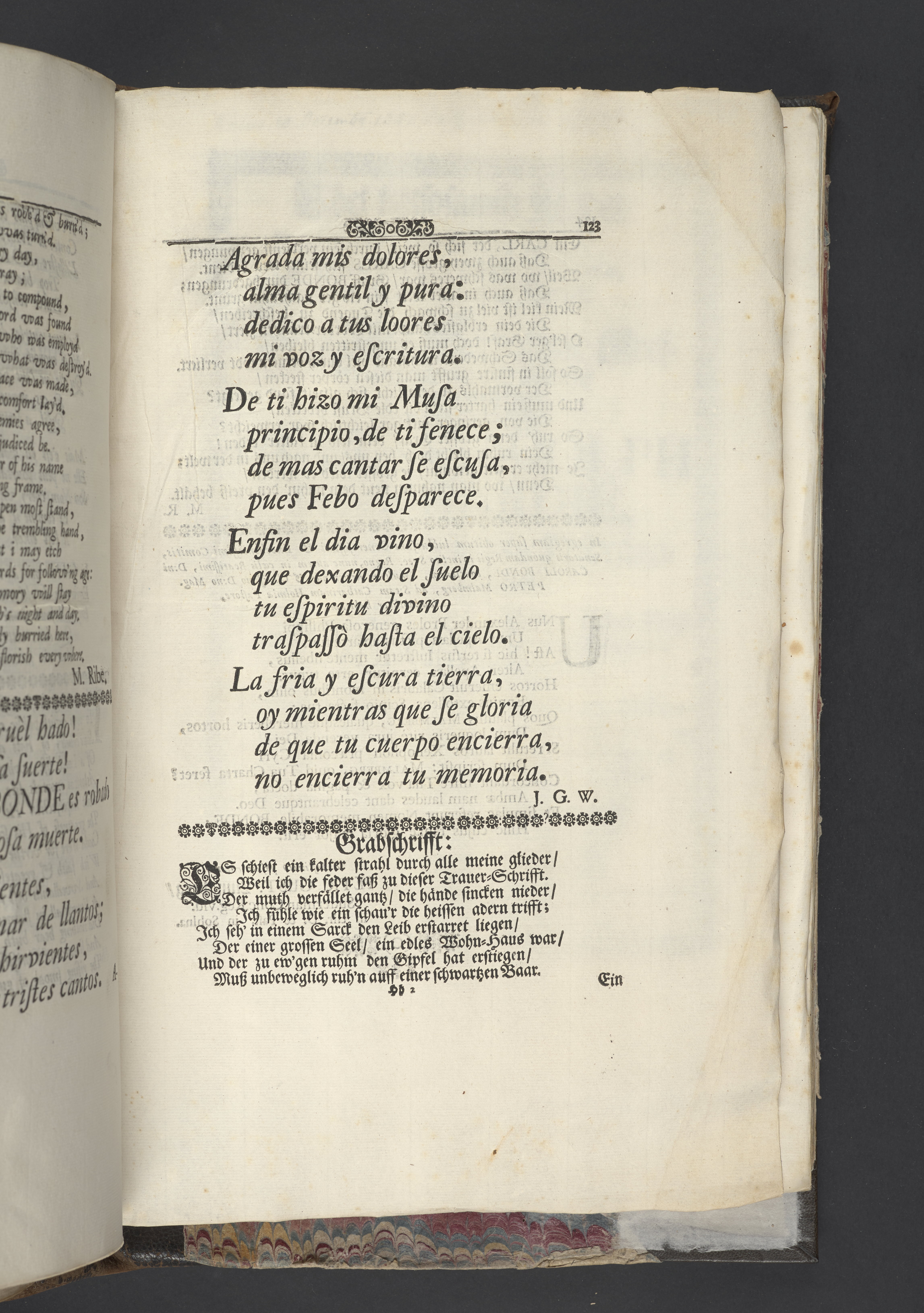 Band m. pärmar av marmorerat papper, rygg och hörn av pergament. Pärmfyllnad: trä.