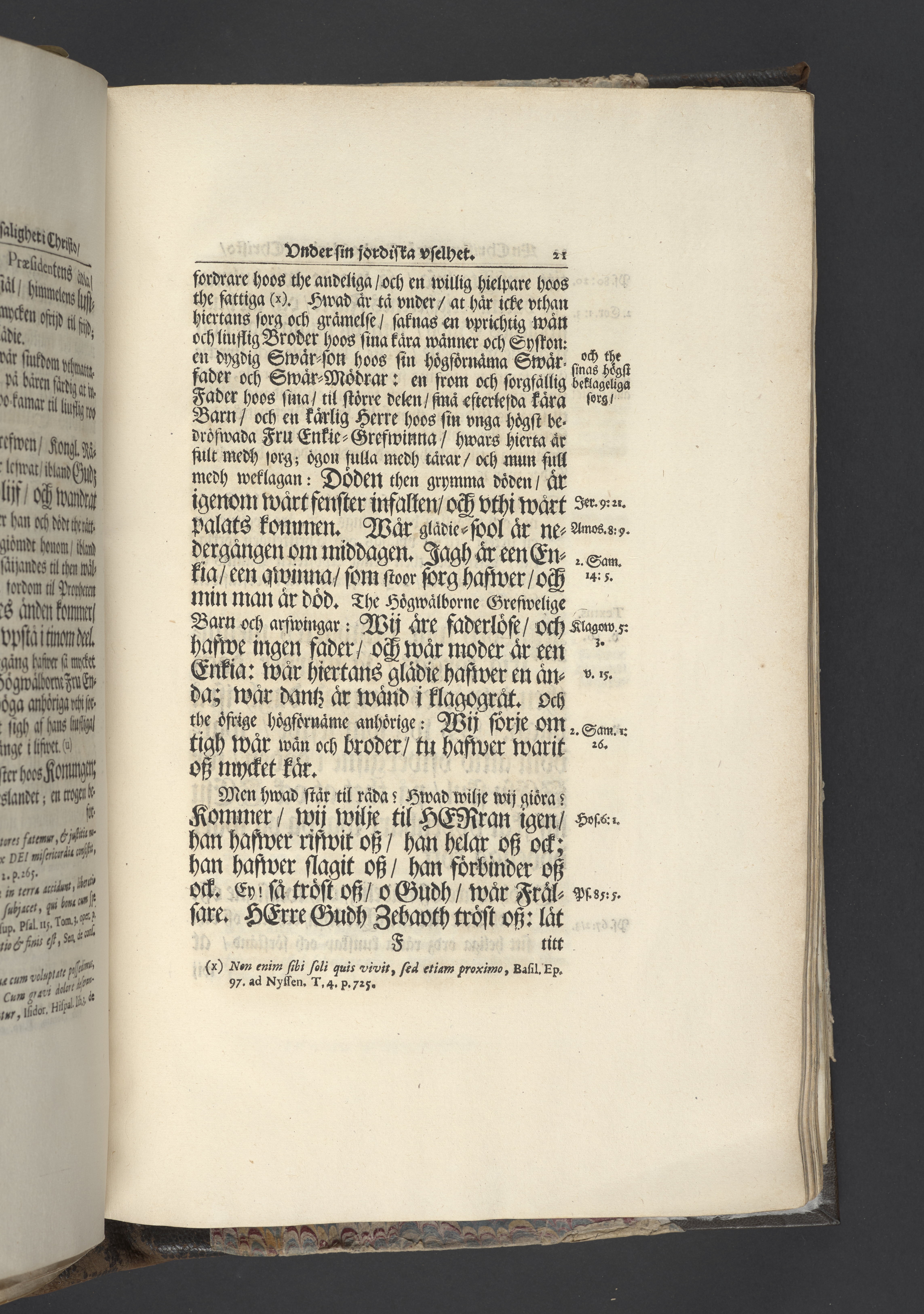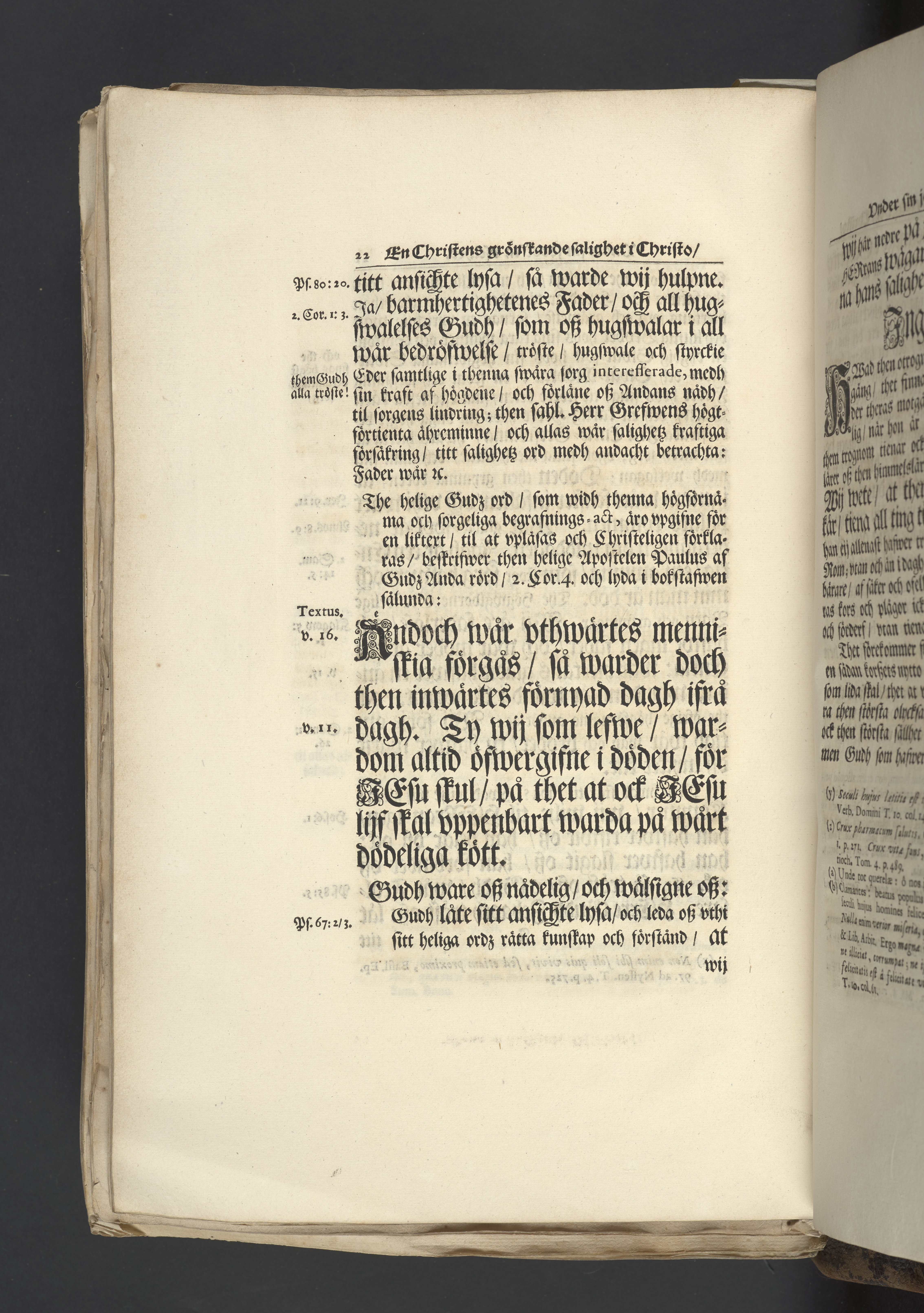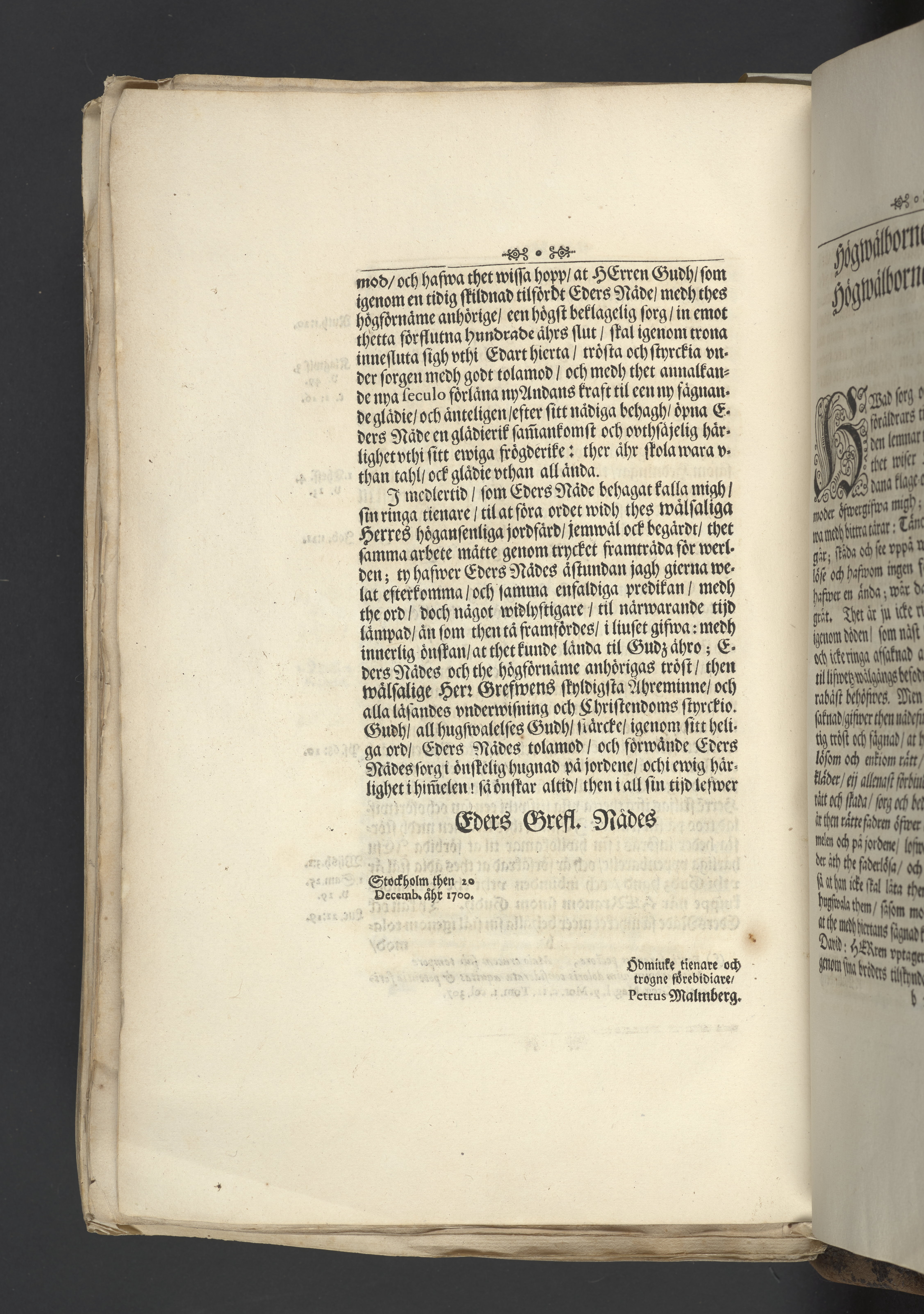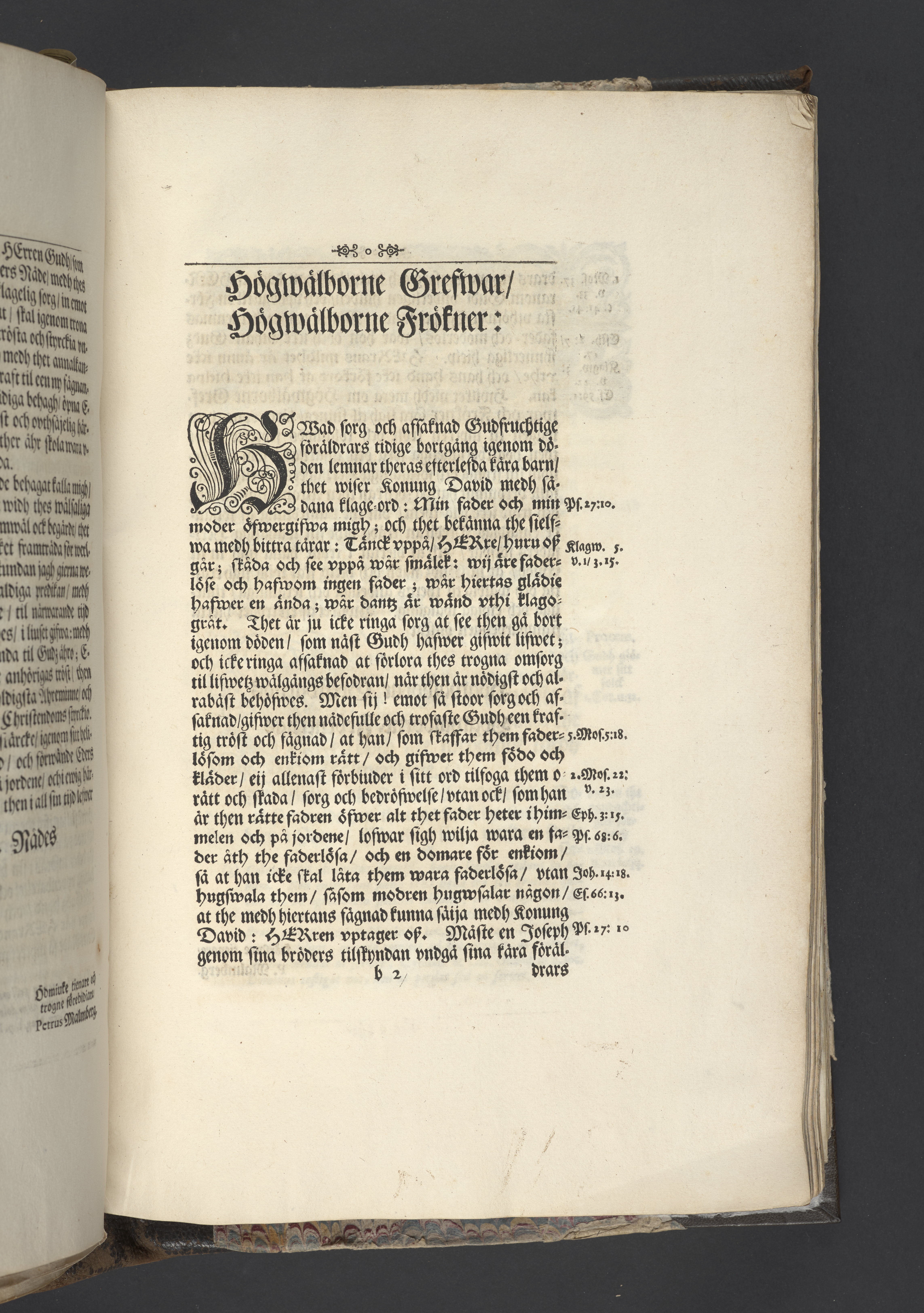En rätt christens grönskande salighet i Christo, vnder sin jordiska vselhet: förestäld vthi een christelig lijk-predikan öfwer hans kongl. maij:tz wår allernådigste konungs och herres högtbetrodde man, rådh och præsident vthi then kongl. lifländska hoff-rätten i Dorpt, samt extraordinarie ambassadeur til Ängeland och Holland; så ock plenipotentiarius widh fridz-tractaterne i Riszwik ... nu mera hoos Gudh salige, herre och grefwe, gr. Carl Bonde ... tå thes salige lekamen : medh wederbörlig solennitet och prydno, närwarande hans kongl. maij:tz alles wår nådigste konungs och herres höga ämbetzmän och rådh, ministrer, samt andre högre och lägre ståndz personer, til ett stort och mycket anseenligit antahl, wardt begrafwen, vthi kongl. residentz staden Stockholm, och Ridderholms kyrkio, then 17. iunii, åhr efter Christi börd MDCC, af Petro Malmberg ... Stockholm, tryckt vthi sal. Henrich Keysers tryckerij.