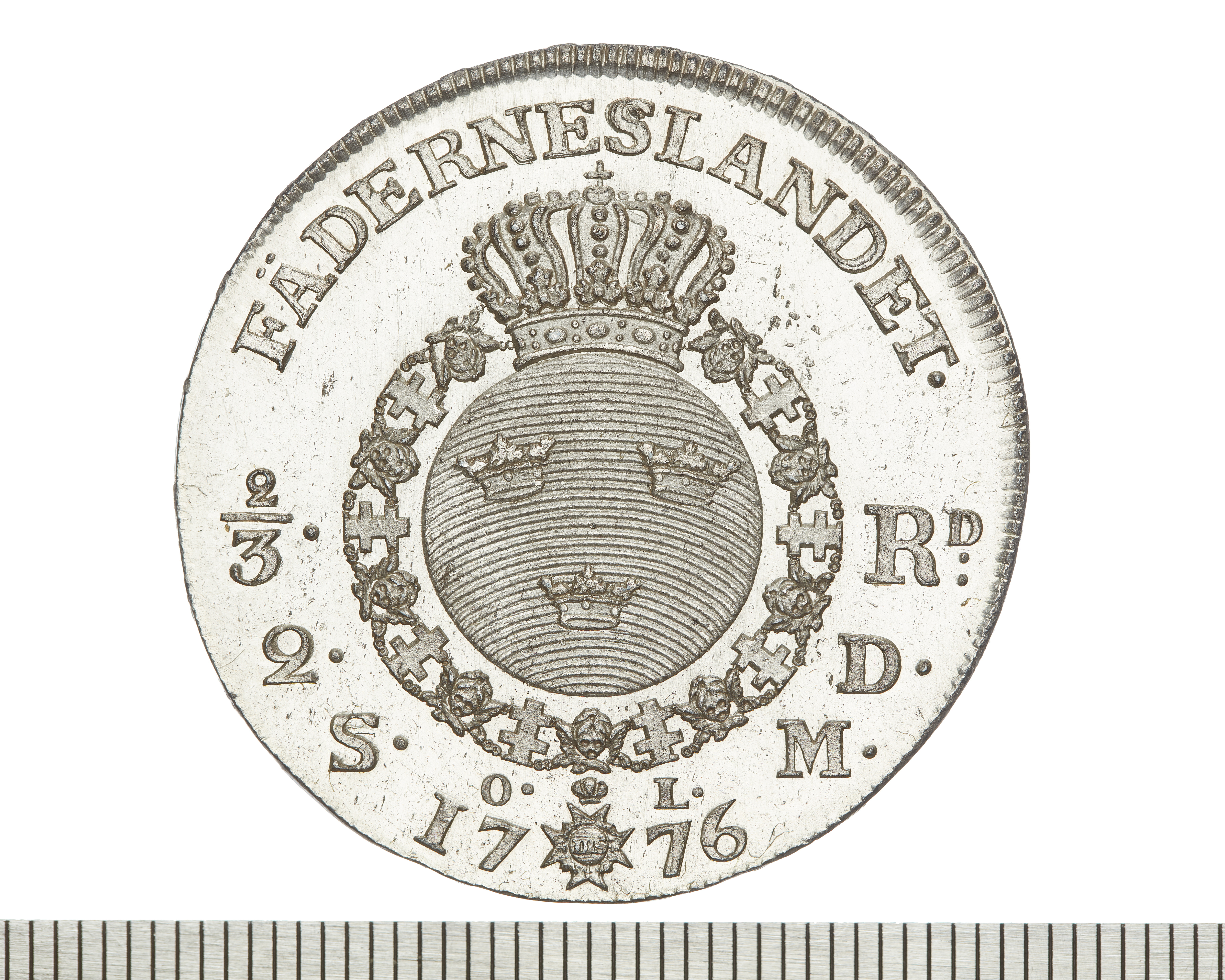 Upphov: Gustav III av Sverige. Media: Bonnevier, Helena. Ekonomiska museet - Kungliga myntkabinettet/SHM, (CC BY 4.0) Du får bearbeta och dela verket för alla ändamål, även kommersiella, så länge du anger upphovsperson och licensgivare.