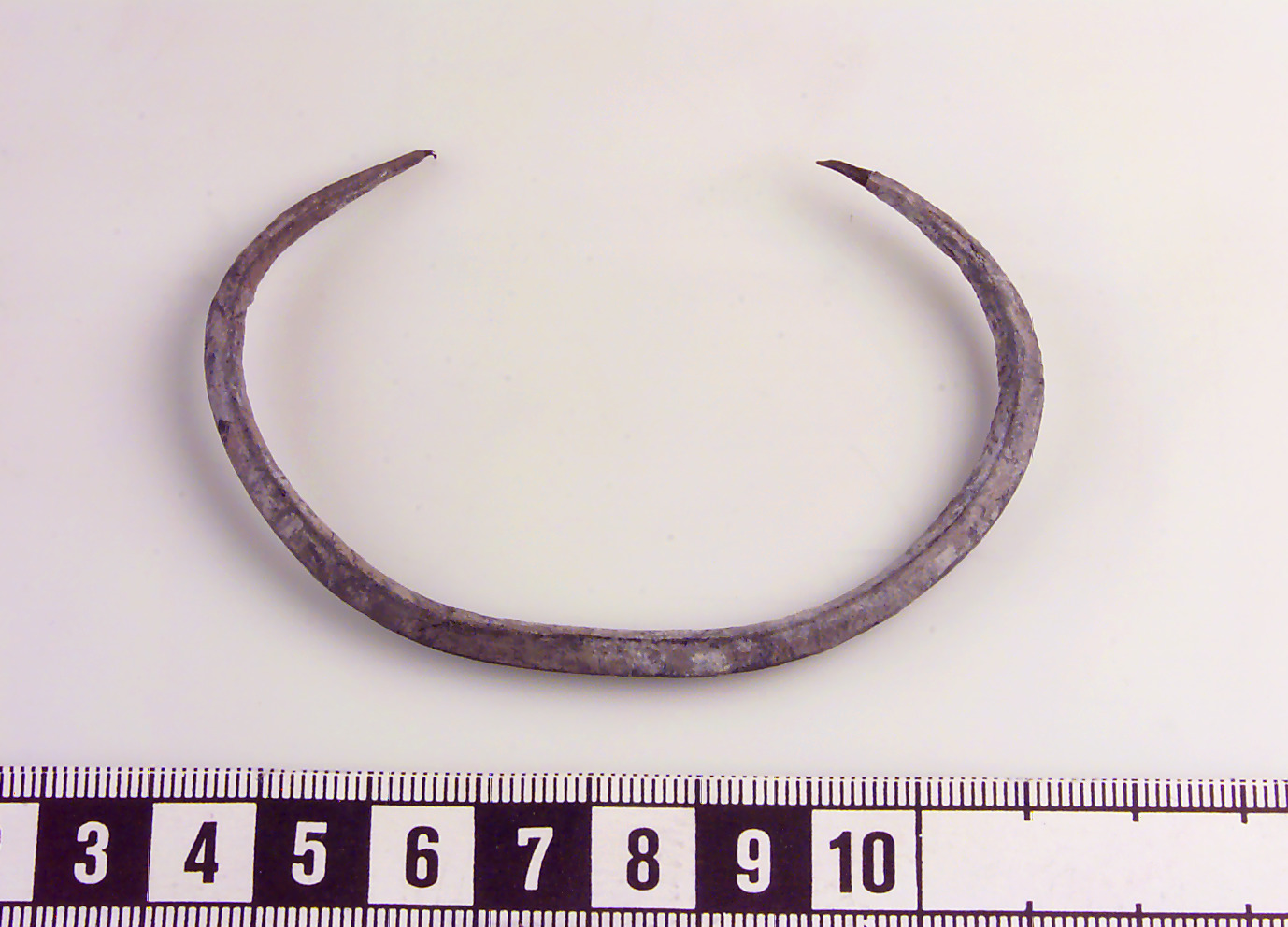 Av tunn, fyrsidig ten med spetsiga ändar. Något skadat ytskikt. Slät.