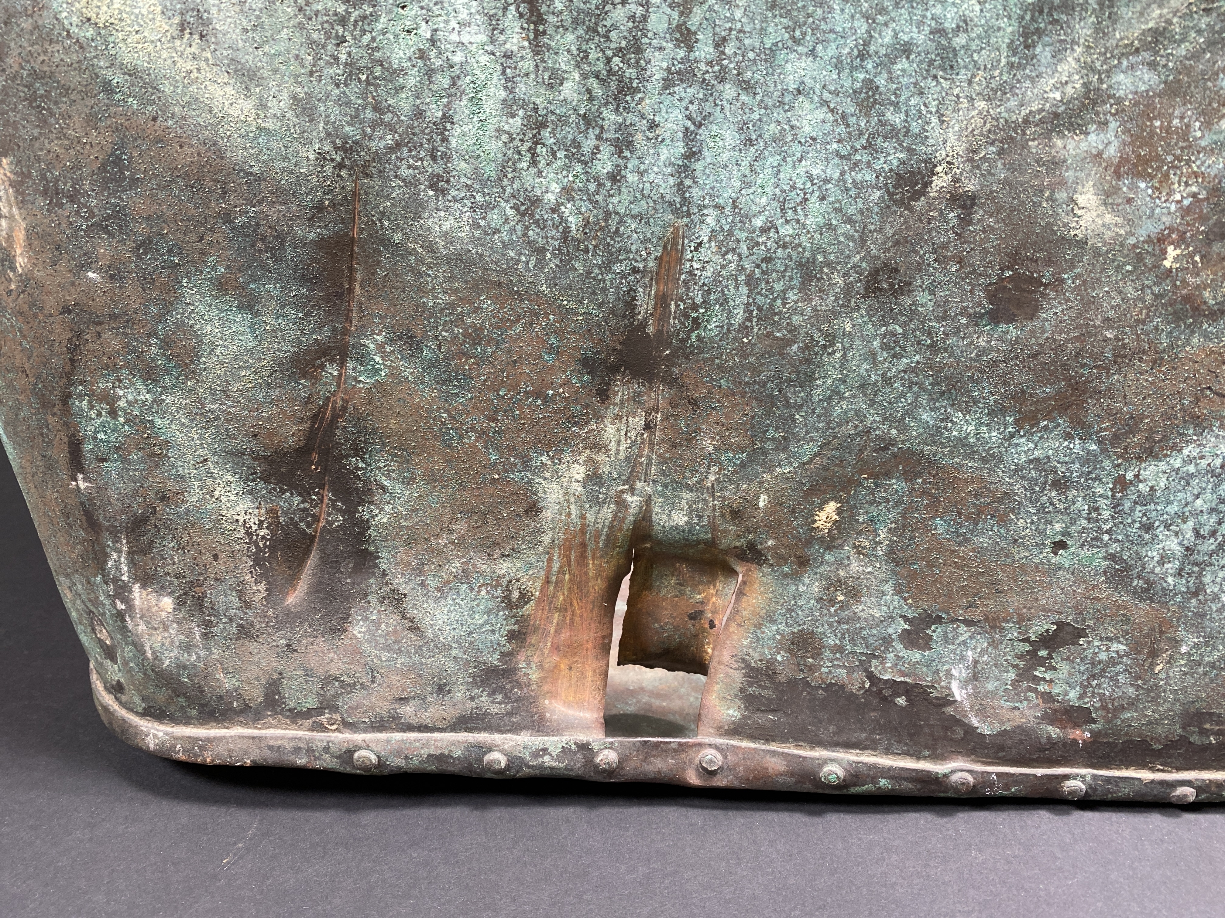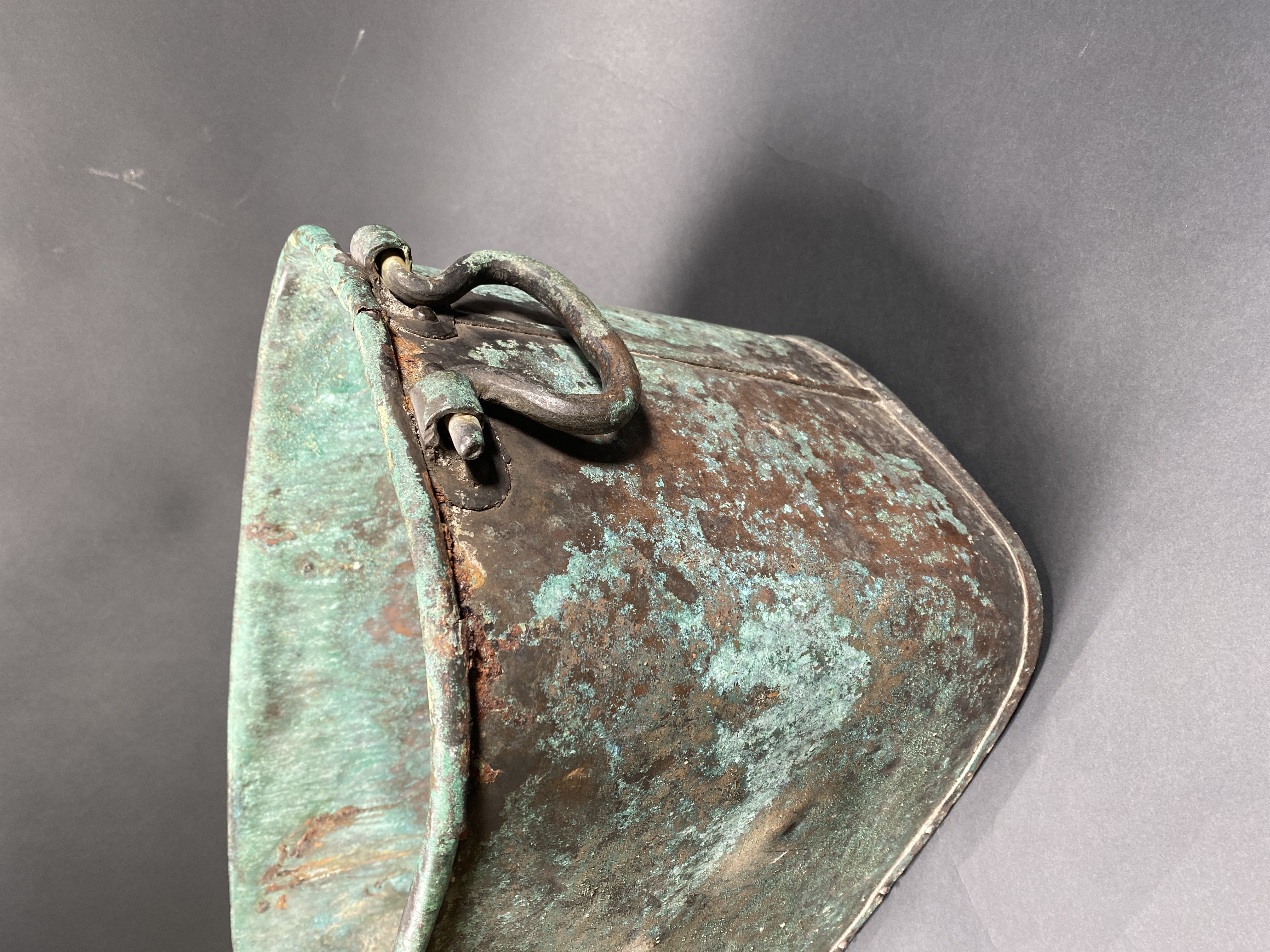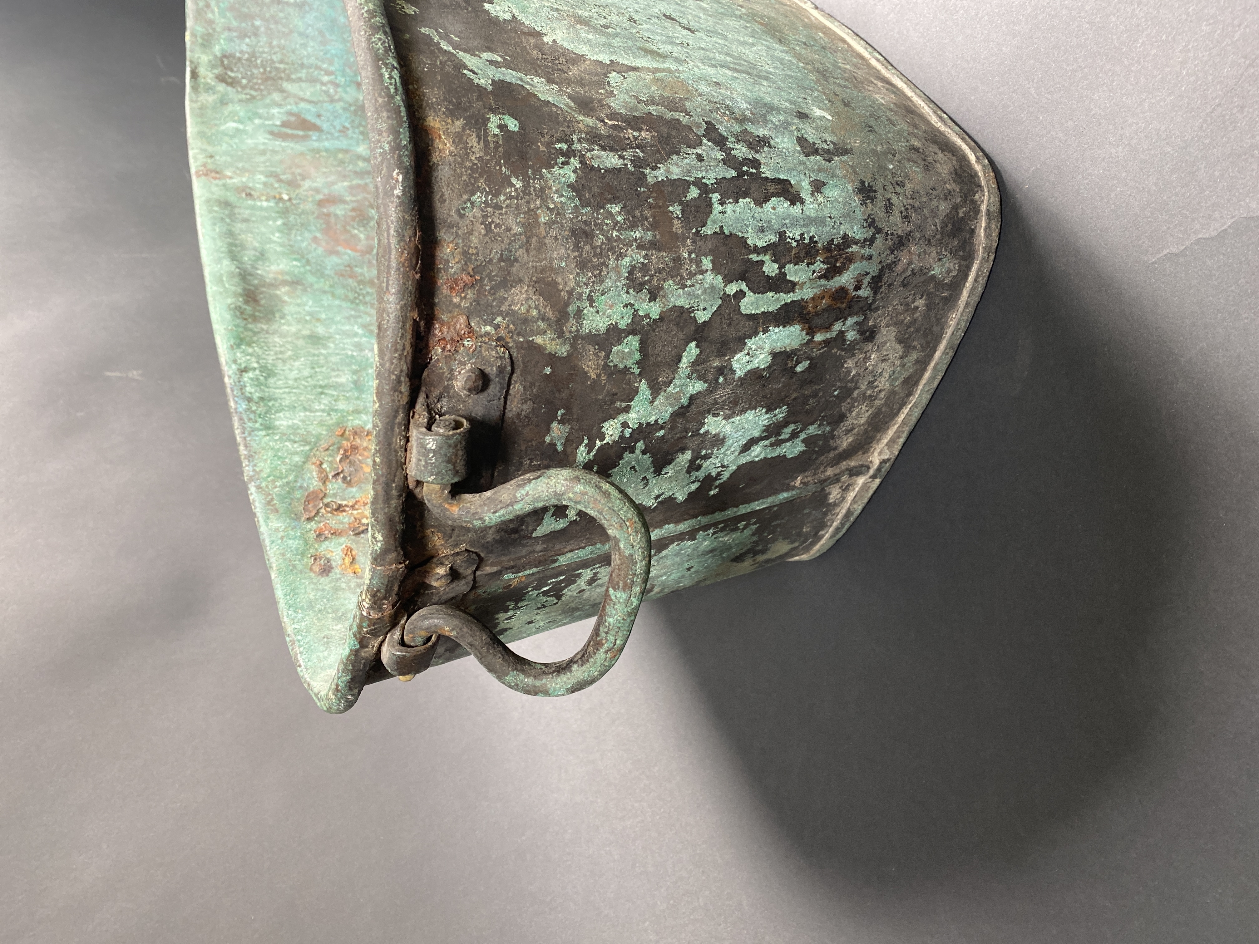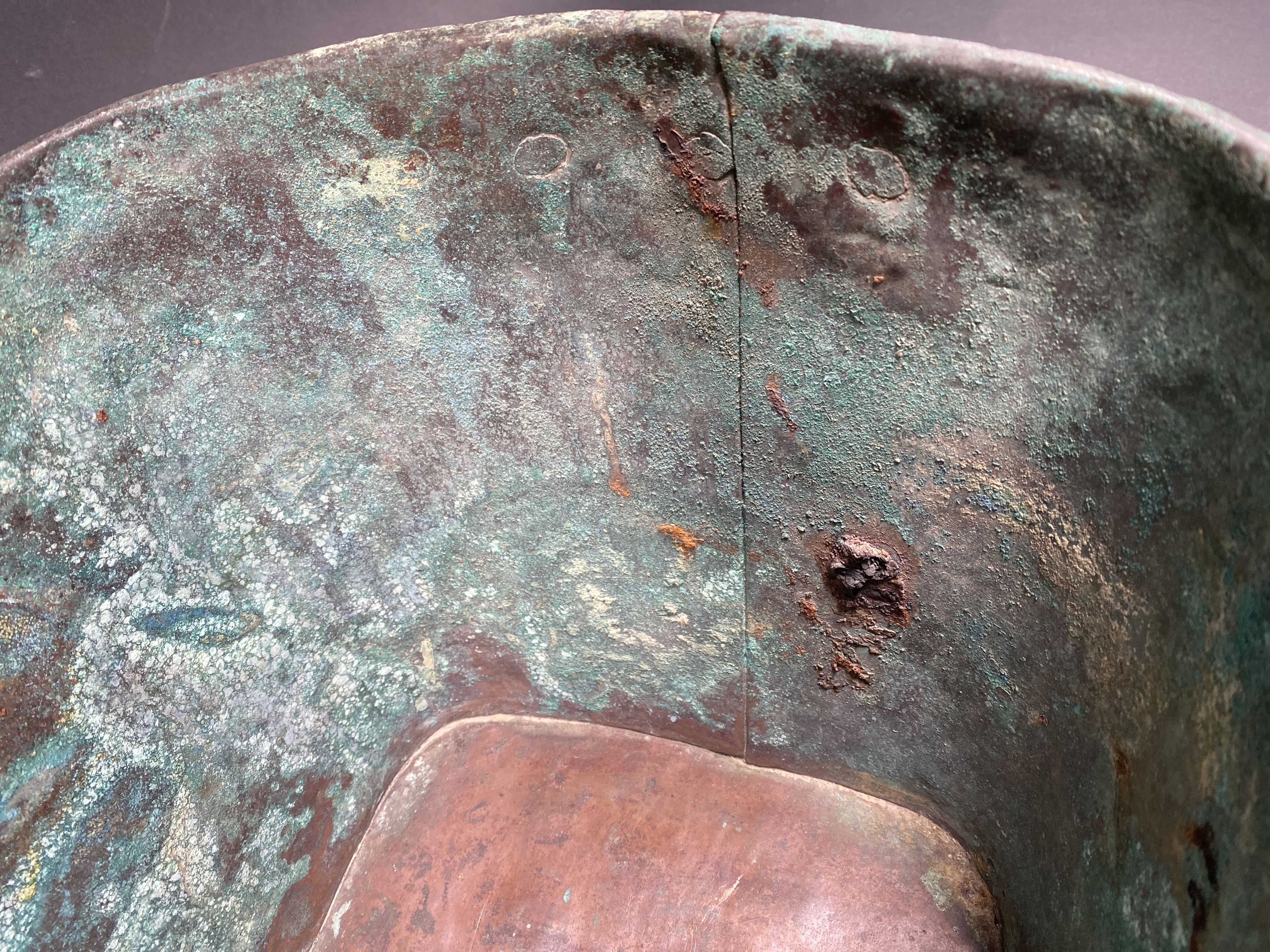 Avlång kittel, fyrkantig form med rundade hörn och en koppargrepar vid vardera kortsida.