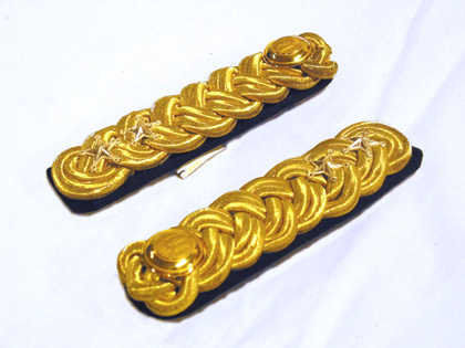 Axelklaff m: 1899, med överstelöjtnants grad, Västerbottens regemente. Mässingshake på insidan med firmanamn: "MEA".