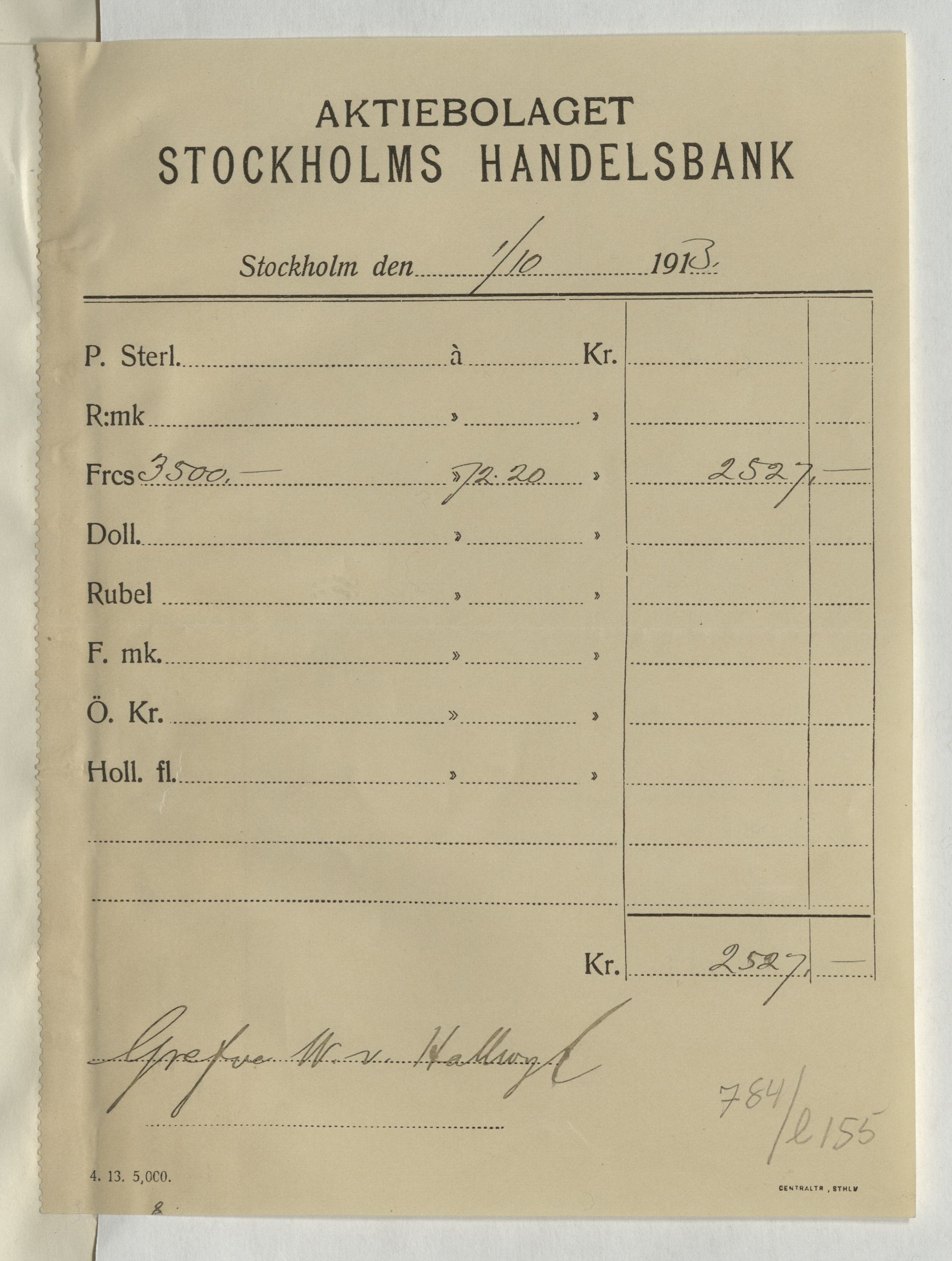Upphov: Stockholms Handelsbank AB. Media: Statens historiska museer. Hallwylska museet/SHM, (PDM) Upphovsrätten till detta verk har gått ut och är därmed fritt att använda på alla sätt. Ange gärna upphovsperson om denne är känd.