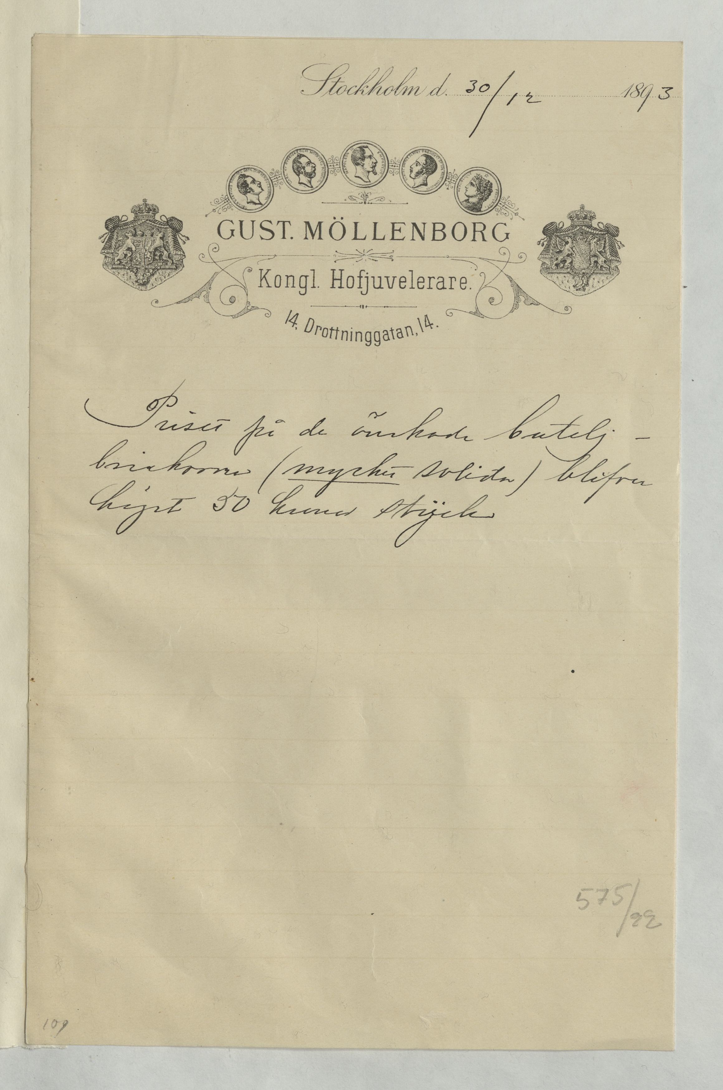 Kvitto från Gustaf Möllenborg, Juvelerare