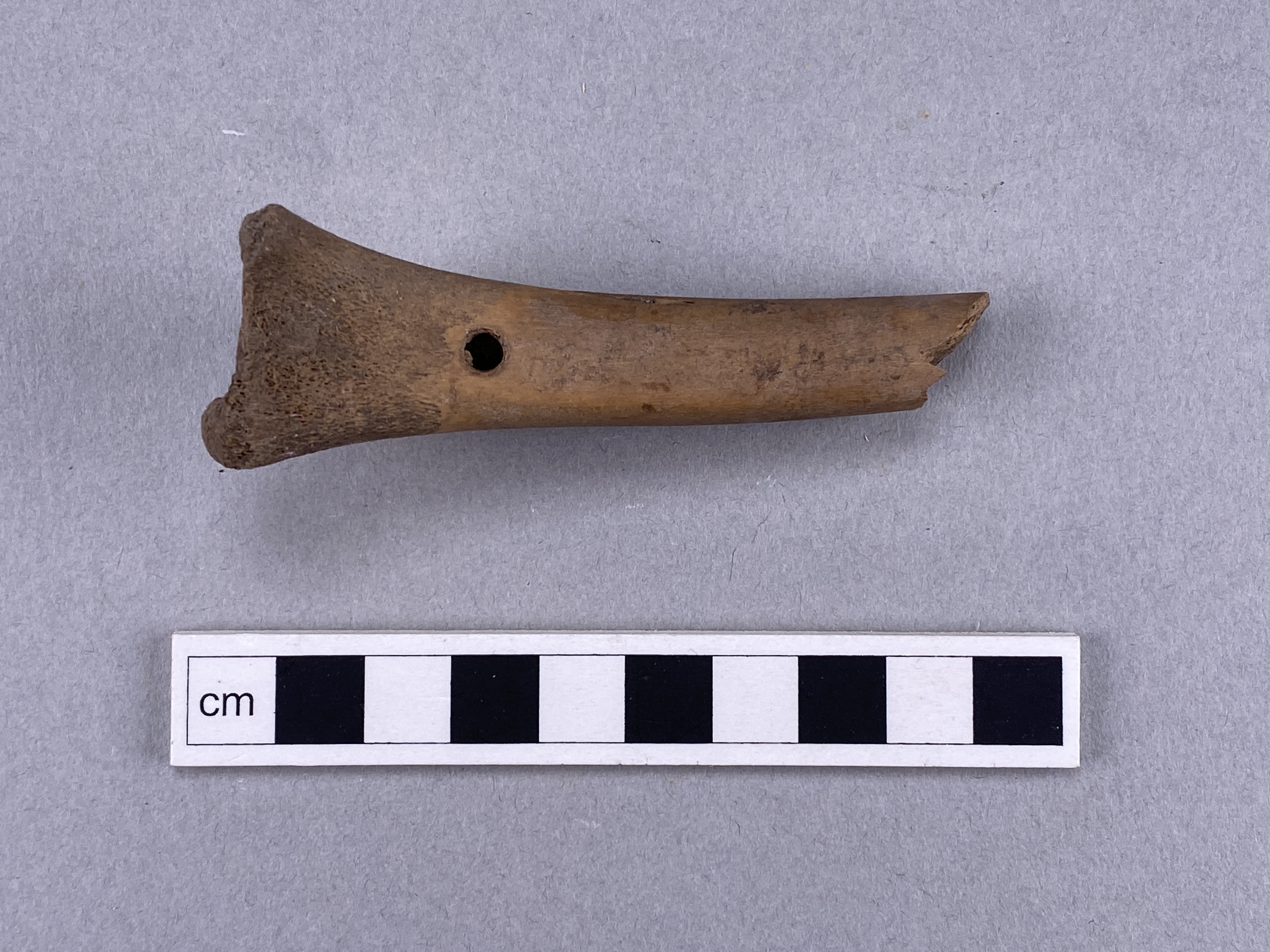 Avbruten bit av benflöjt med ett hål