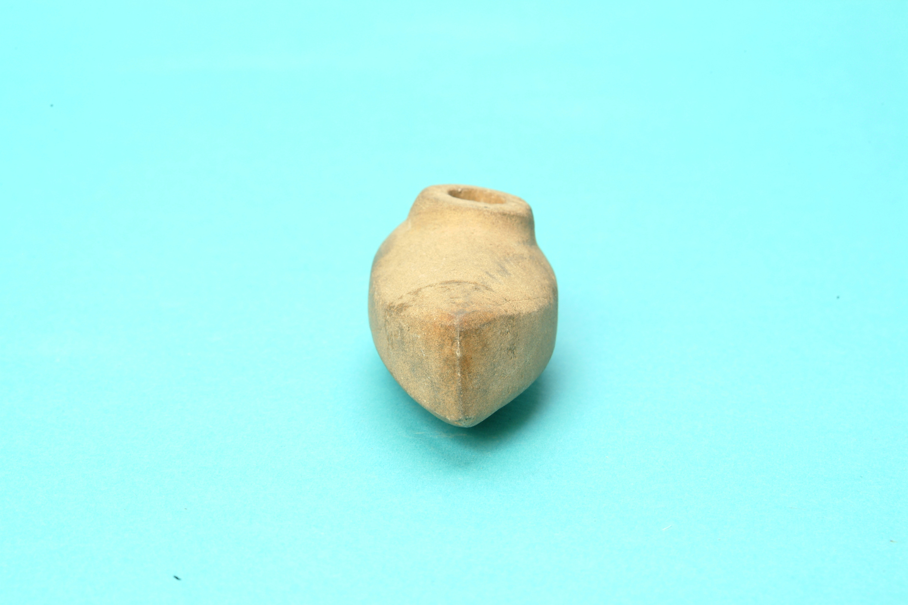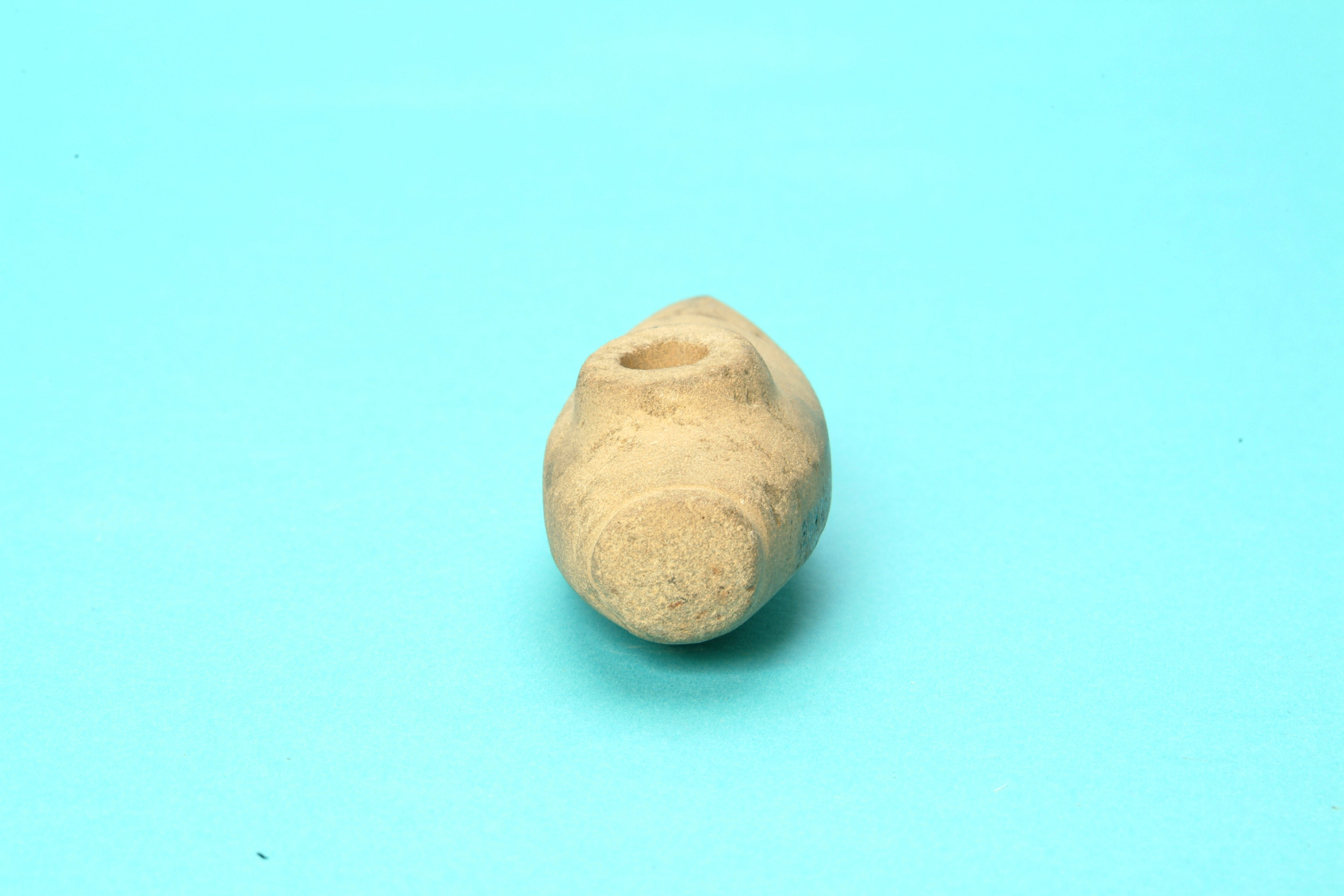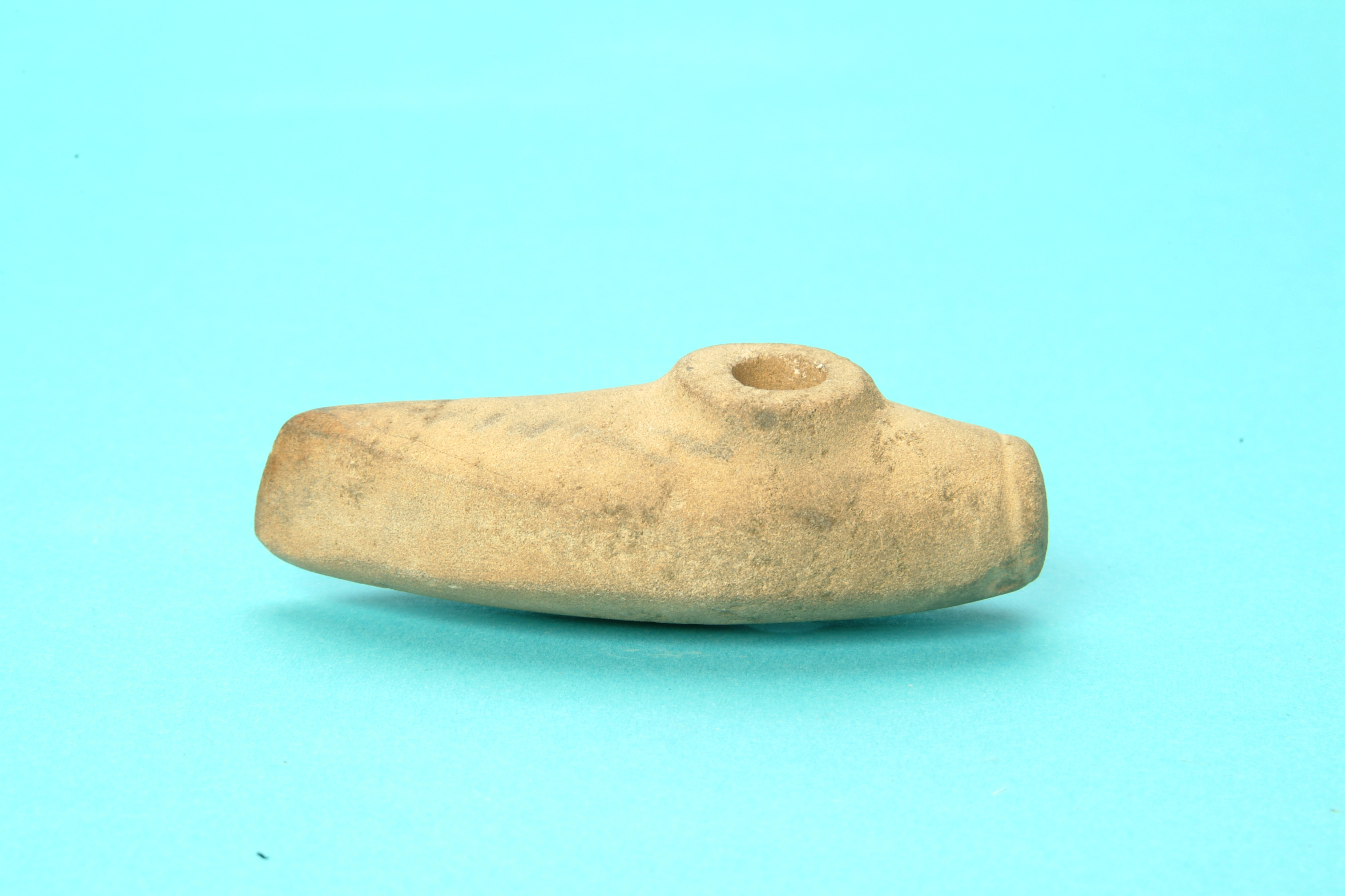 Miniatyrbåtyxa av grönsten med skafthål. Nackknoppen är avsatt med en ristad linje. Över- och undersida är välvda. Eggsidorna är plana och löpande från egg till nacke. Slipad.