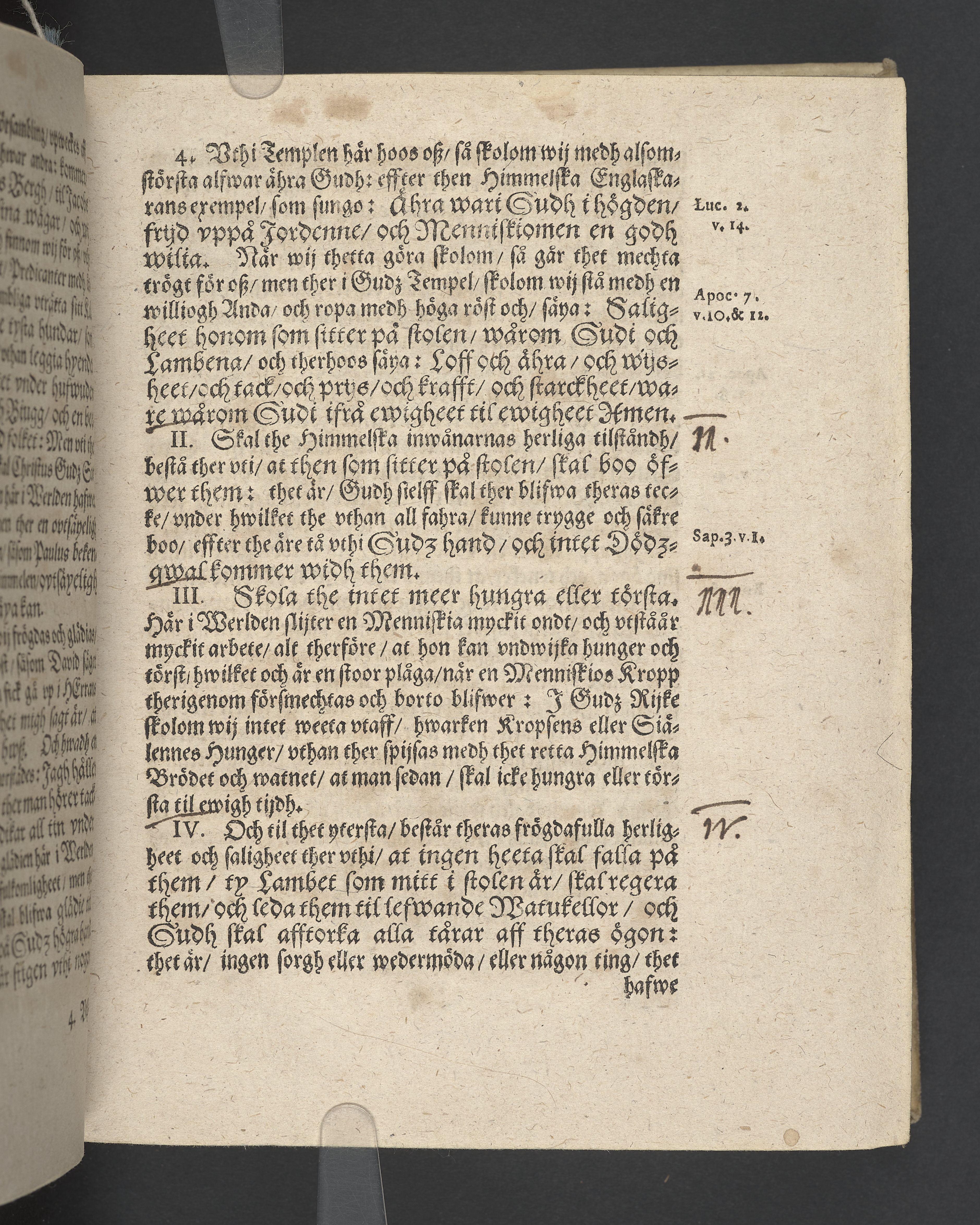 Pergamentband. Pärmfyllnad: papp. Blått snitt.