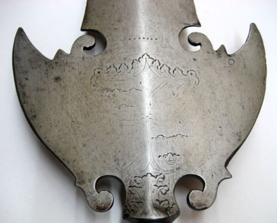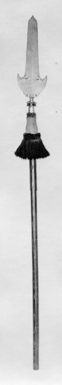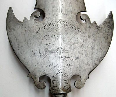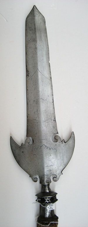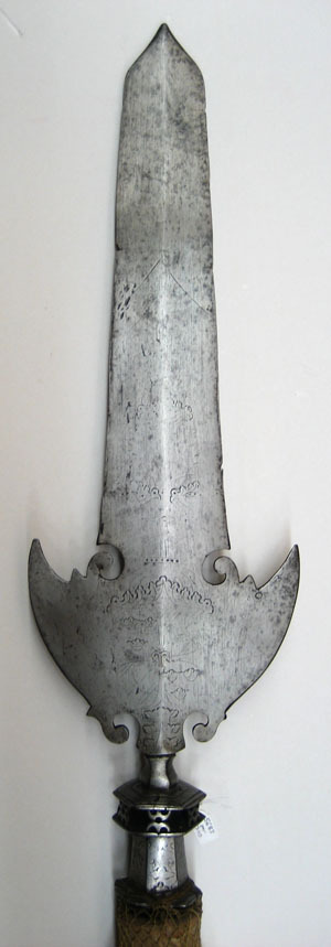 Bardisan för drottning Kristinas drabanter m:1648-49, tillverkad vid Jäders bruk, dekorerad av Kaspar Kohl, Garpströms bruk, använd 1787 av riksdrotsen Carl Axel Wachtmeisters drabanter.