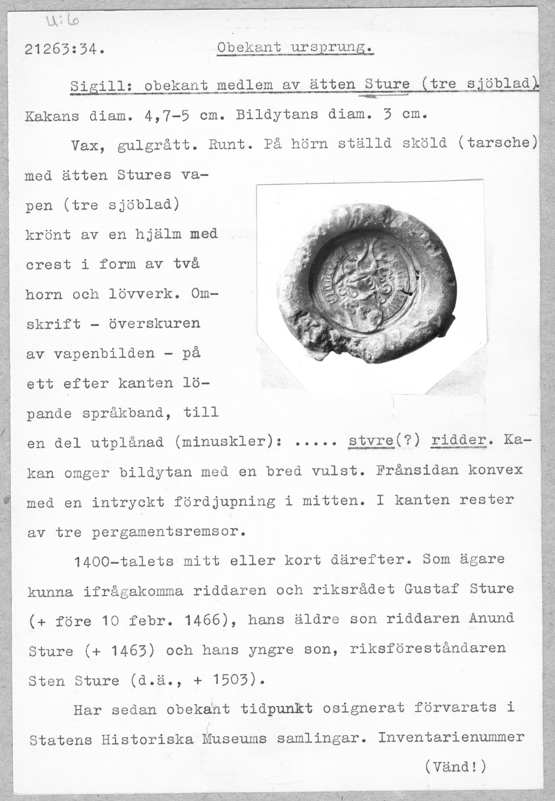 sigill: obekant medlem av ätten Sture