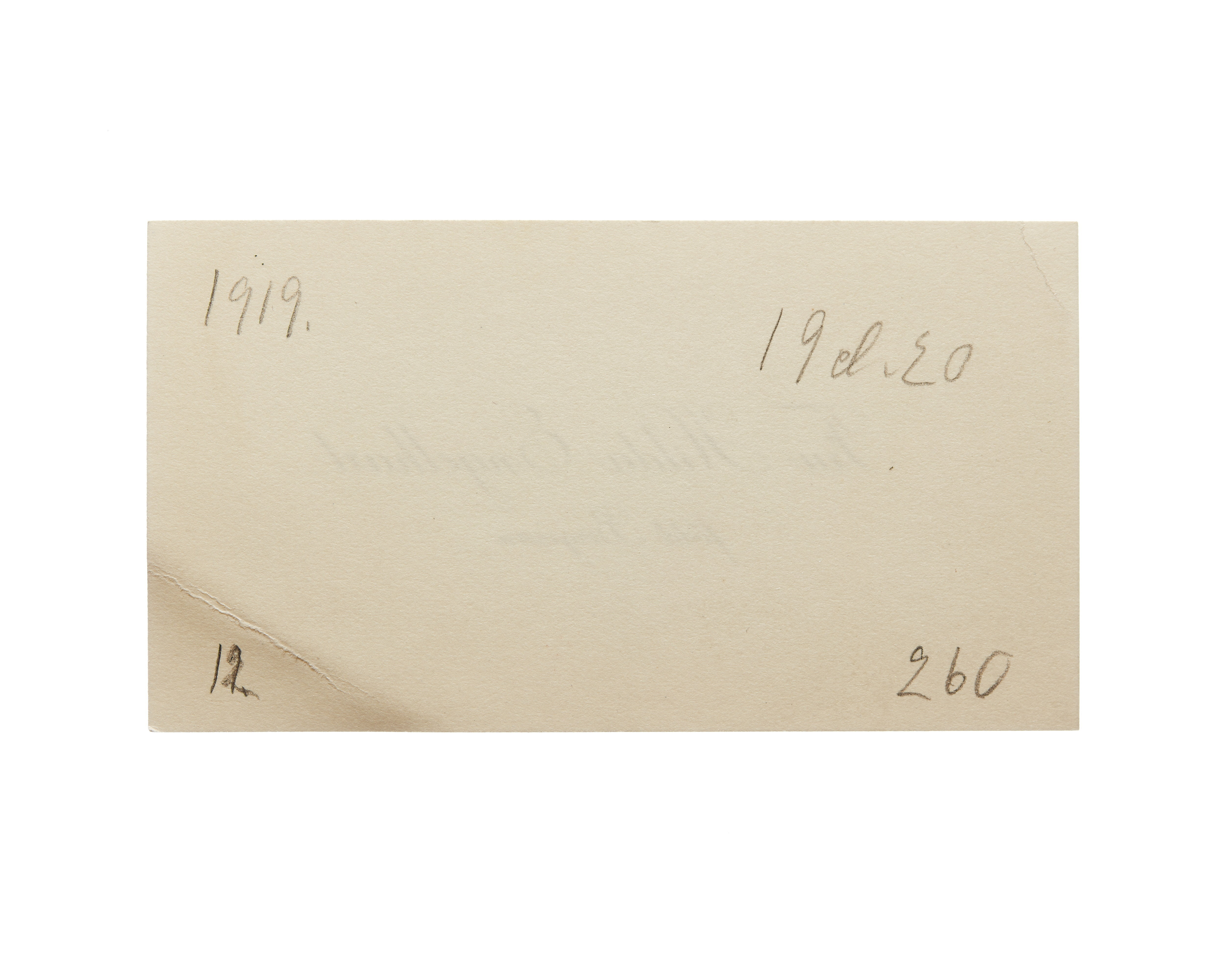 Tjugo visitkort från Hilda Engelhart, f. Bergman. Första kortet är utan datum. Andara kortet är utan datum, vikt i övre högra hörnet. Tredje kortet daterat 1914, vikt i övre högra hörnet. Fjärde kortet daterat 1915, vikt i nedre högra hörnet. Överlämnat i samband med Vilhelminas bilolycka i 1915. Femte kortet daterat 1915, vikt i nedre högra hörnet. Överlämnat i samband med Vilhelminas bilolycka i 1915. Sjätte kortet daterat 10.06.1915. Överlämnat i samband med guldbröllop, 1915. Sjunde kortet daterat 1916, vikt i högra sidan. Åttonde kortet daterat 1917, vikt i övre högra hörnet. Nionde kortet daterat 1917, vikt i nedre högra hörnet. Tionde kortet daterat 1918, vikt i nedre högra hörnet. Elfte kortet daterat 1919, vikt i nedre högra hörnet. Tolfte kortet daterat 1919, vikt i nedre högra hörnet. Trettonde kortet daterat 26.01.1919. Fjortonde kortet daterat 1920, vikt i nedre högra hörnet. Femtonde kortet daterat 1921, vikt i nedre högra hörnet. Sextonde kortet daterat 1923, vikt i nedre högra hörnet. Sjuttonde kortet daterat 1924. Artonde kortet daterat 1925, vikt i övre högra hörnet. Nionde kortet daterat 1926, vikt i högra sidan. Tjugonde kortet daterat 1927, vikt i nedre högra hörnet.
