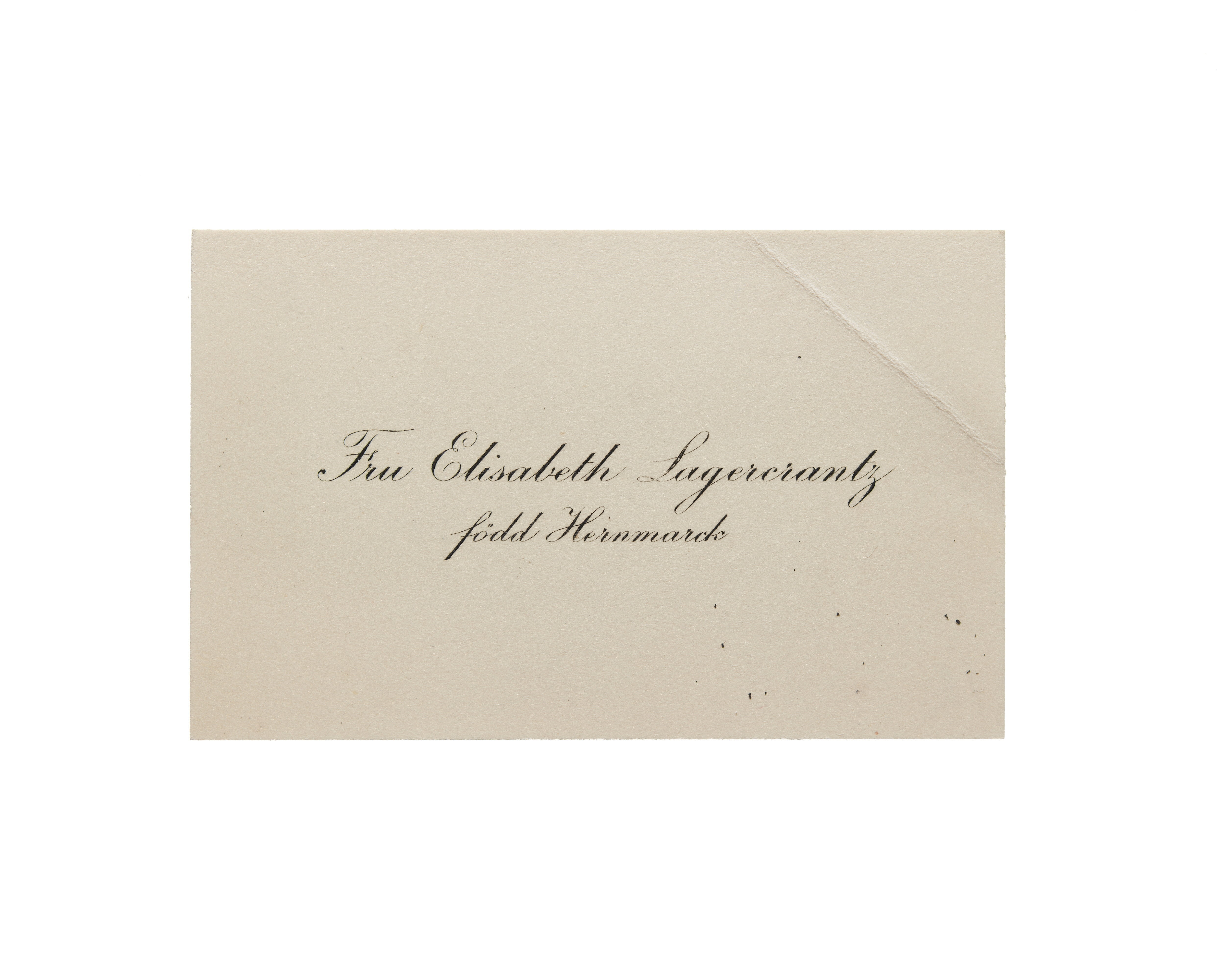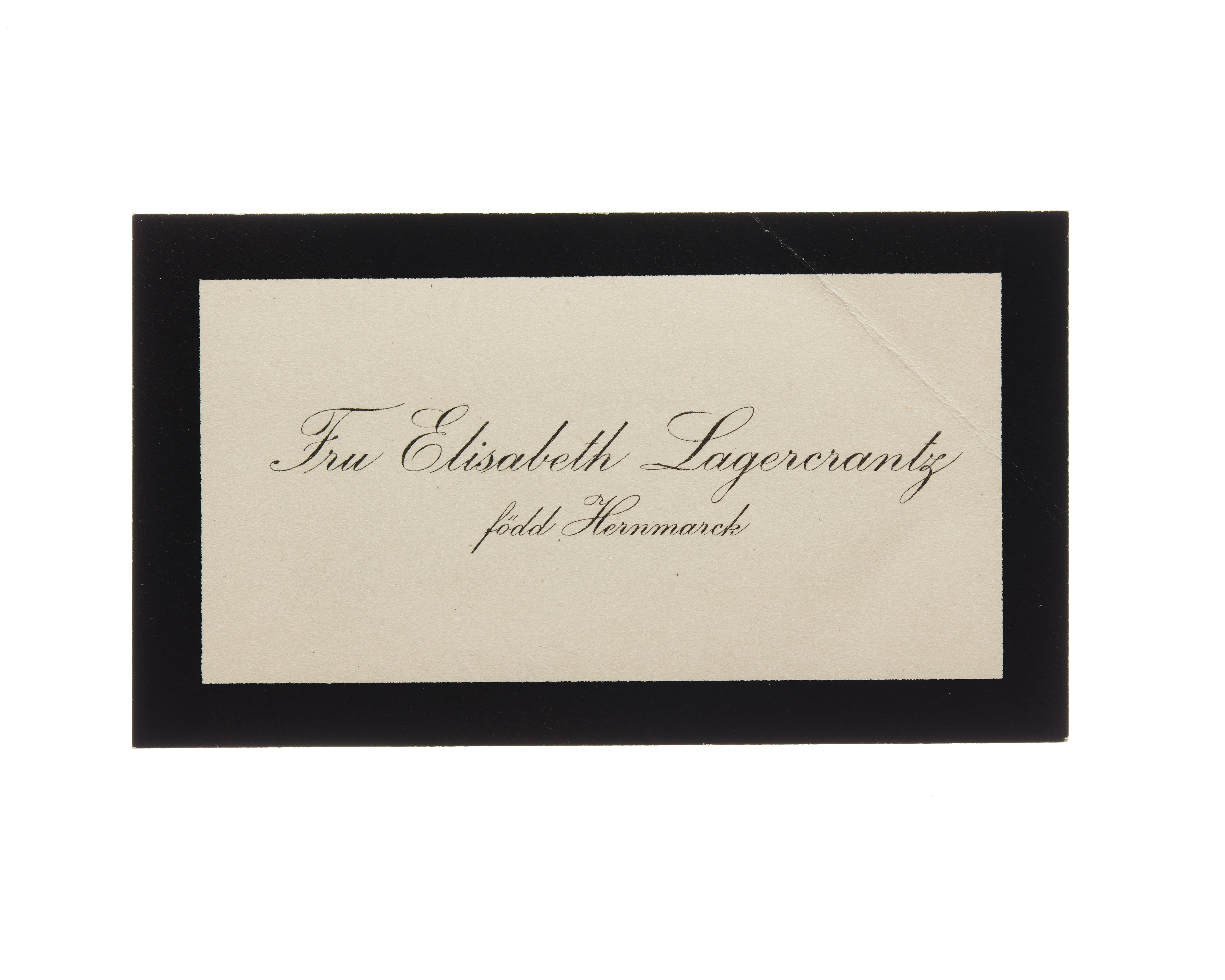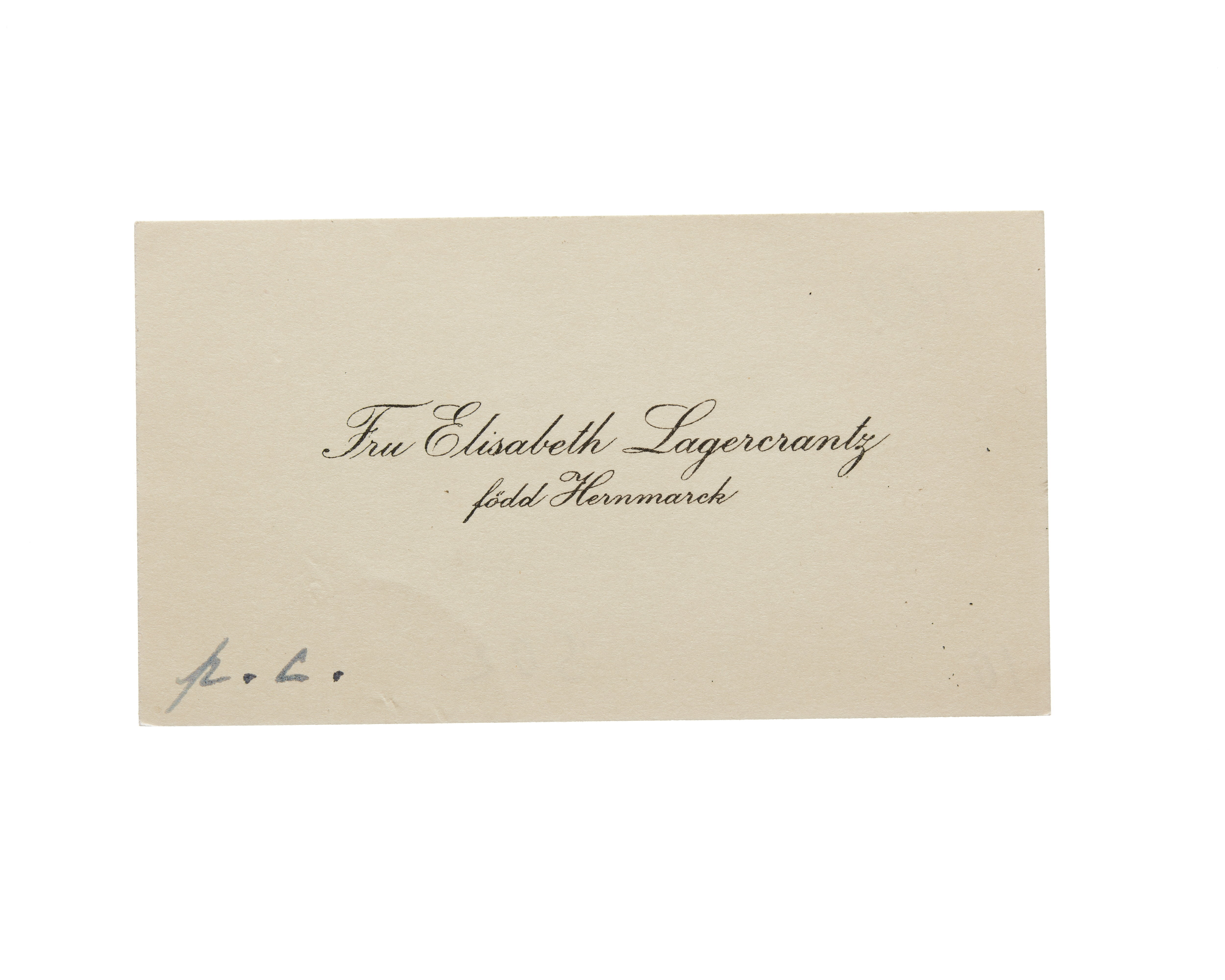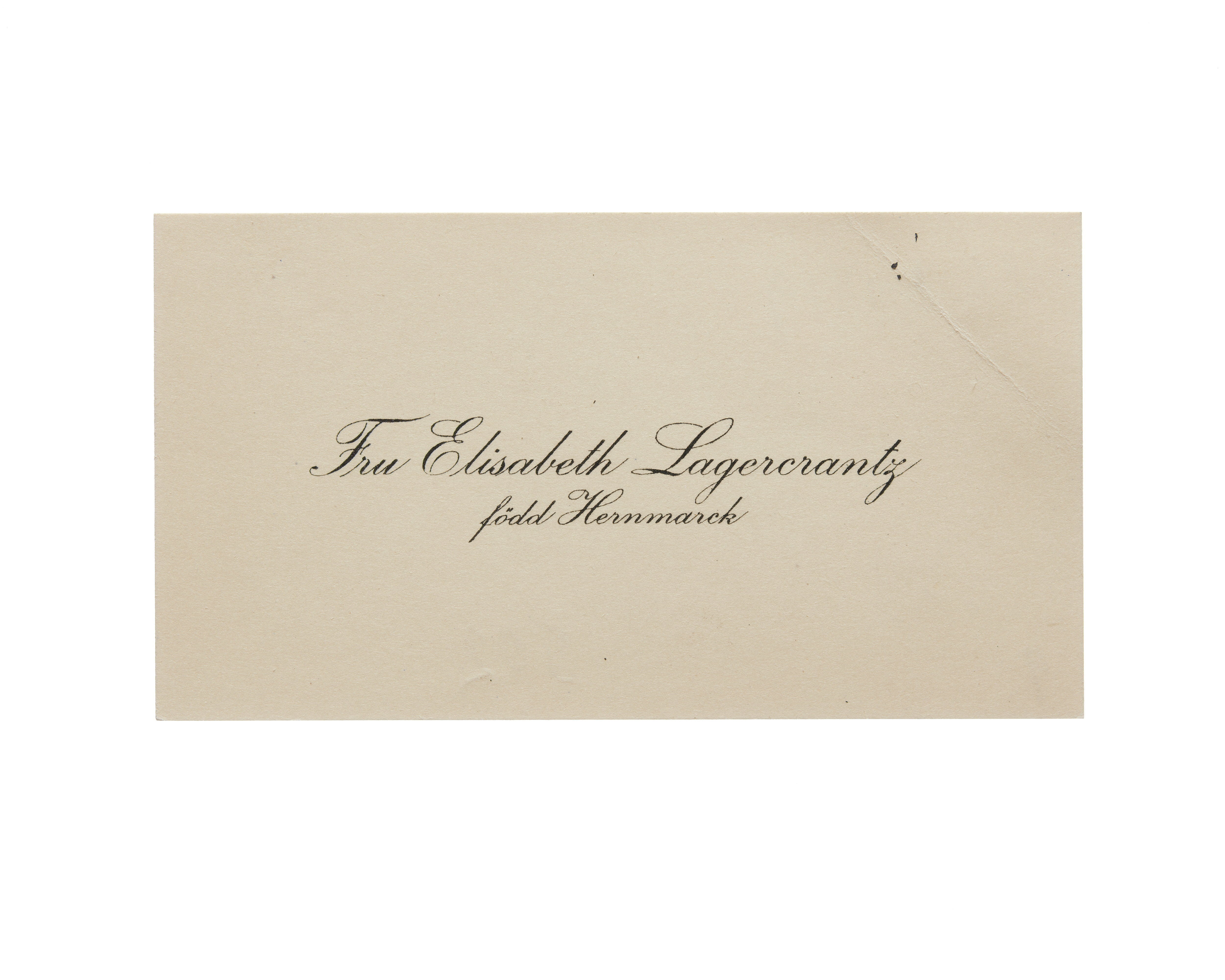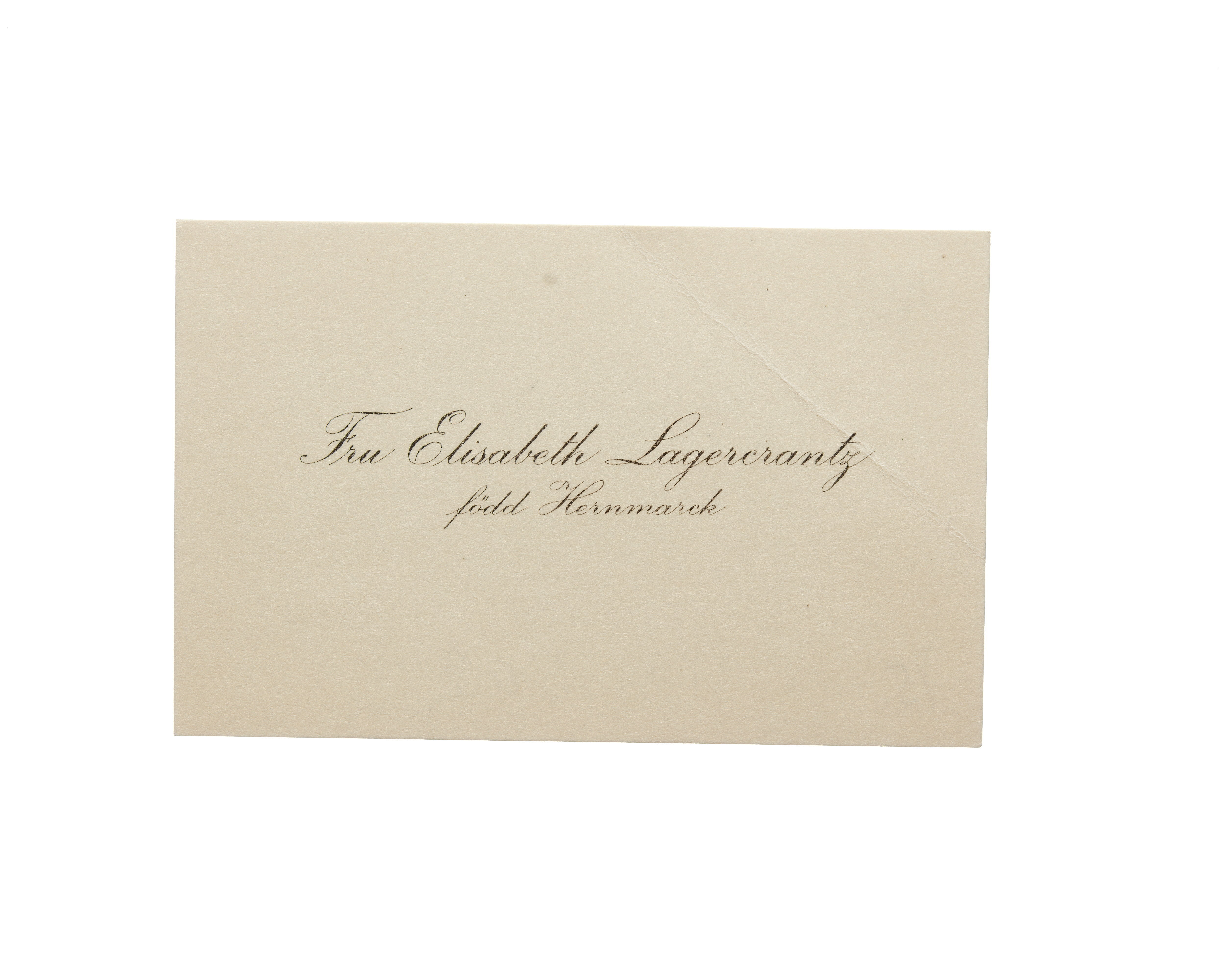 Visitkort från fru Elisabeth Lagercrantz, f. Hernmarck.