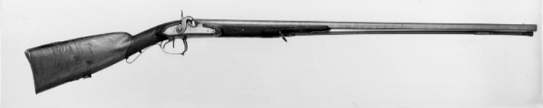 Dubbelbössa, Guillaume Berleur, Liège, 1800-talets början, låsen ändrade från flintlås till slaglås.