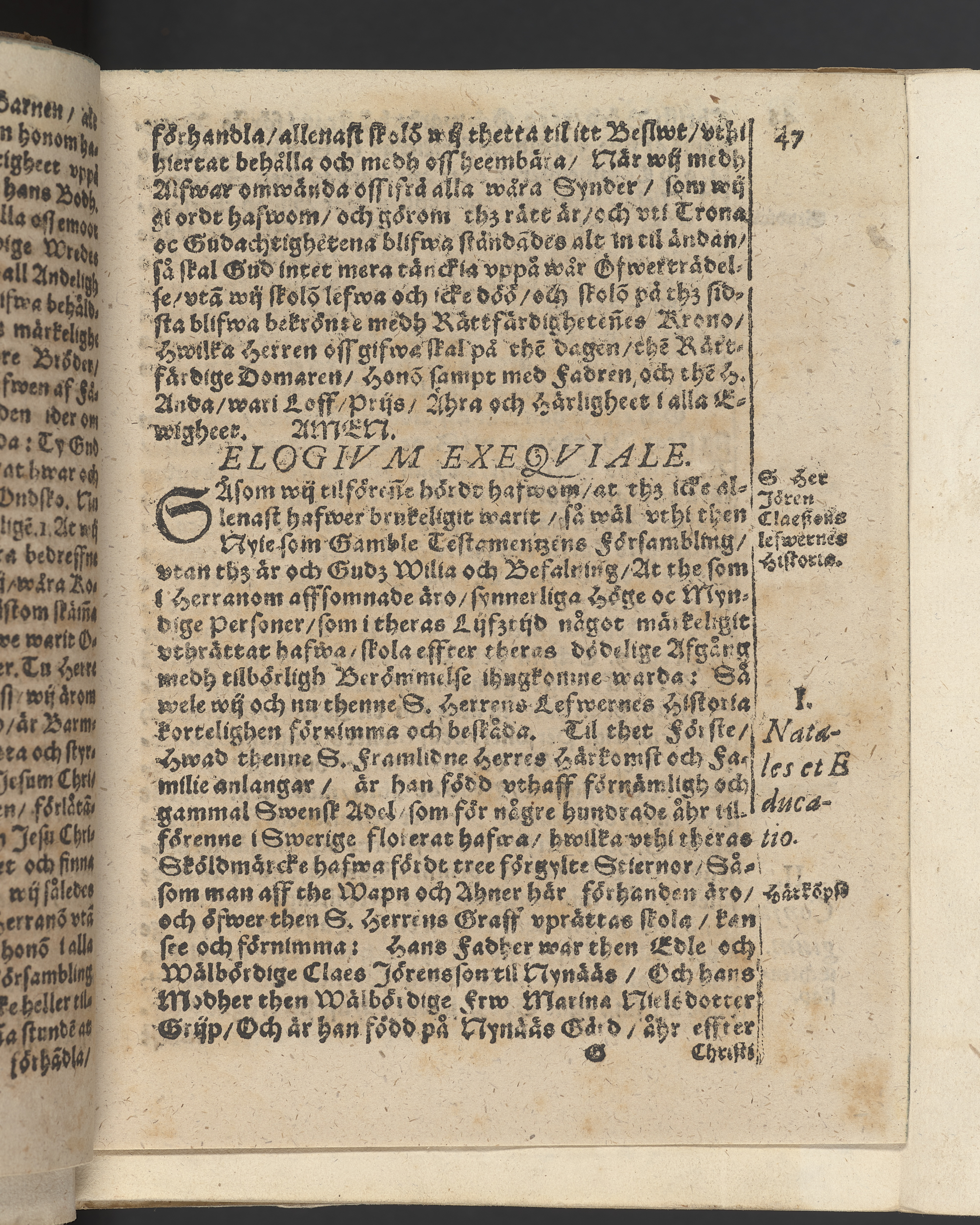Een christeligh lijkpredikan, vthöfwer ... Her Jören Claeszons til Bijby och Twna ... berömmelige begrafning ... MDCXI ... 18 augusti ... vthi thens S. Herrens socknekyrkia Bilberga, vppå Wester Rekarna, hållen vthaff M. Laverntio Pavlino Gotho E. Strengnesi. Tryckt i Stockholm, hoos Amund Oluffsons effterlåtne enckia, åhr 1612.