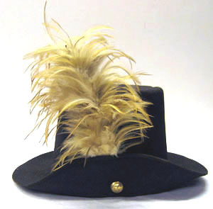 Hatt till hertig Karls uniform som han bar vid sjöslaget vid Hogland den 17 juli 1788. Rund hög hatt, med på ovansidan platt kulle. Av pressad svart filt. Ett brett brätte, 60 mm, uppvikt på vänster sida och fästat med en rund knapp av förgylld mässing. Vid det uppvikta brättet sitter en instucken plym av ett fjäderknippe bestående av flera gulvita små fjädrar. På insidan fodrad med blå taft. En 42 mm bred svettrem av brunt läder, faststytt i ändarna med stora grova beigefärgade stygn. Bandet sitter vid pannan, i nedre kanten av kullen. På sidan sitter på svettremmen ett 38 mm brett brunt läderband fästat med nålar.